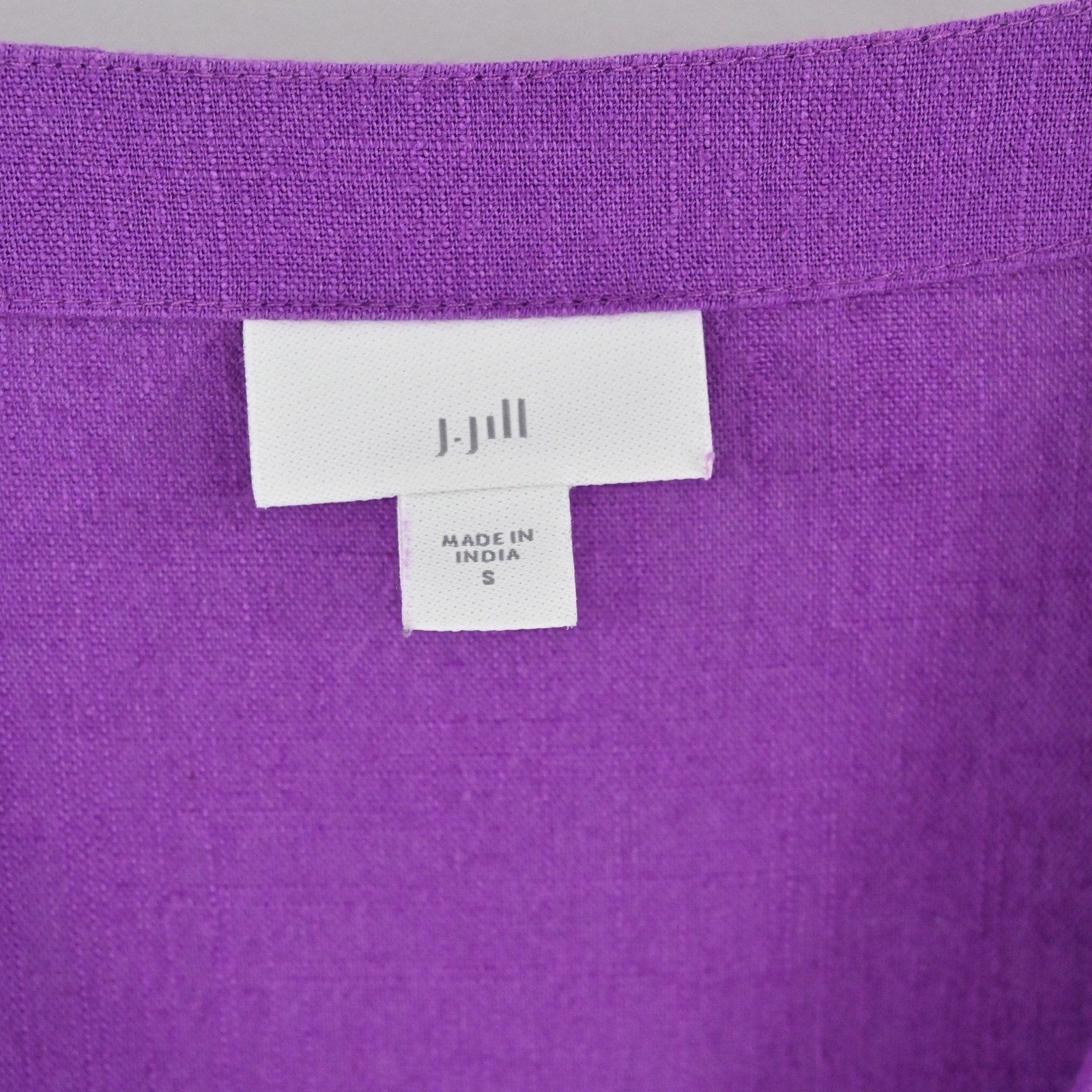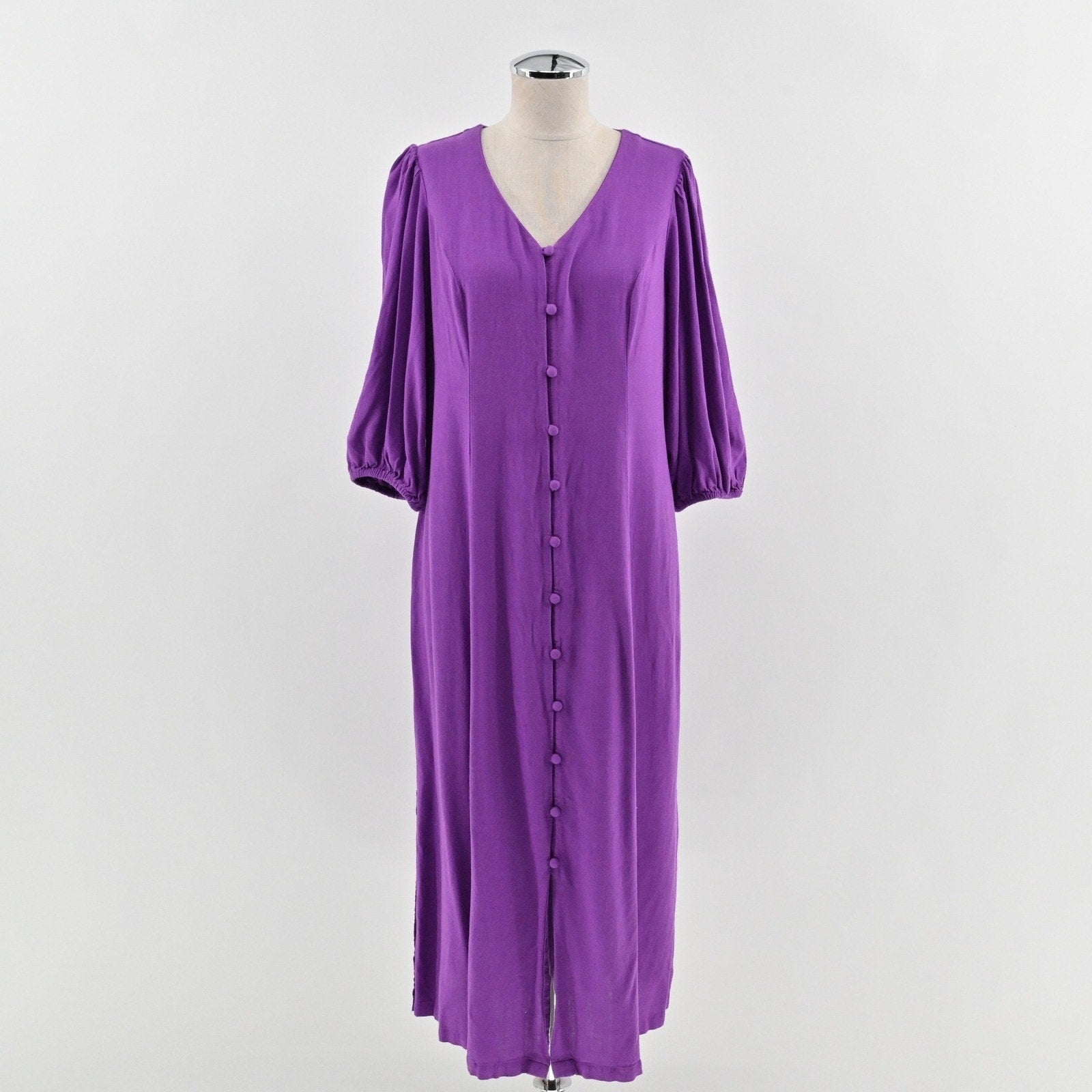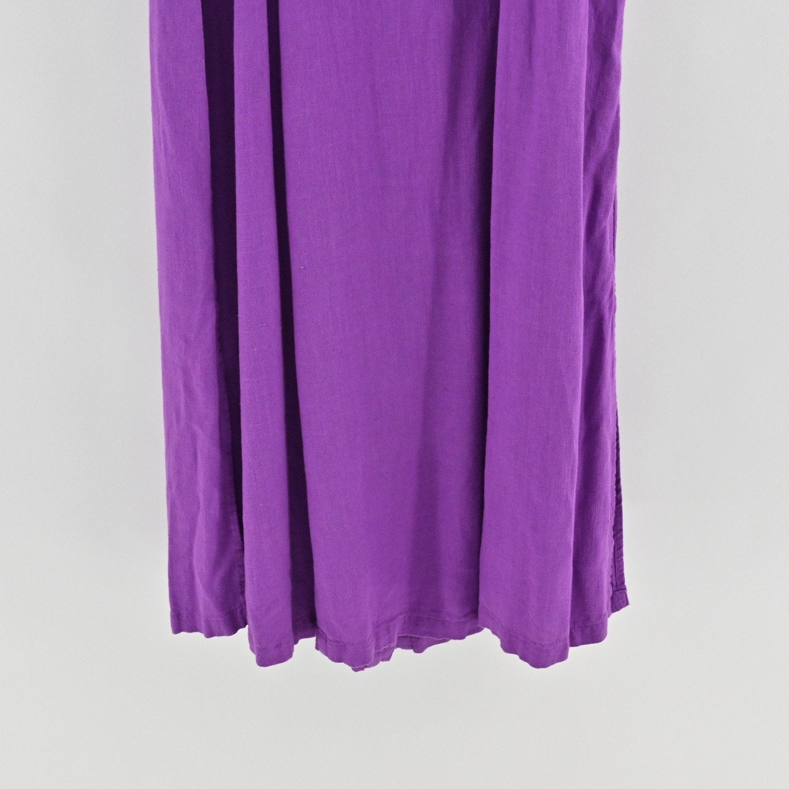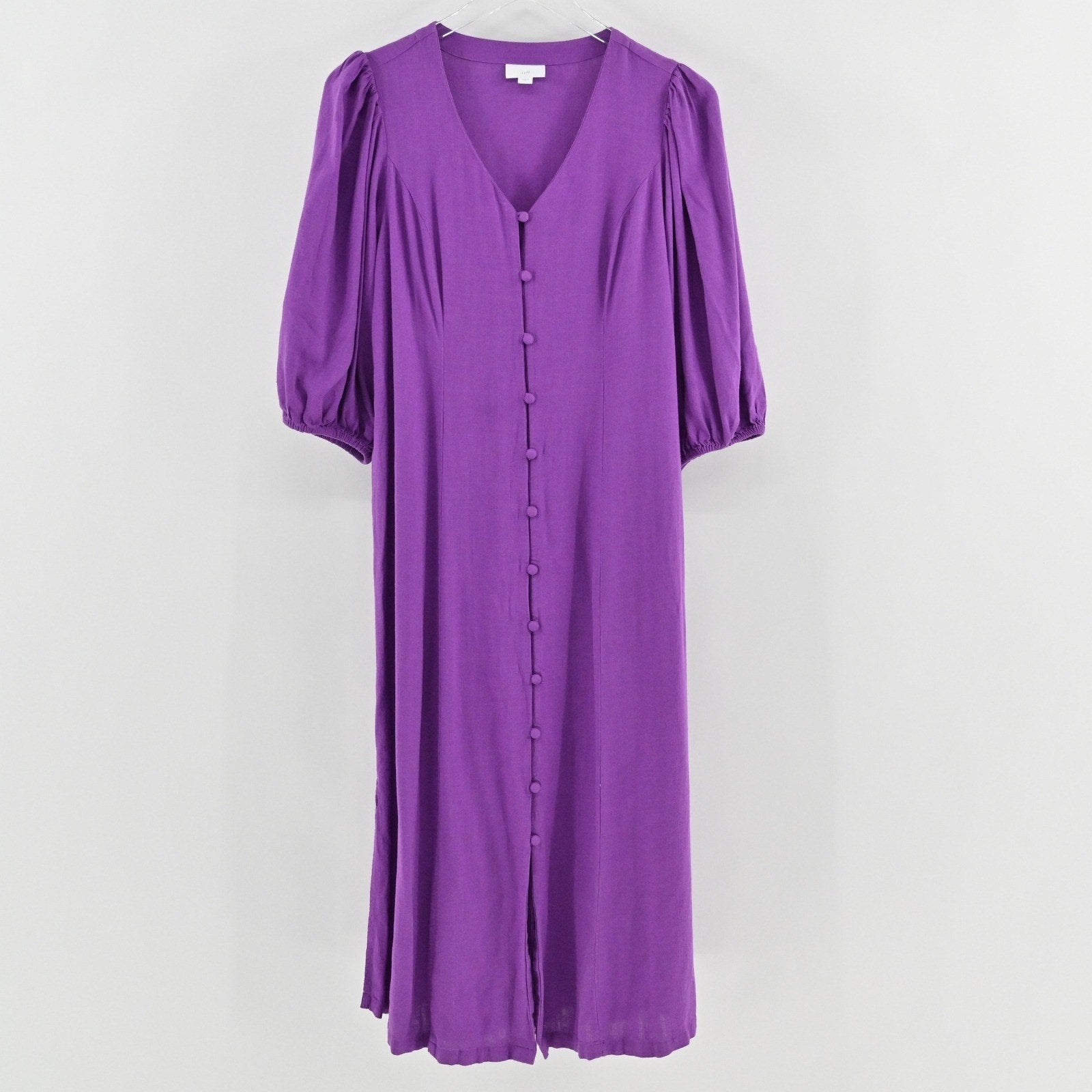 J Jill Linen Midi Dress Size S Purple Puff Sleeve Boho Lagenlook Button Front