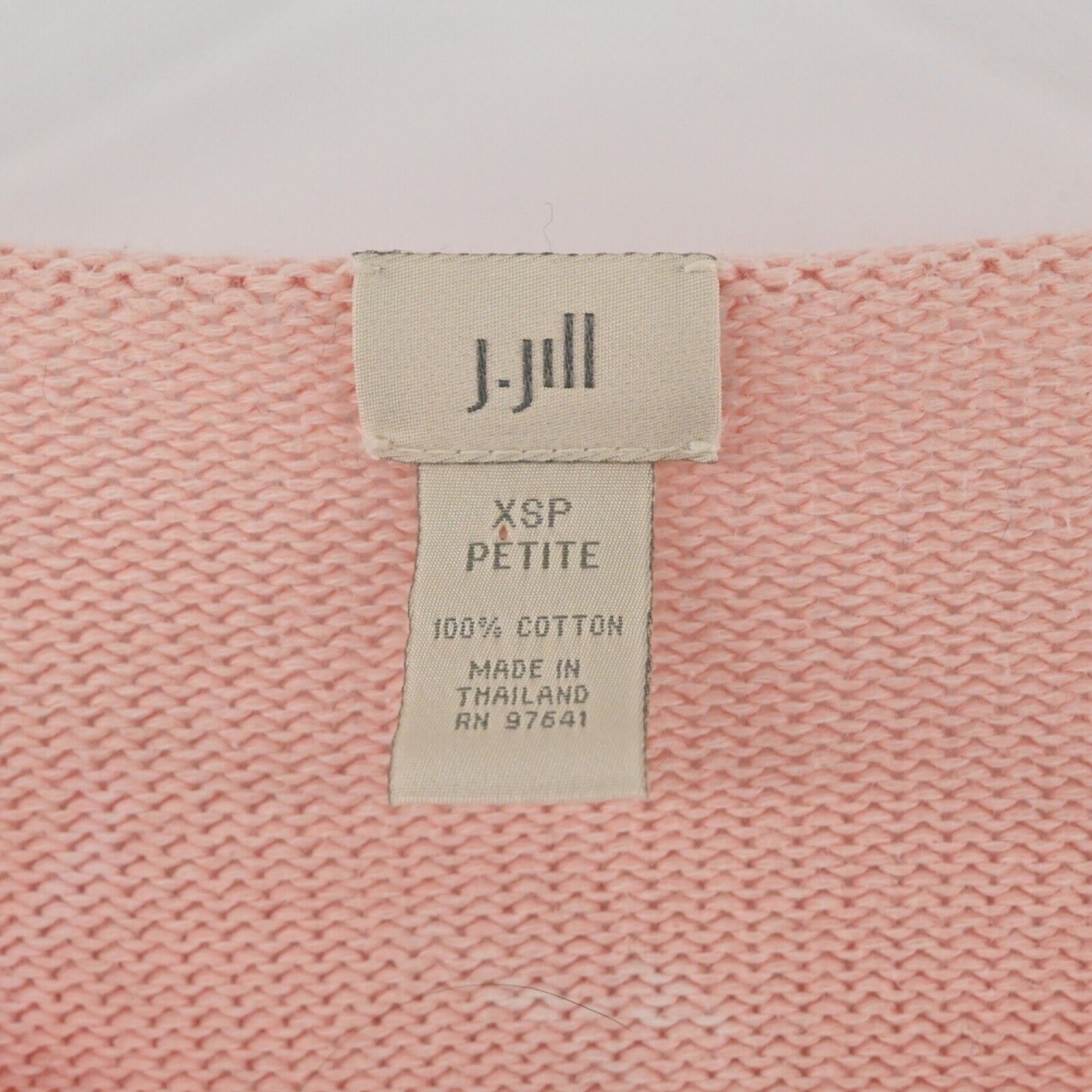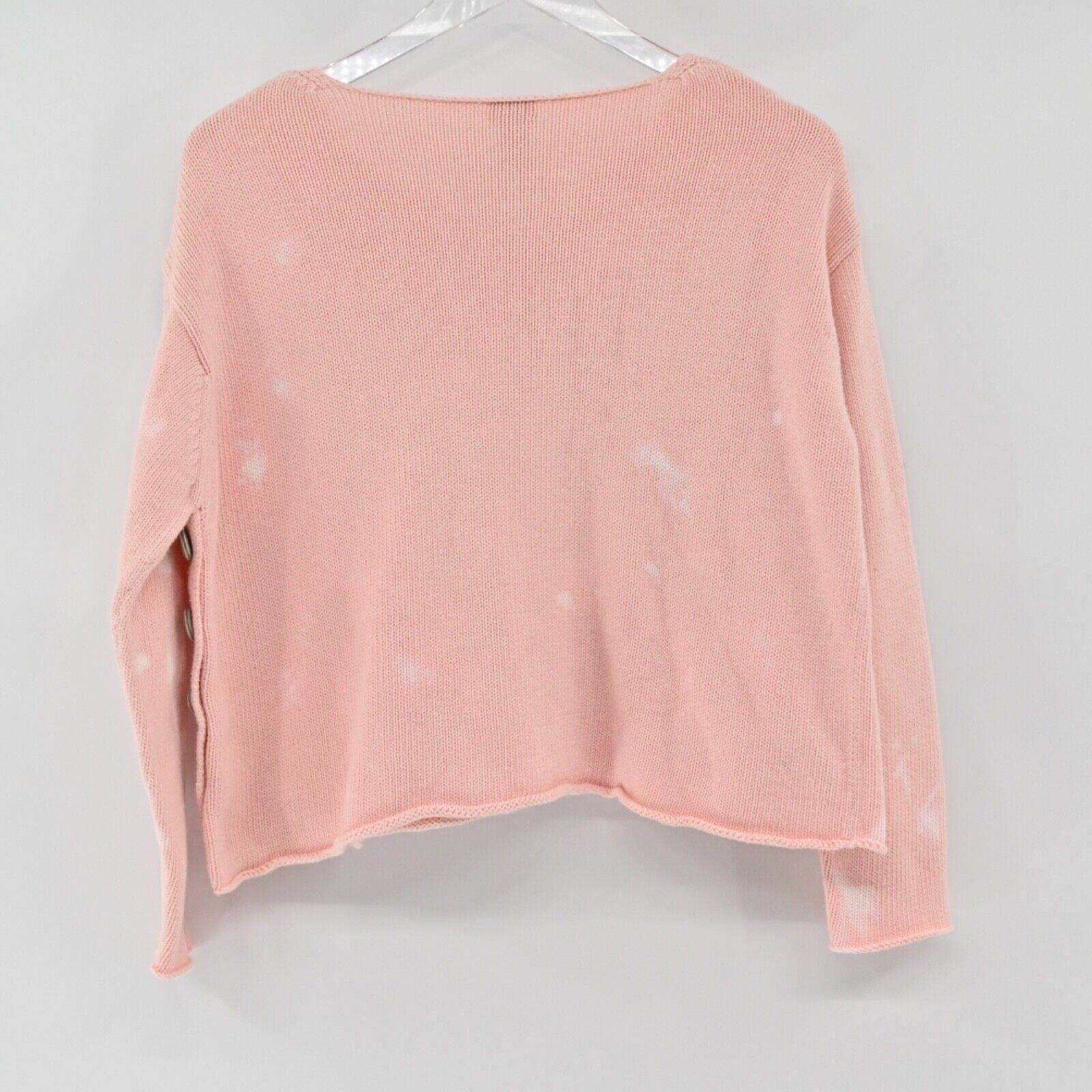 J JILL Sweater Womens Sz XSP Pink Bleach Splatter 100% Cotton VNeck Side Button