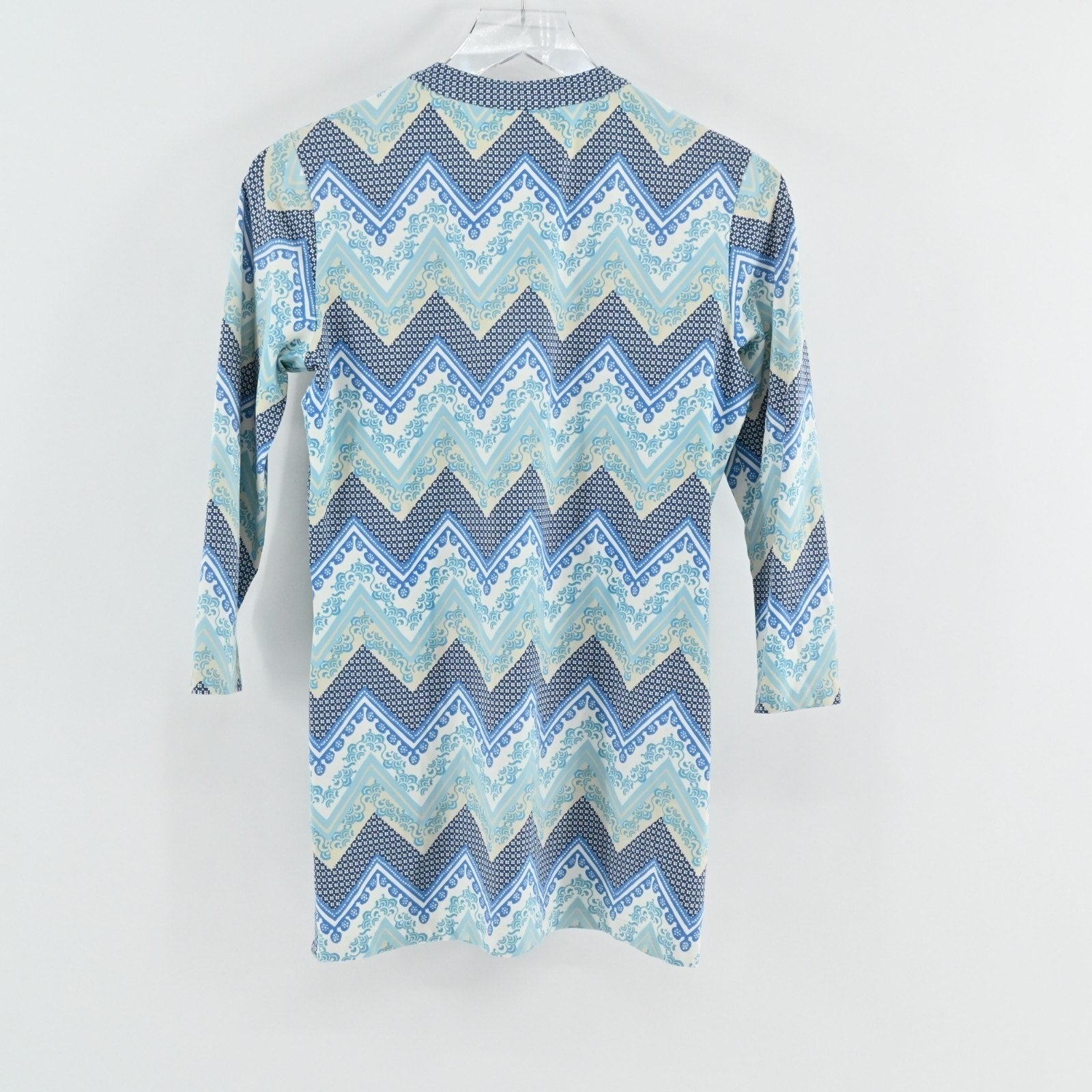 J McLaughlin Womens Blue Catalina Cloth Top Size XS Chevron Blouse Stretch Coast