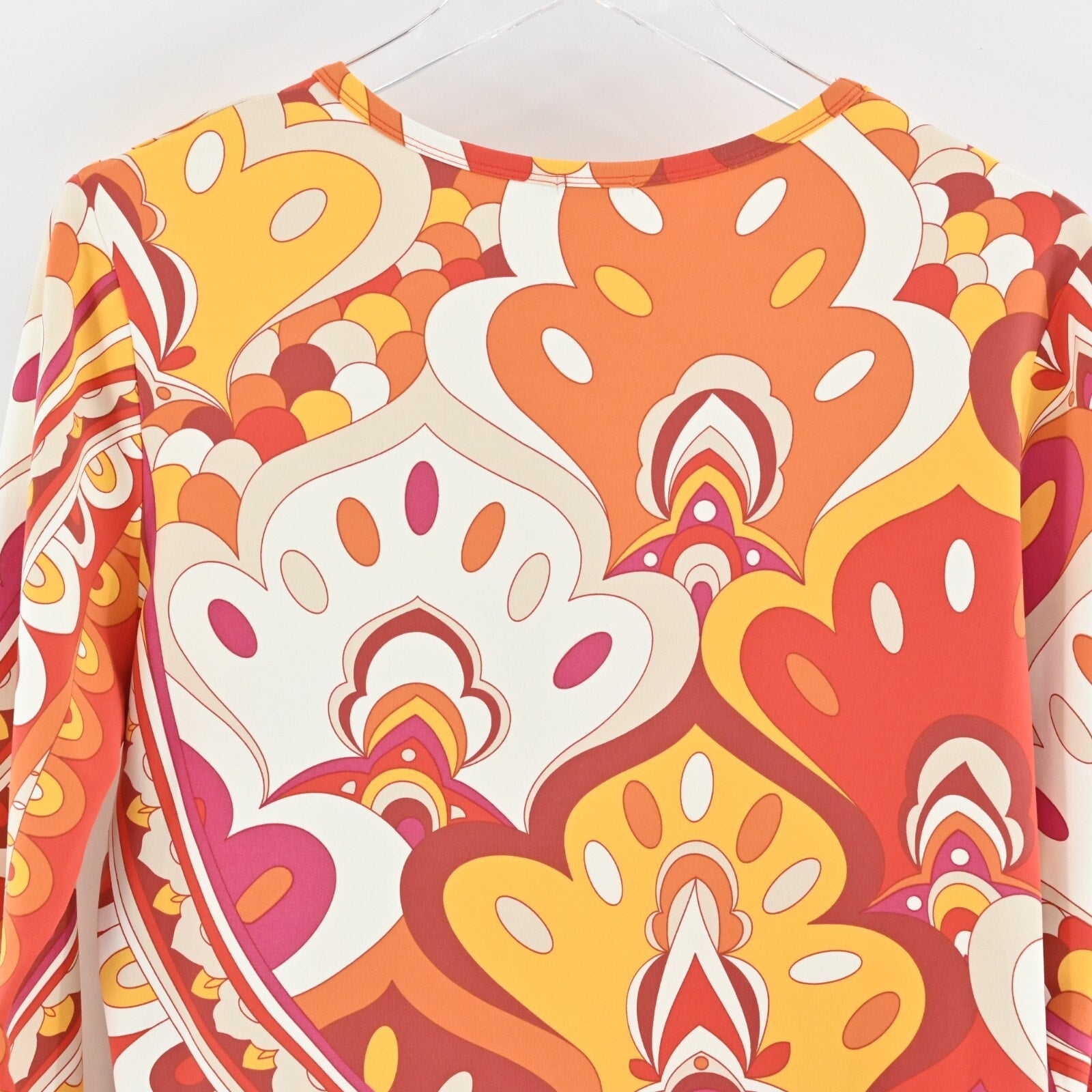 J MCLAUGHLIN Womens Catalina Cloth Top Size L Stretch Quarter Sleeve Retro Print