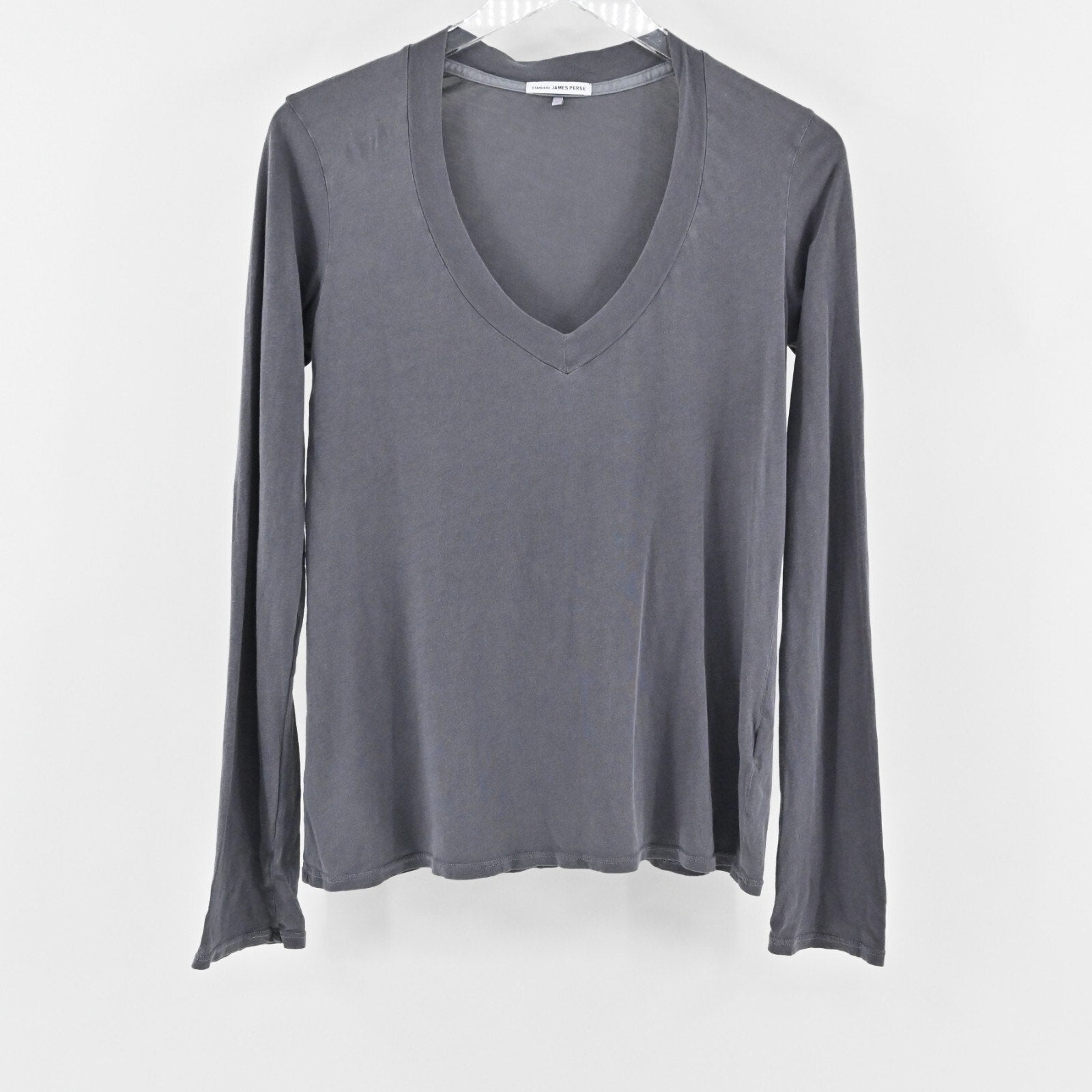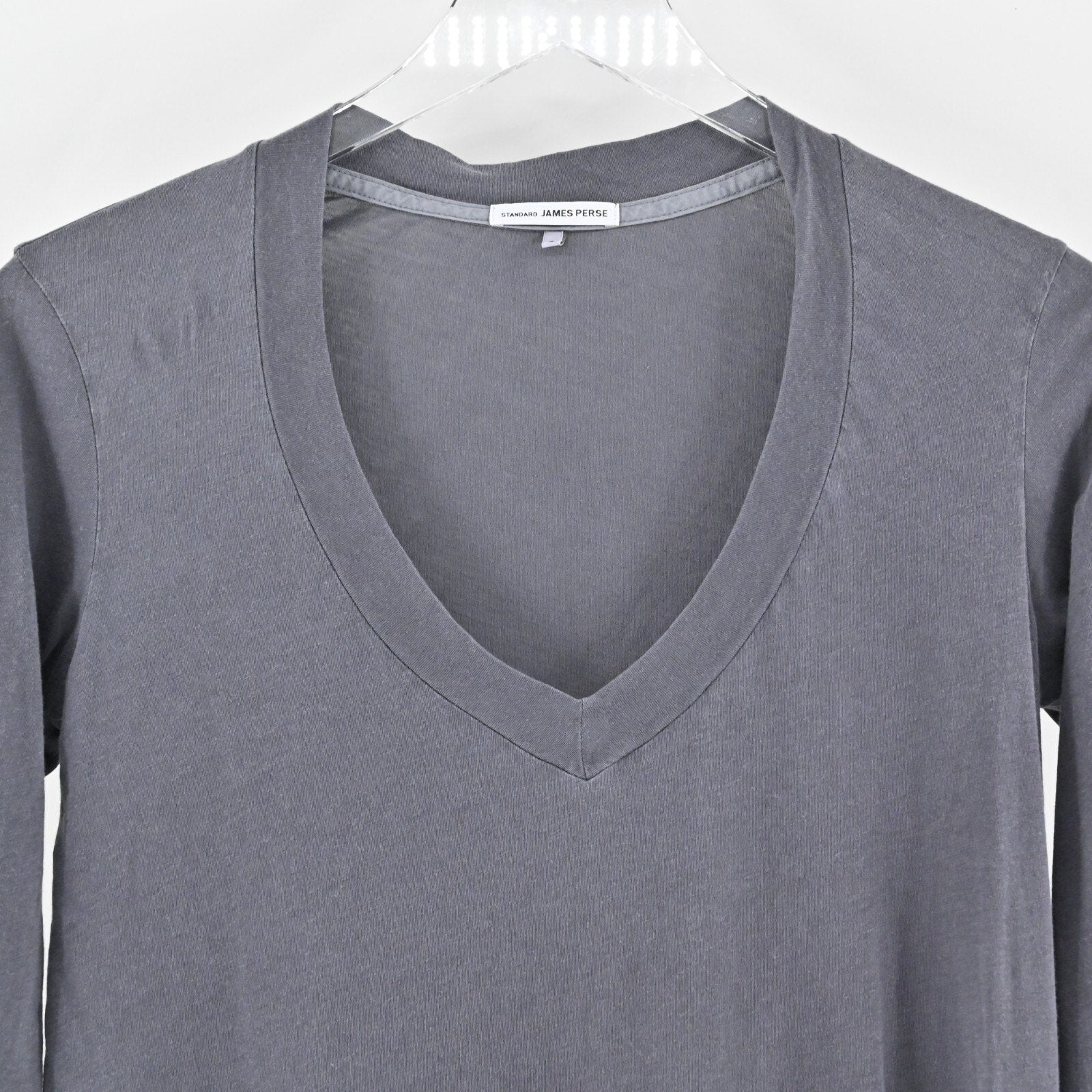 JAMES PERSE Top Womens Size 3/Large Gray Cotton Long Sleeve VNeck Shirt Standard