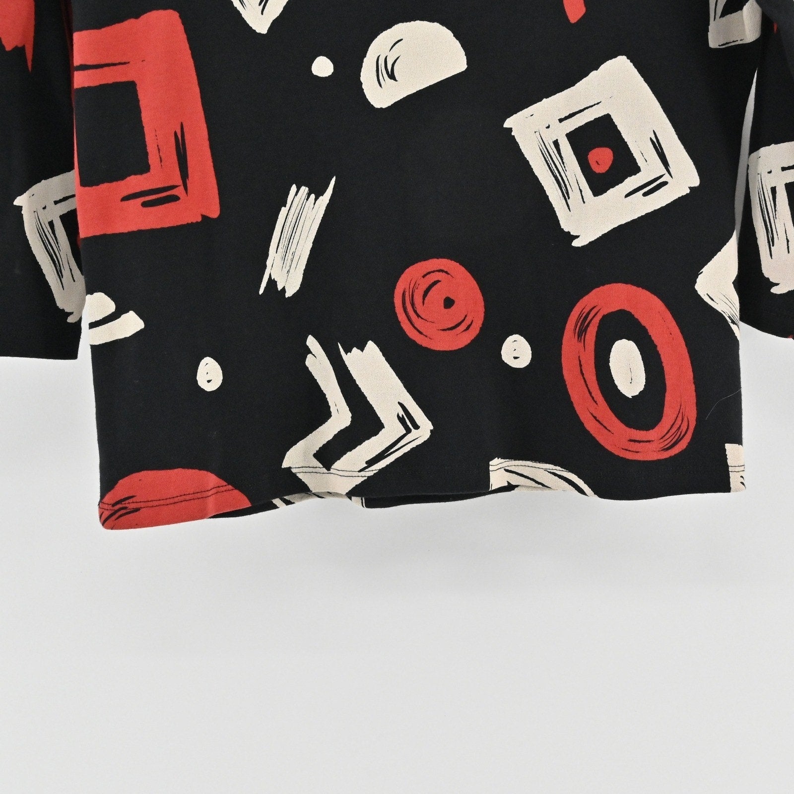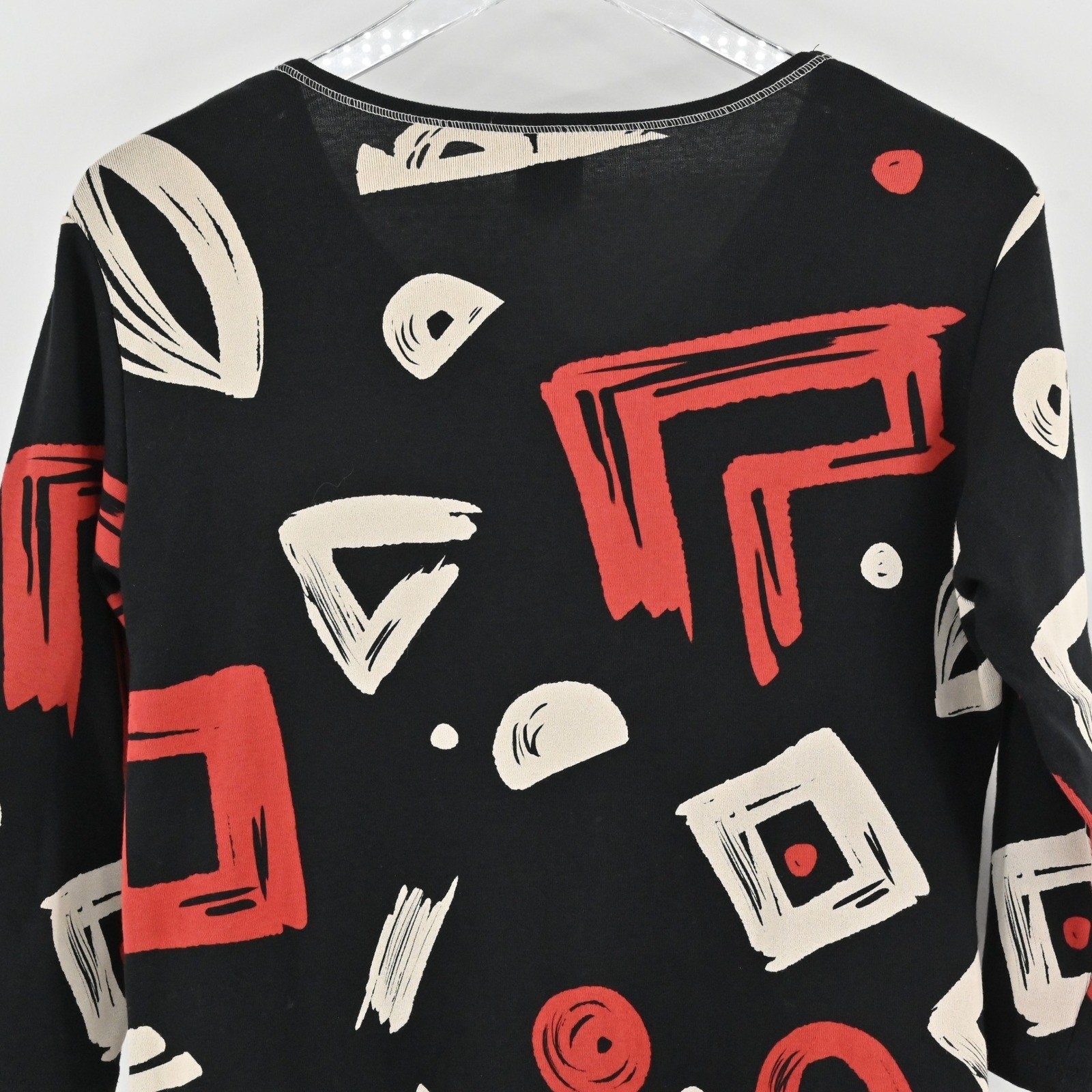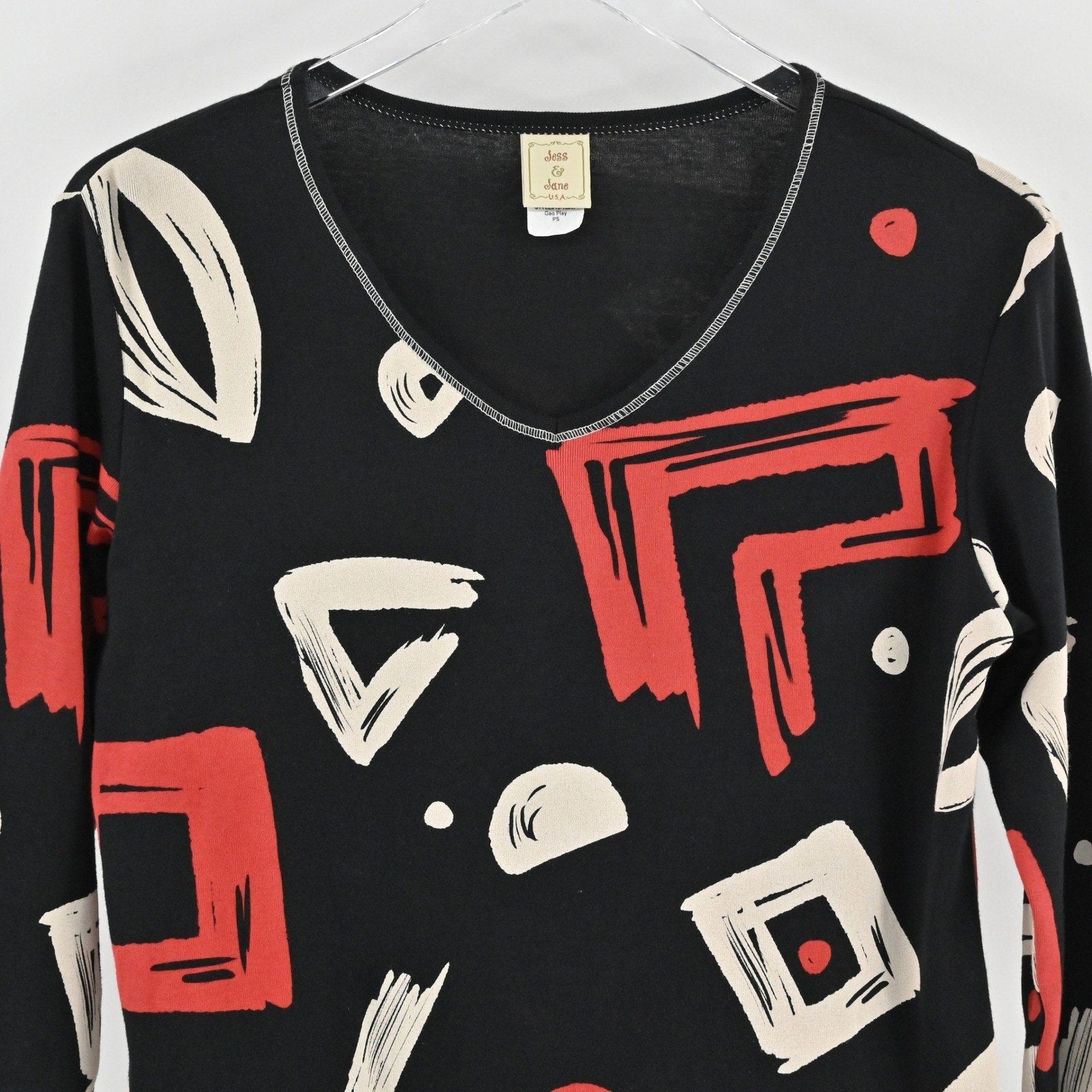 Jess Jane Womens Geo Play Top Size S Petite Art to Wear 3/4 Sleeve Geometric