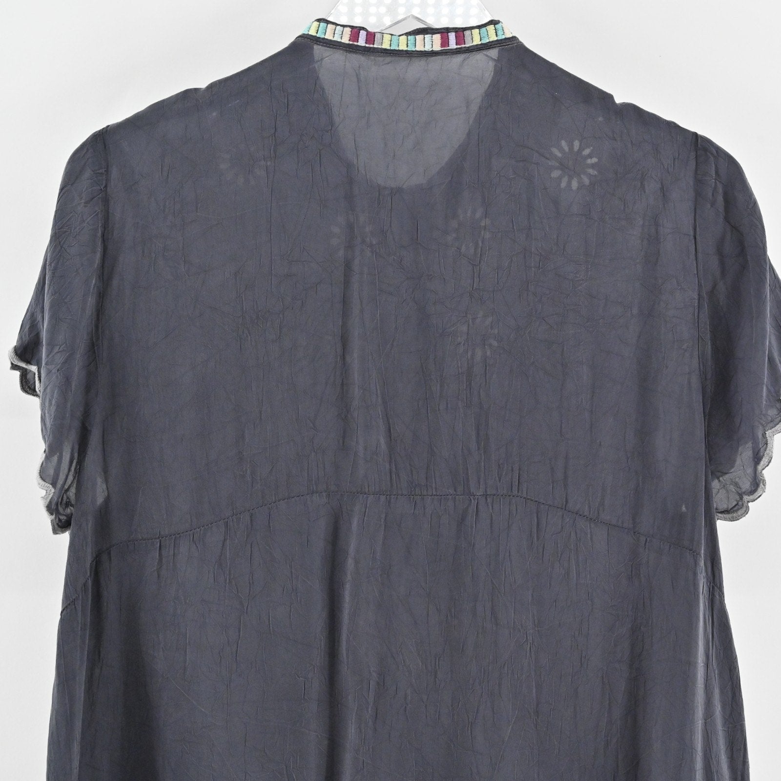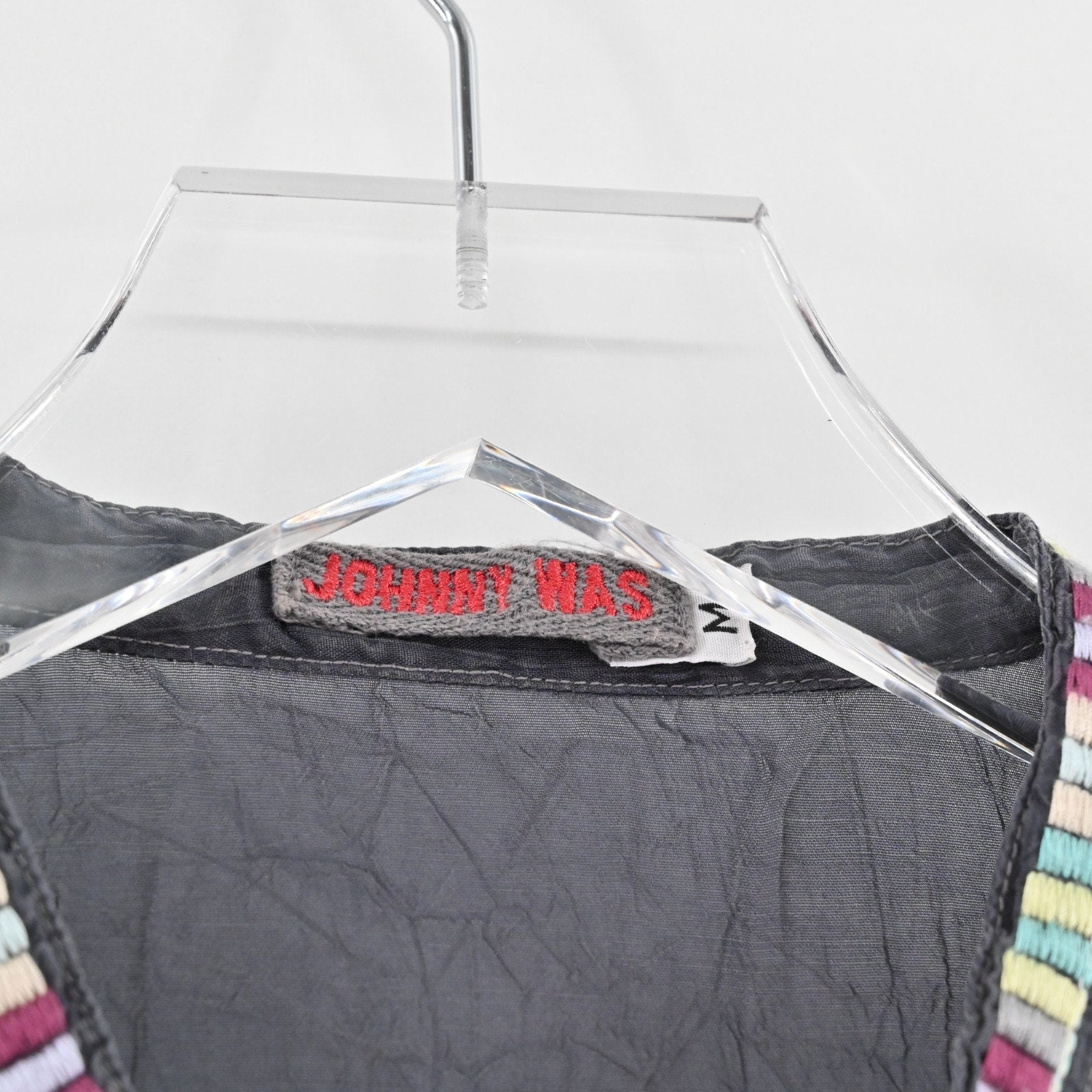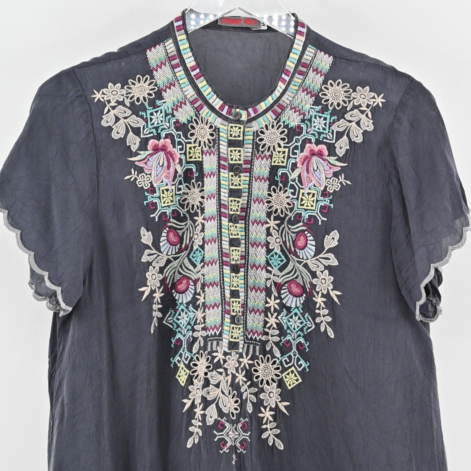 JOHNNY WAS Womens Livana Top Size M Embroidered Floral Gray Tunic Boho Blouse