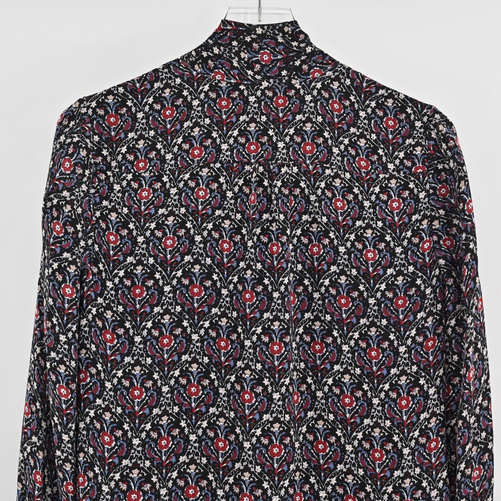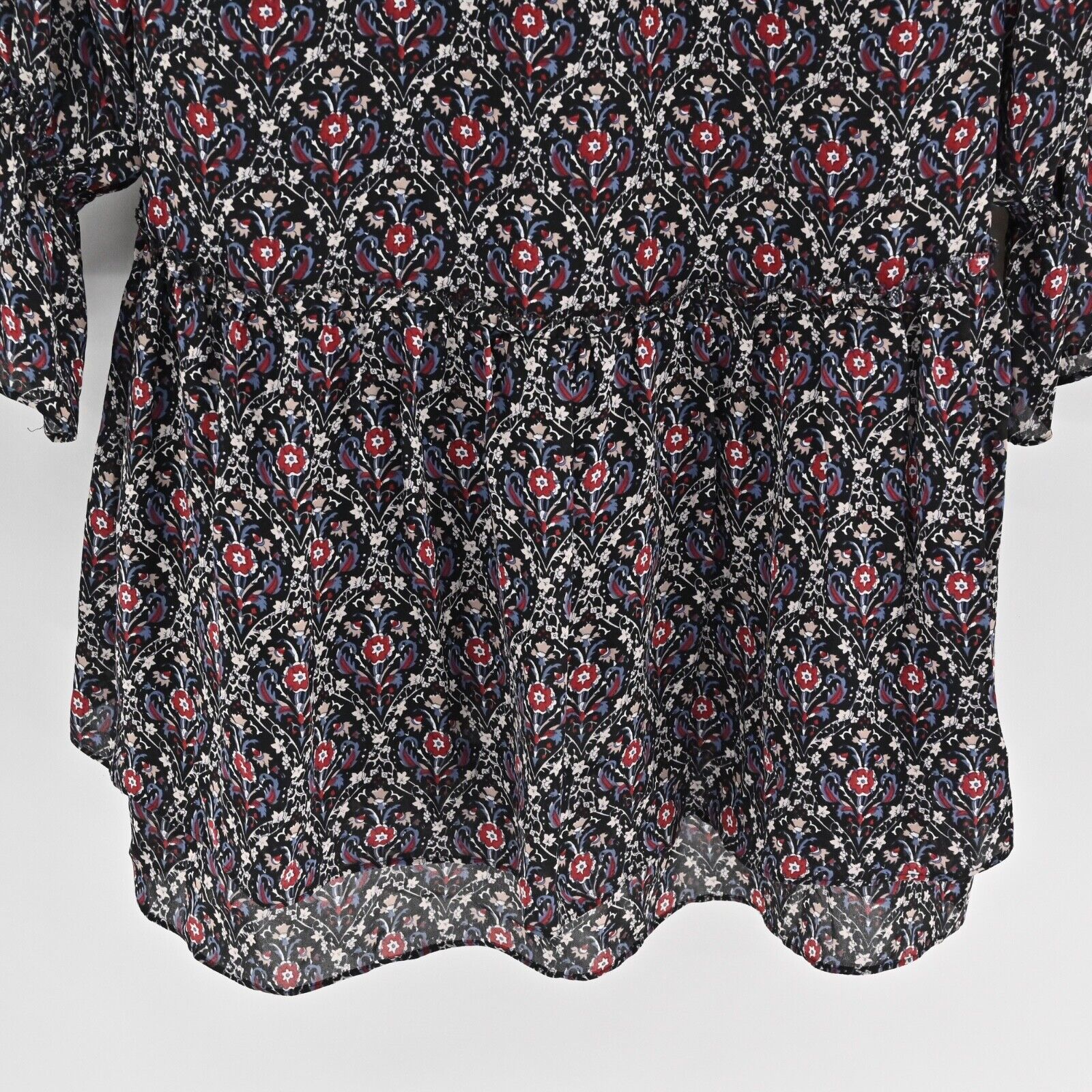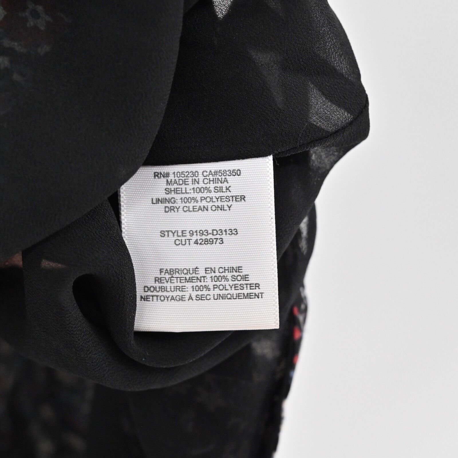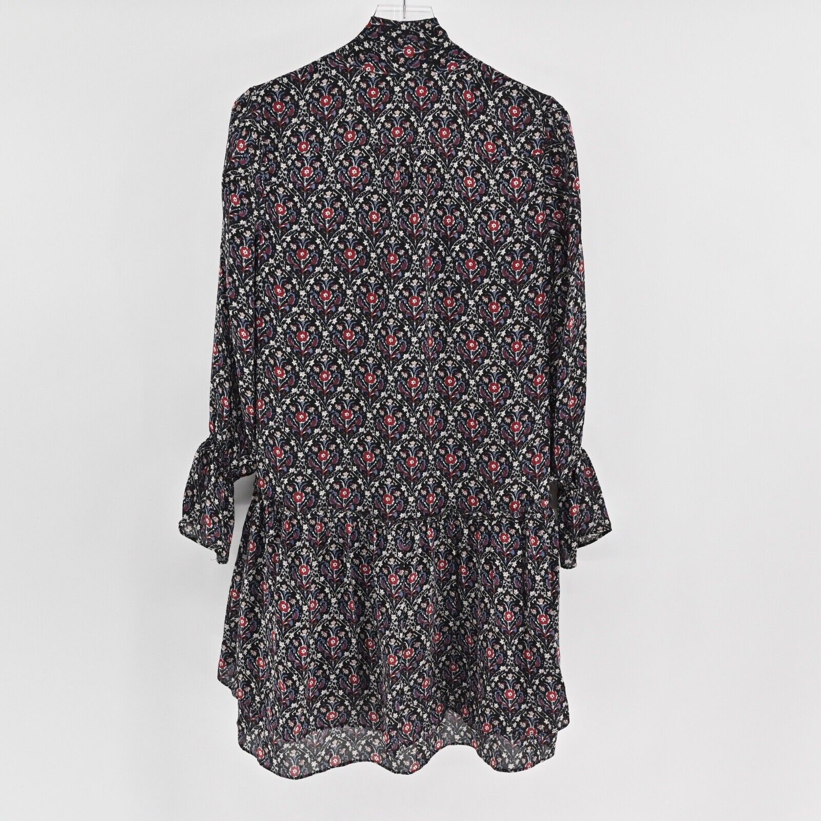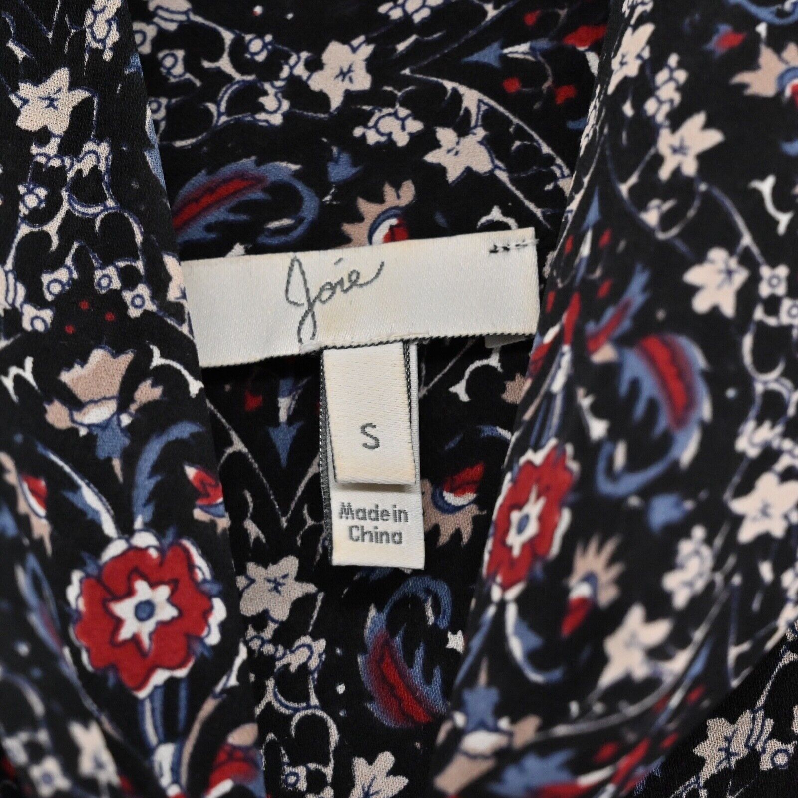 JOIE Dress Women's Size Small Black Floral 100% Silk Secretary Tie V-Neck Bell Long Sleeve Ruffle Hi-Low Hem Jamira Mini Pullover Lined MSRP $378 Retro Bohemian Boho Peasant Cottagecore Preppy Academia Hipster Twee