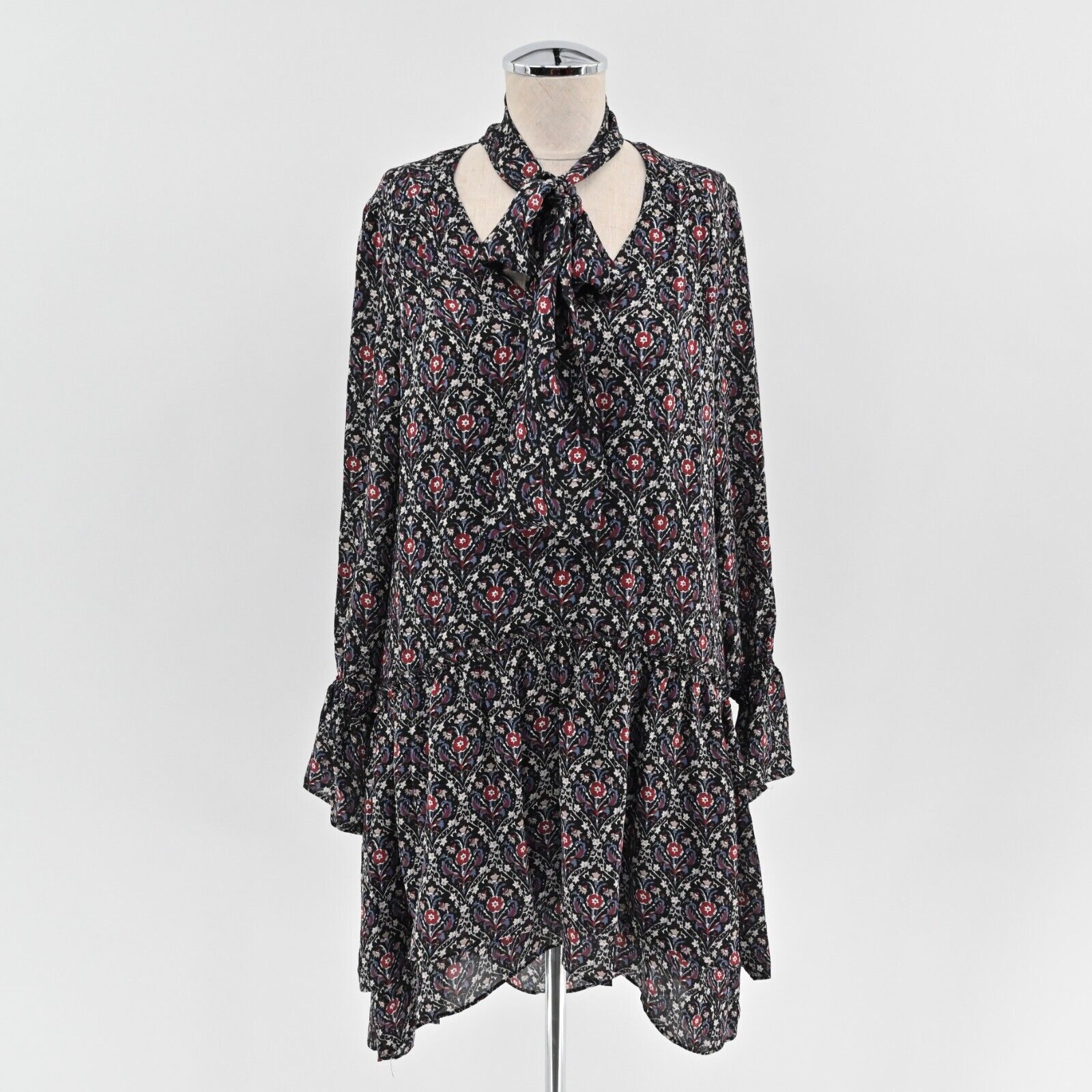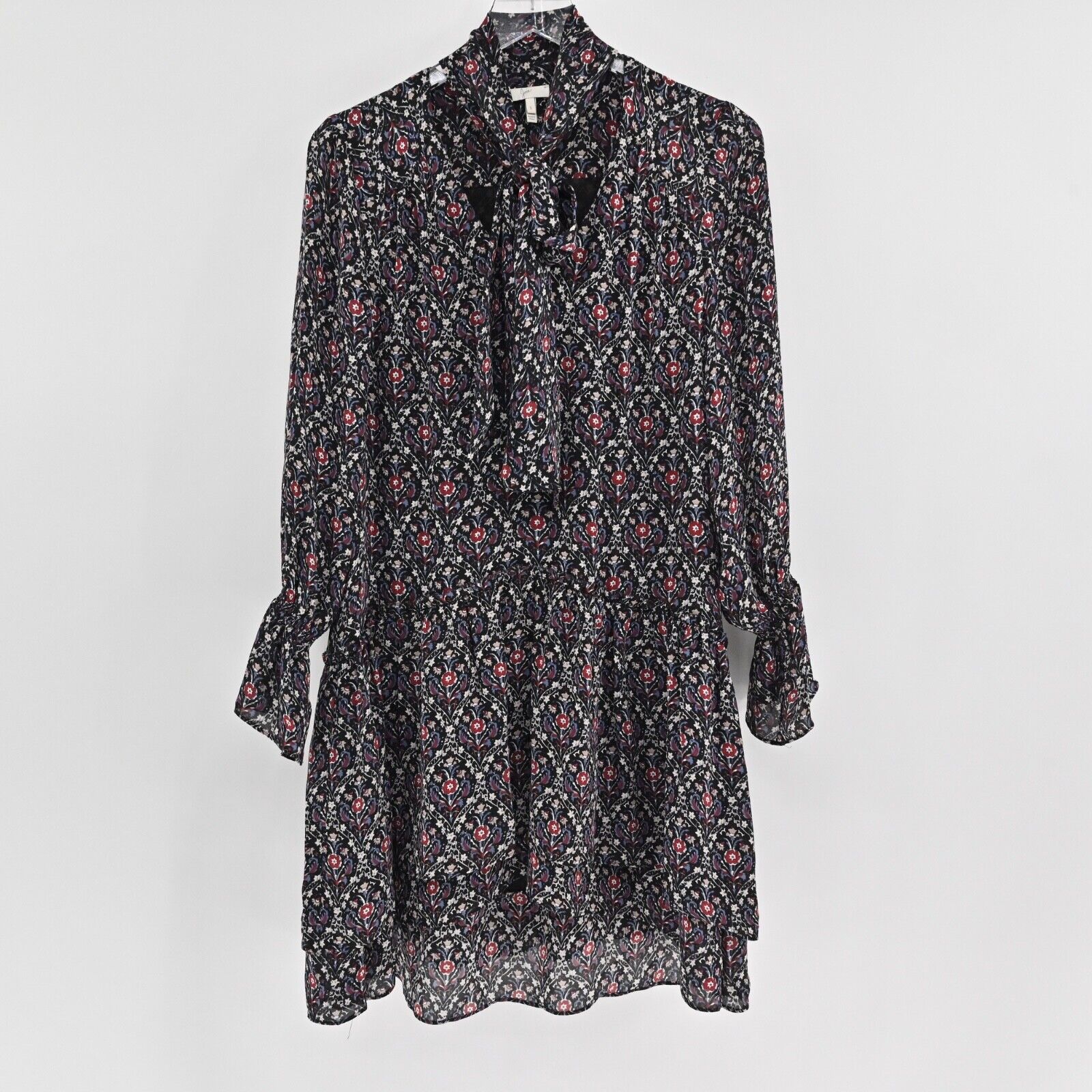 JOIE Dress Sz S Jamira Black Floral Silk Tie Neck Bell Sleeve Ruffle Mini Ditsy