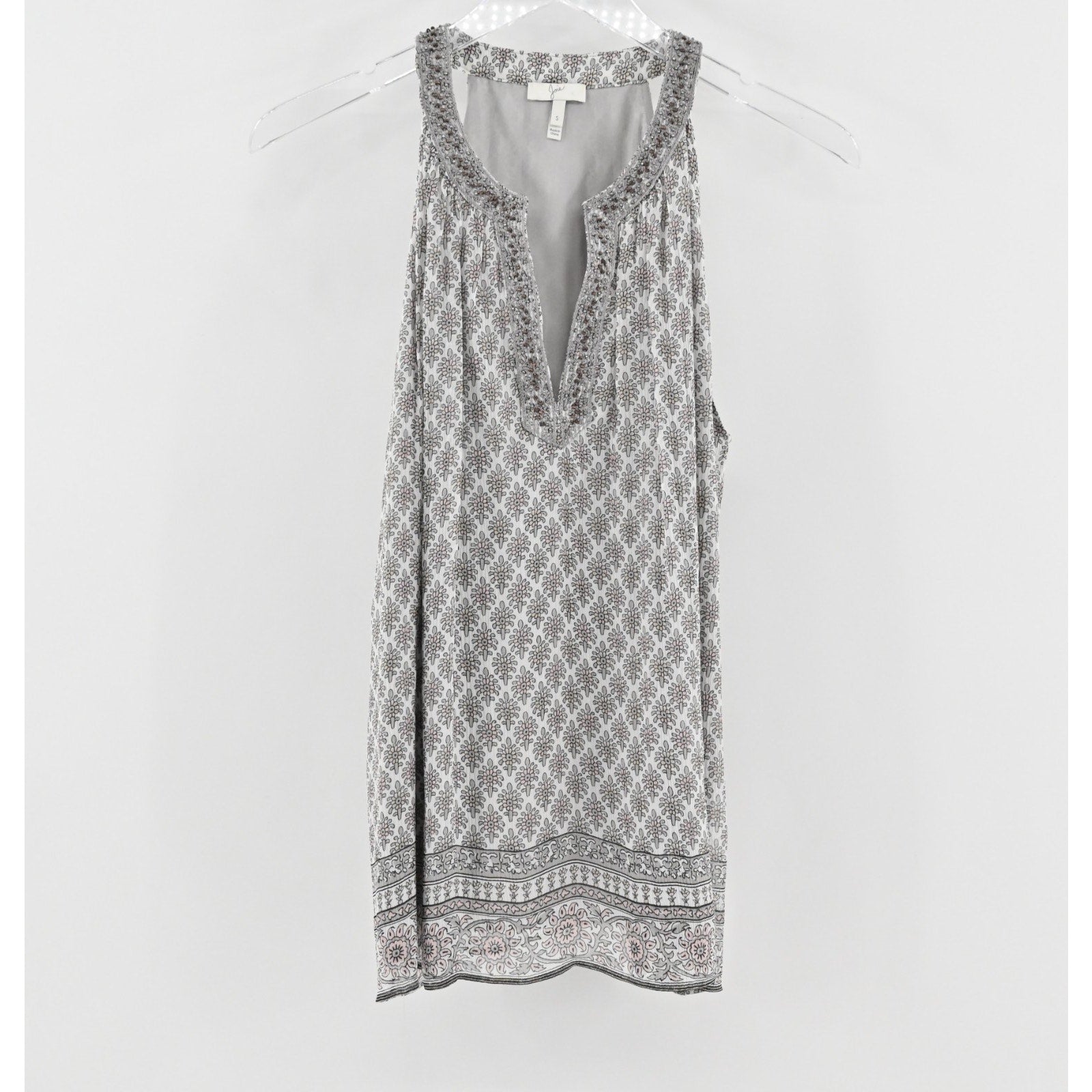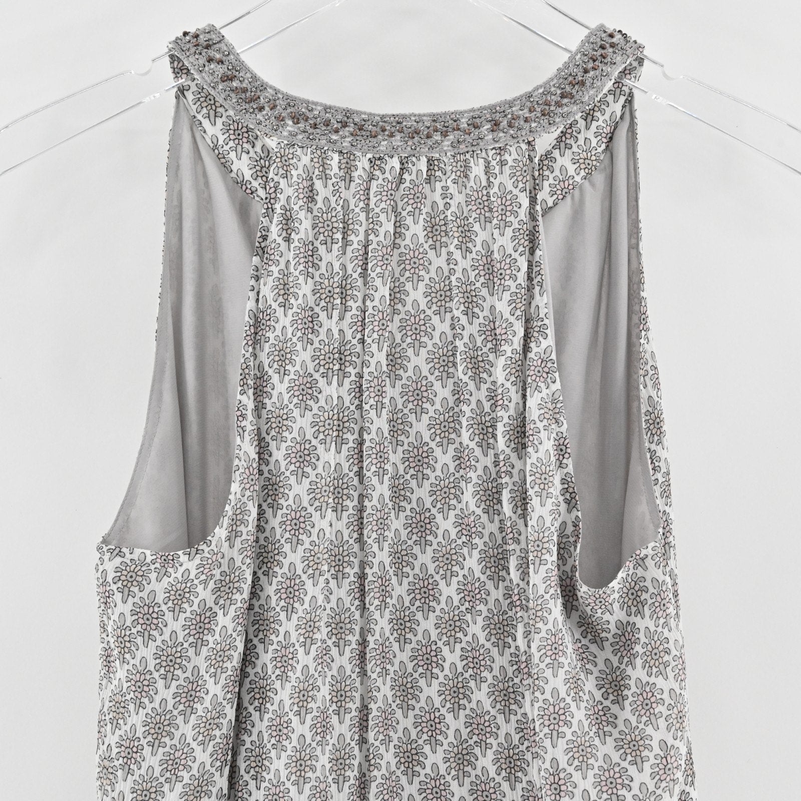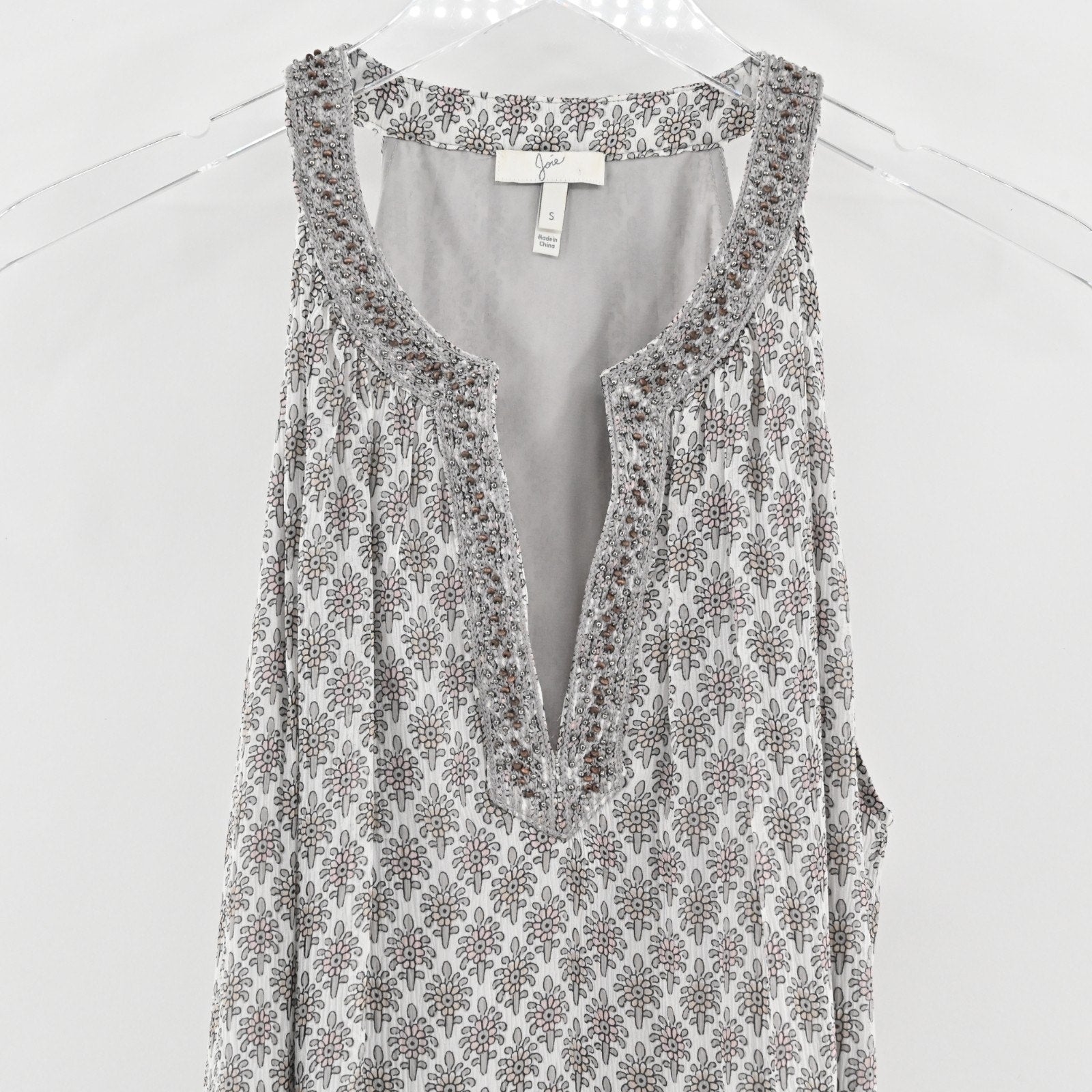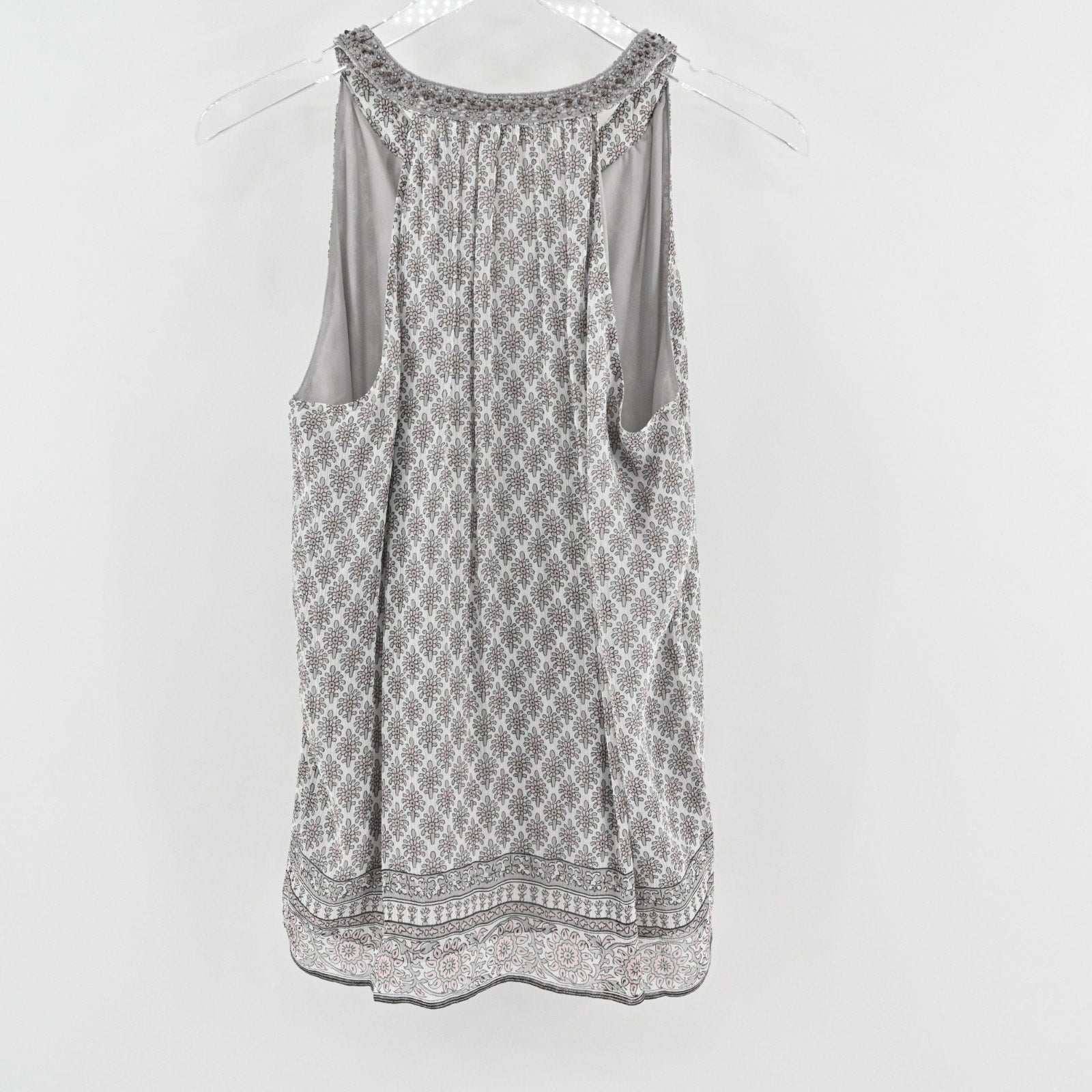 Joie Womens Astor Silk Sleeveless Top Size S Beaded Embroidered Gray Boho Tunic