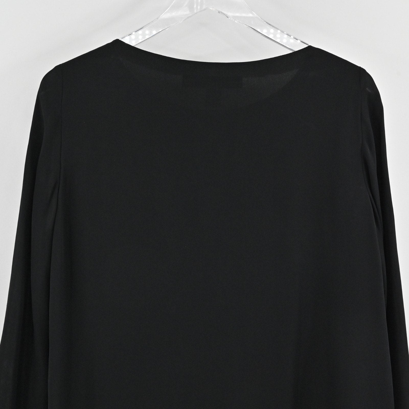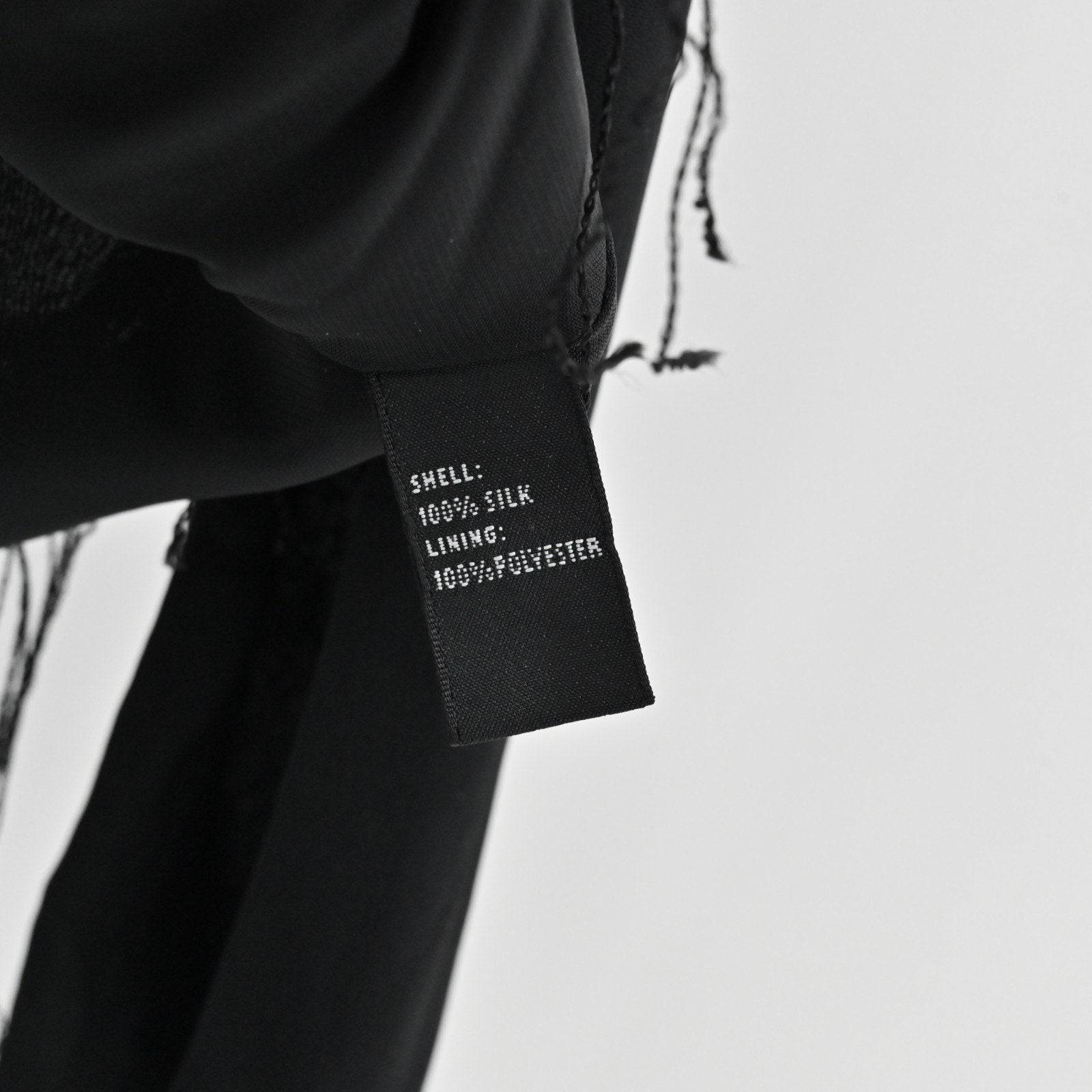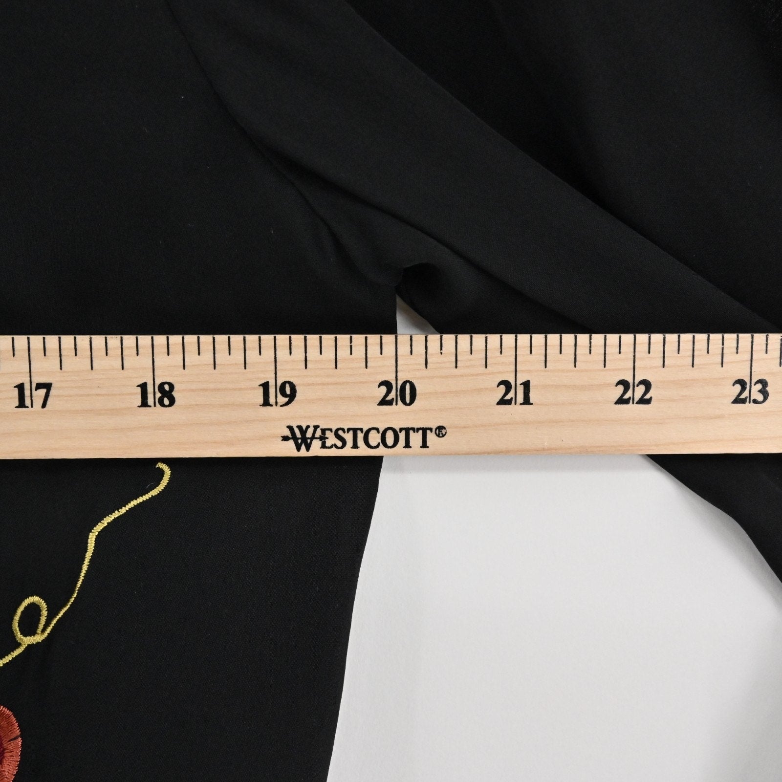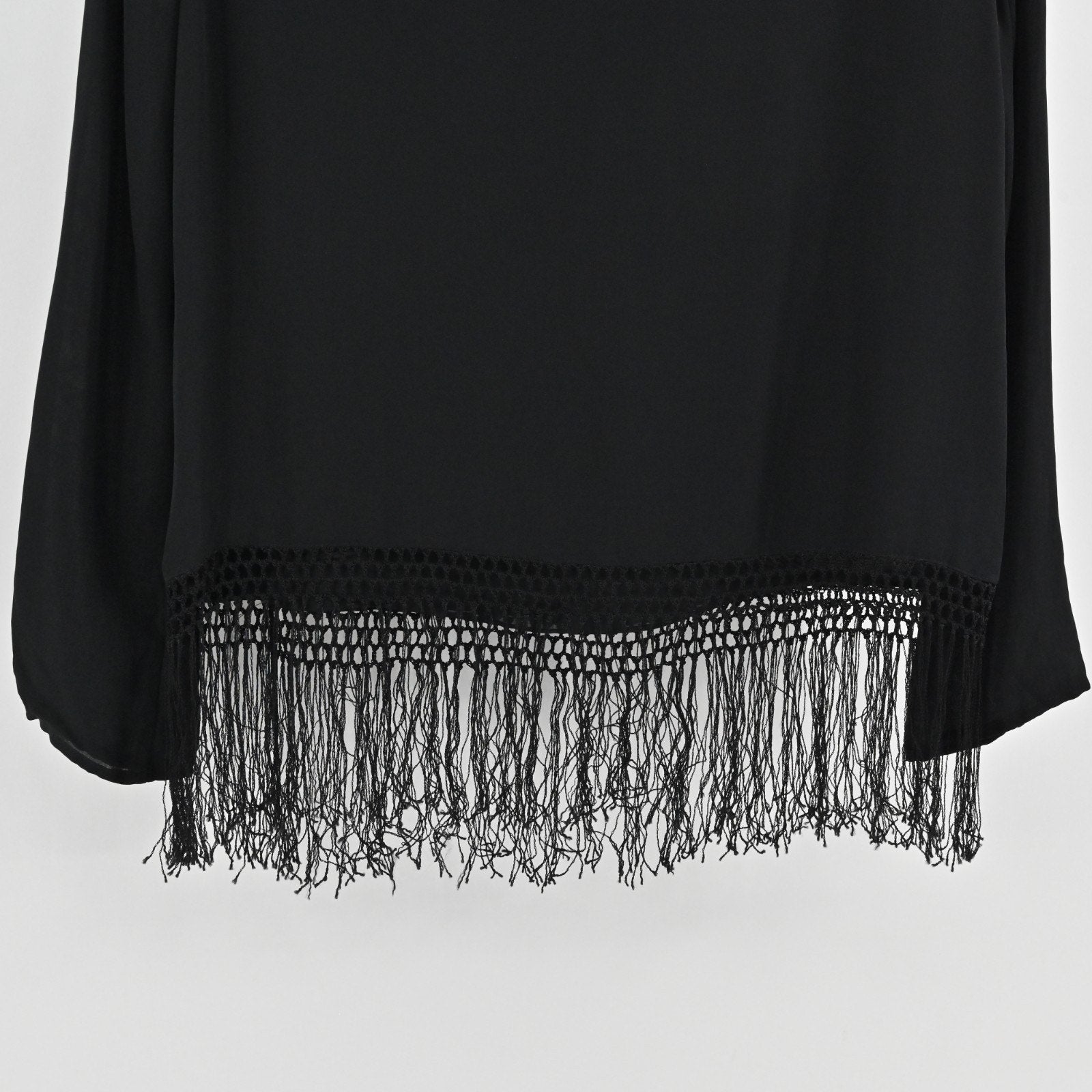 Josephine Chaus Womens Silk Top Size 8 Black Floral Embroidered Fringe Trim Boho