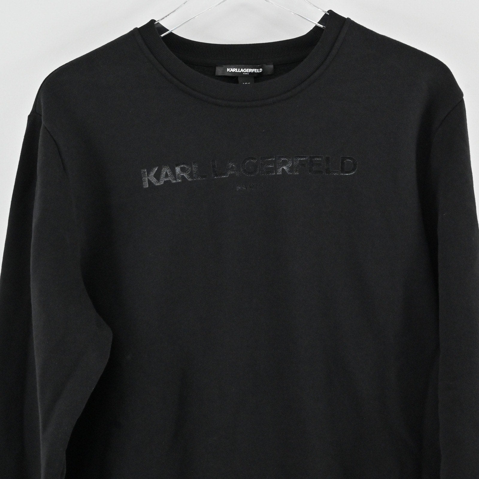 Karl Lagerfeld Mens Slim Fit Tonal Logo Sweatshirt Size L Black Crewneck Grunge
