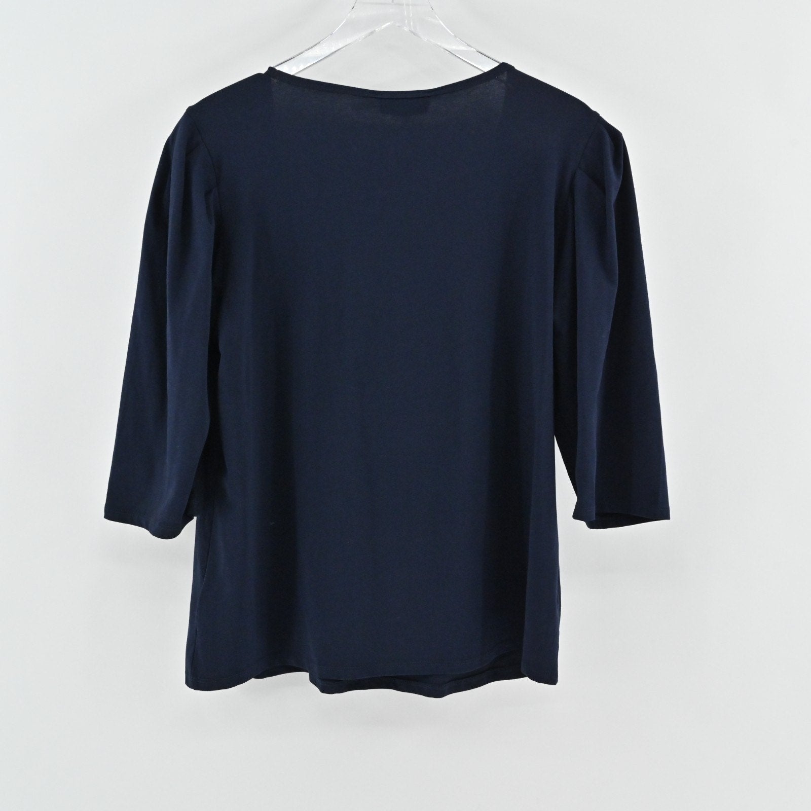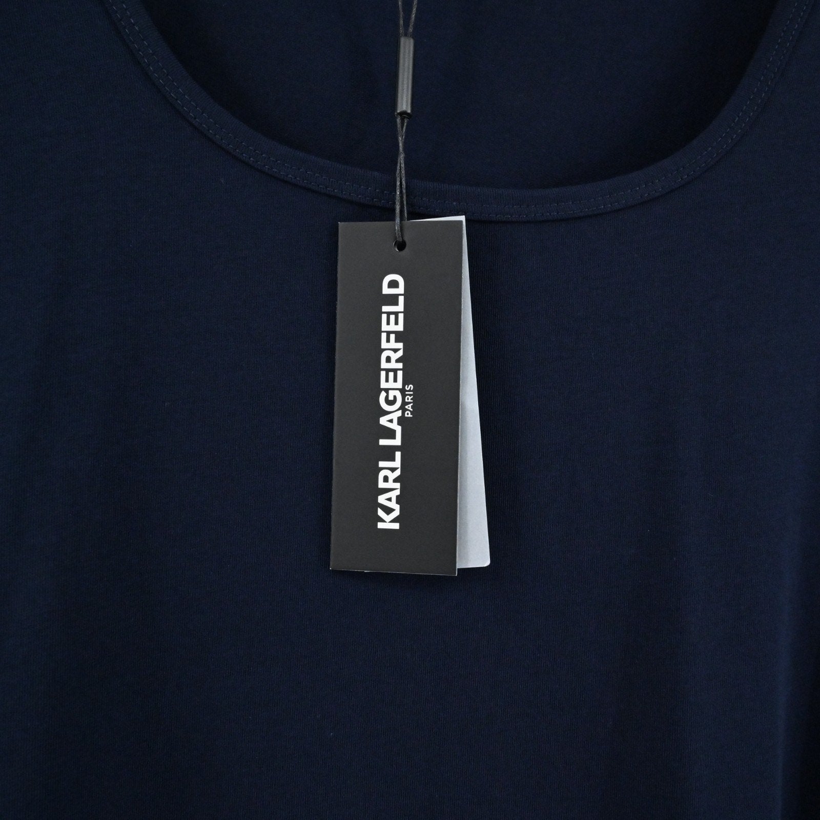Karl Lagerfeld Womens Navy Blue Top Size XL Puff Sleeve Scoop Neck Cotton NEW