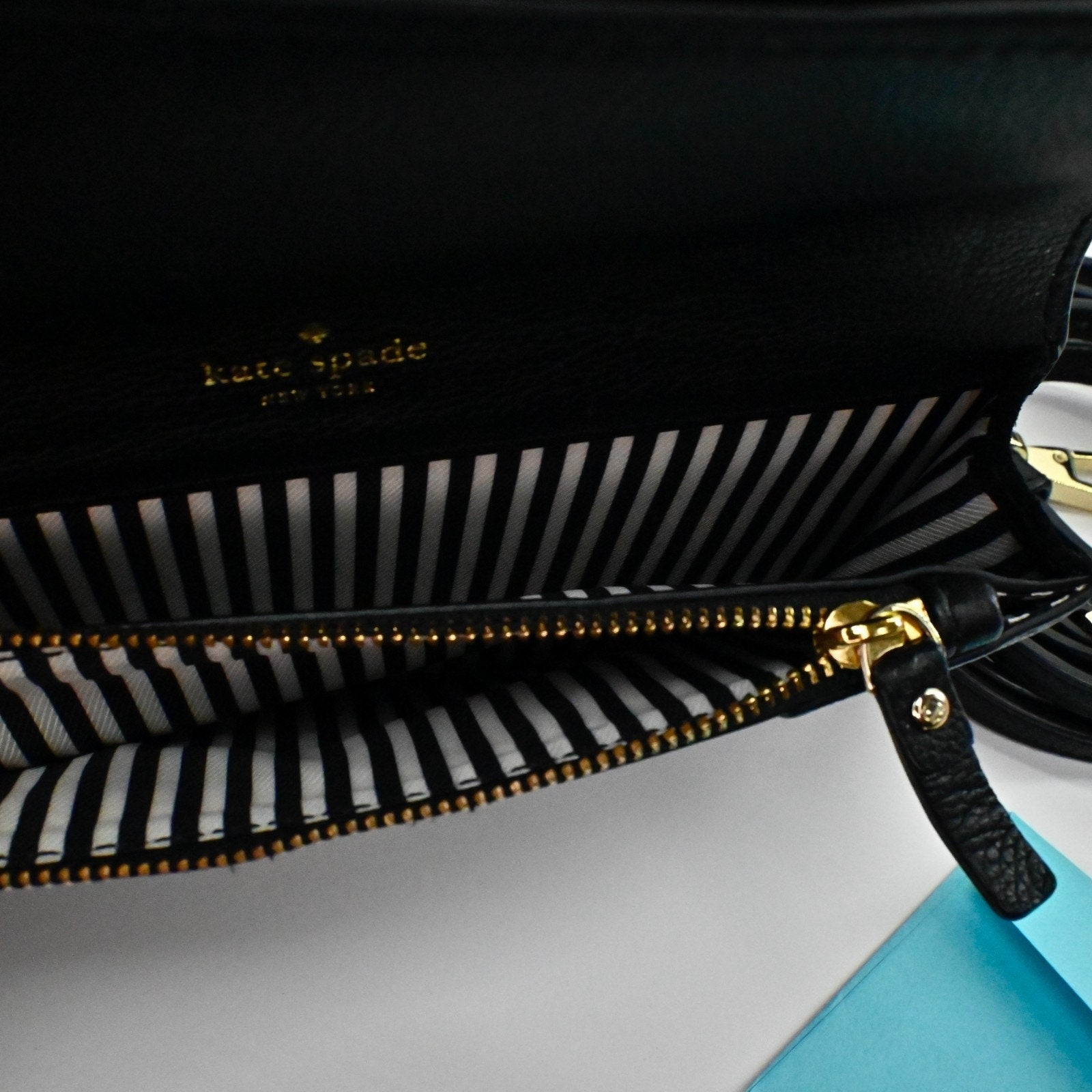 Kate Spade Kaela Carmel Court Black Leather Small Crossbody Bag Classic Flap