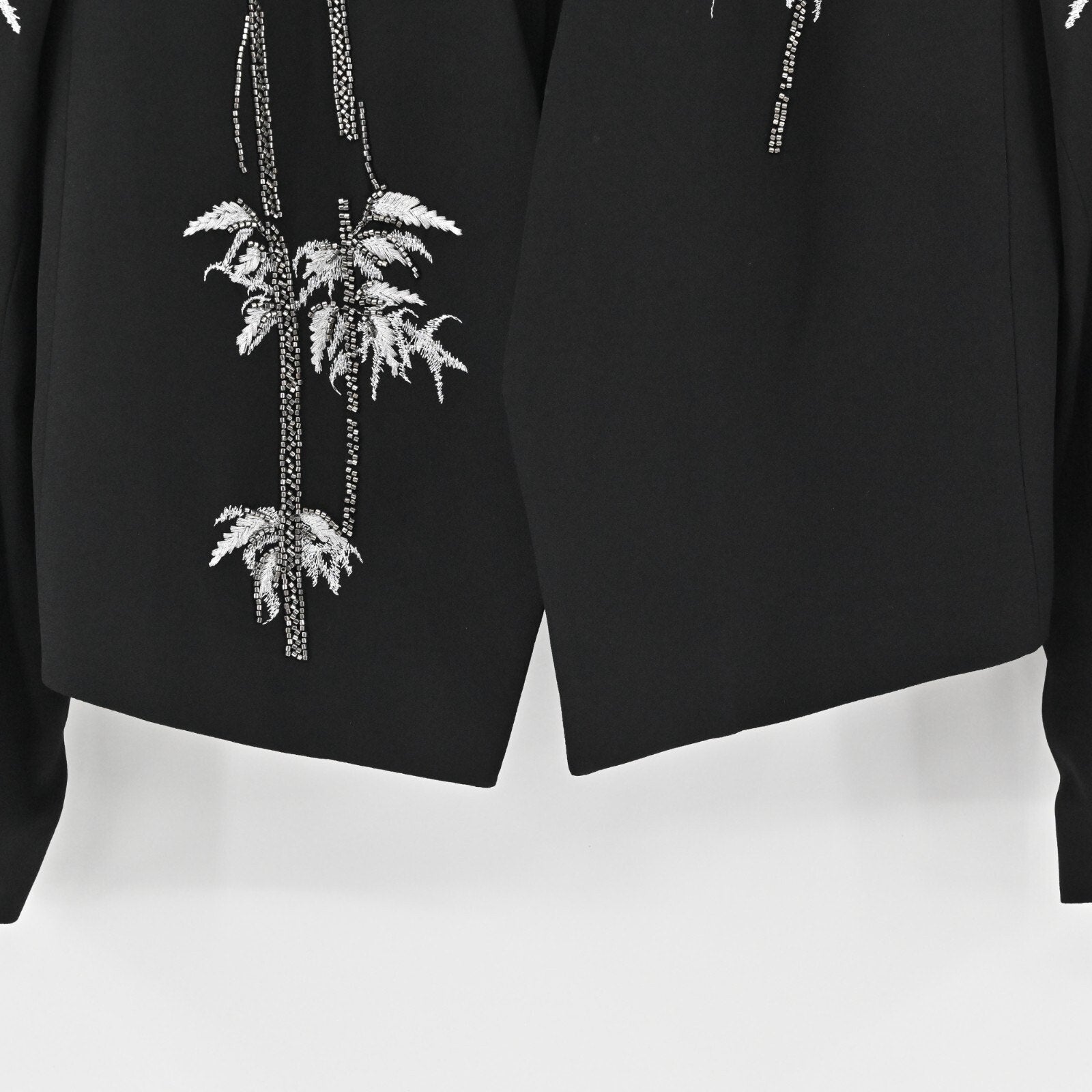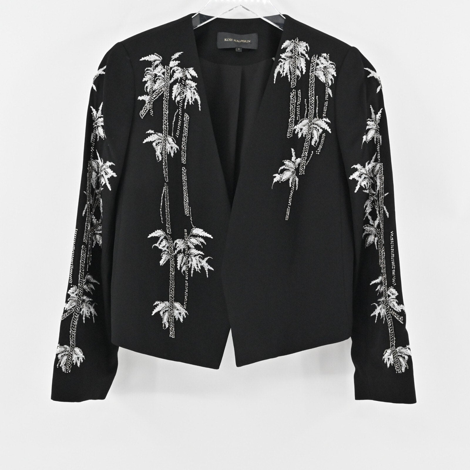 KOBI HALPERIN Embellished Jacket Womens Size S Black Beaded Palm Tree Blazer
