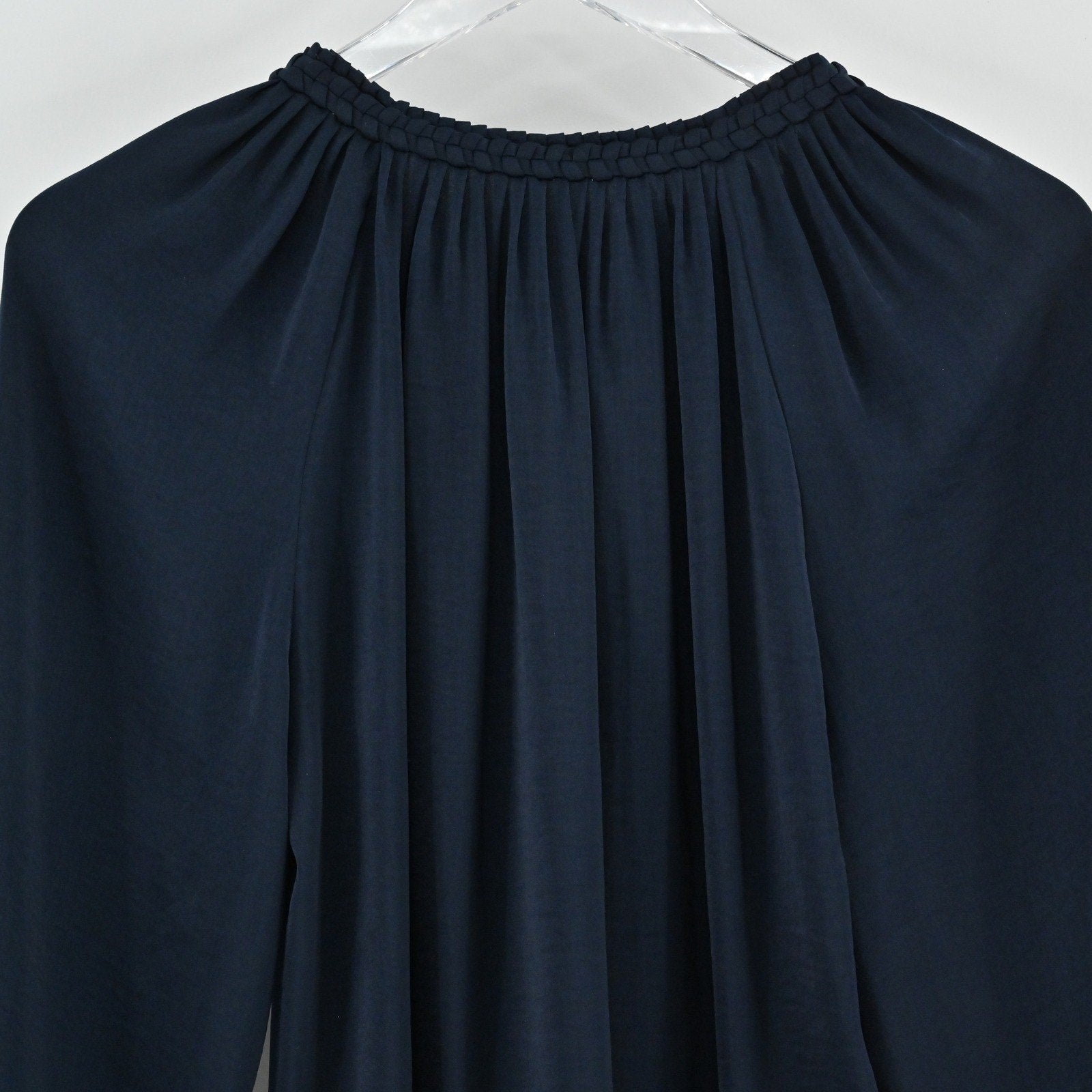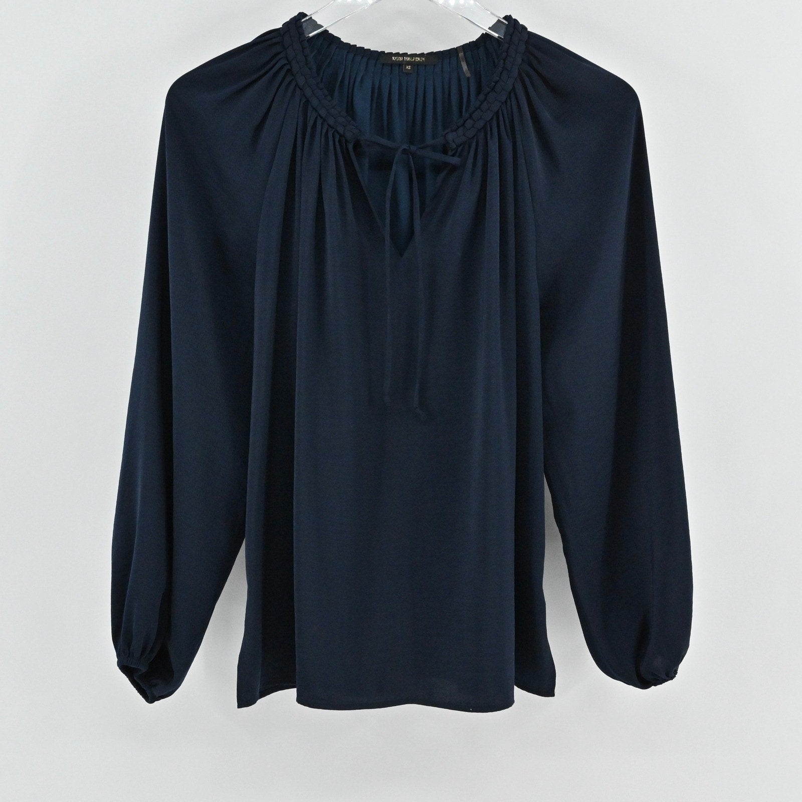 KOBI HALPERIN Womens Caprice Tie Neck Blouse Sz XS Navy Romantic Long Sleeve Top