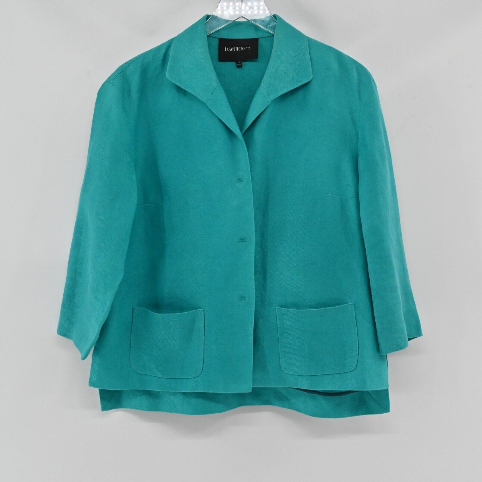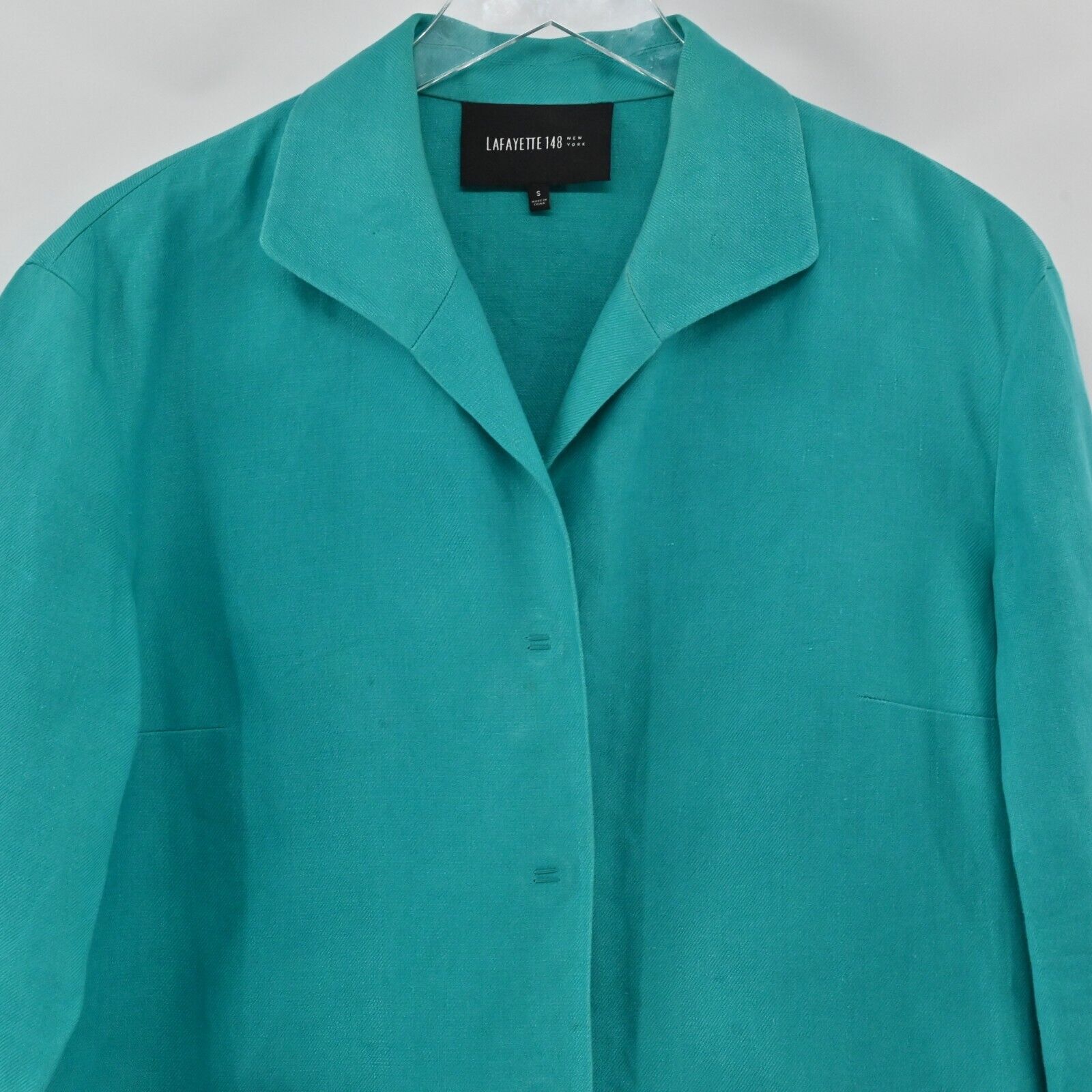 LAFAYETTE 148 Blazer Womens Size S Solid Teal Linen Button Front Pocket Collar