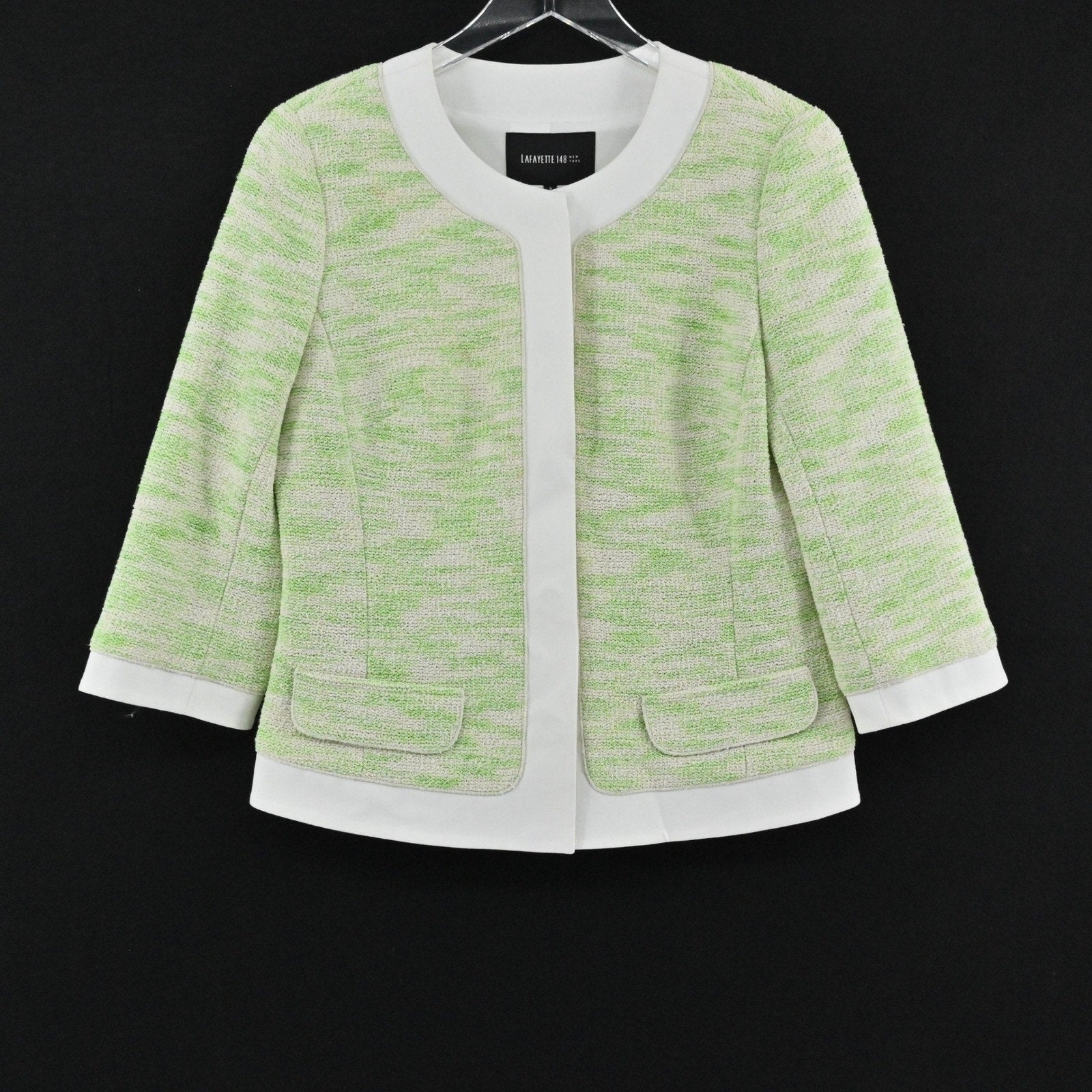 Lafayette 148 Womens Tweed Blazer Size 8 Green Luxury Textured Collarless Jacket