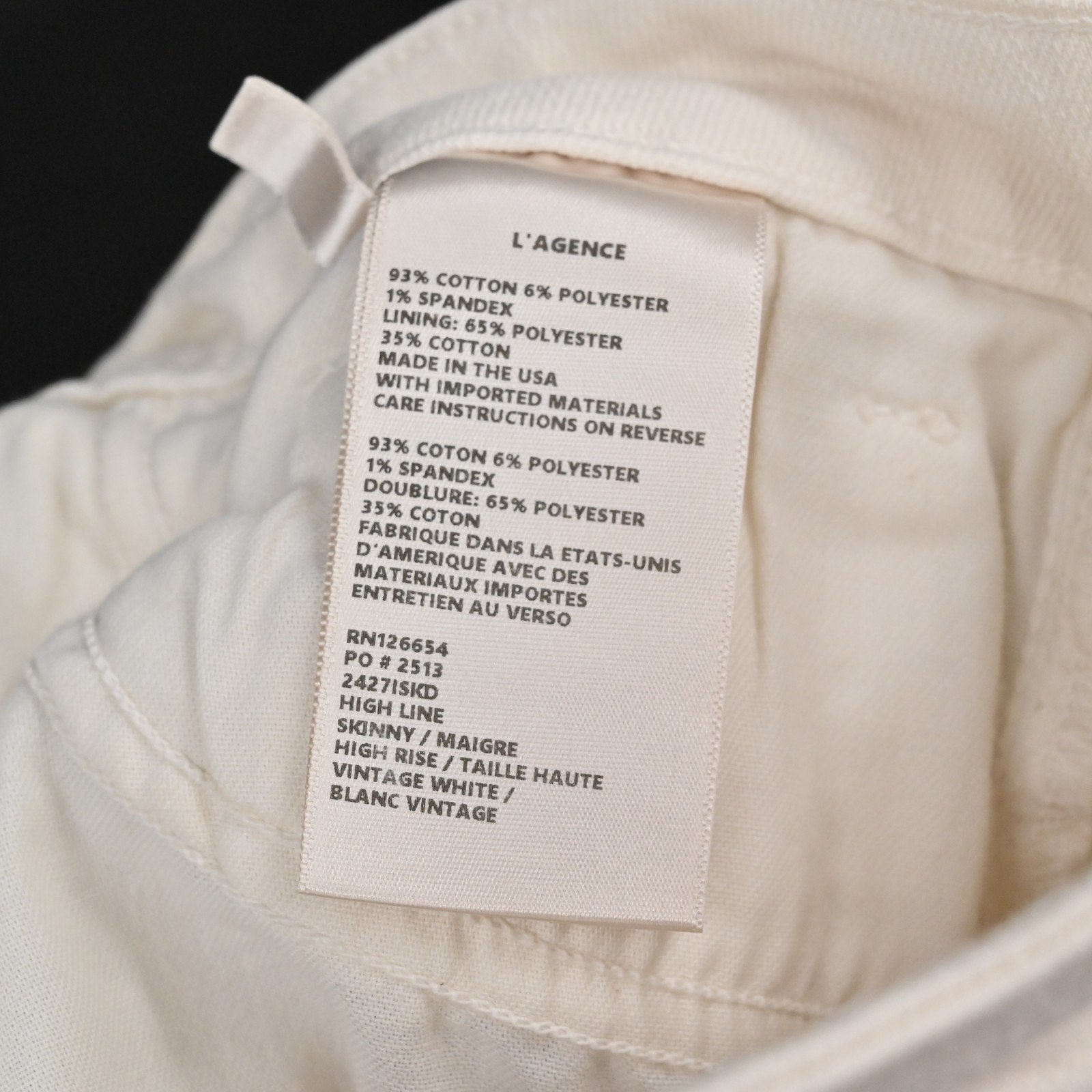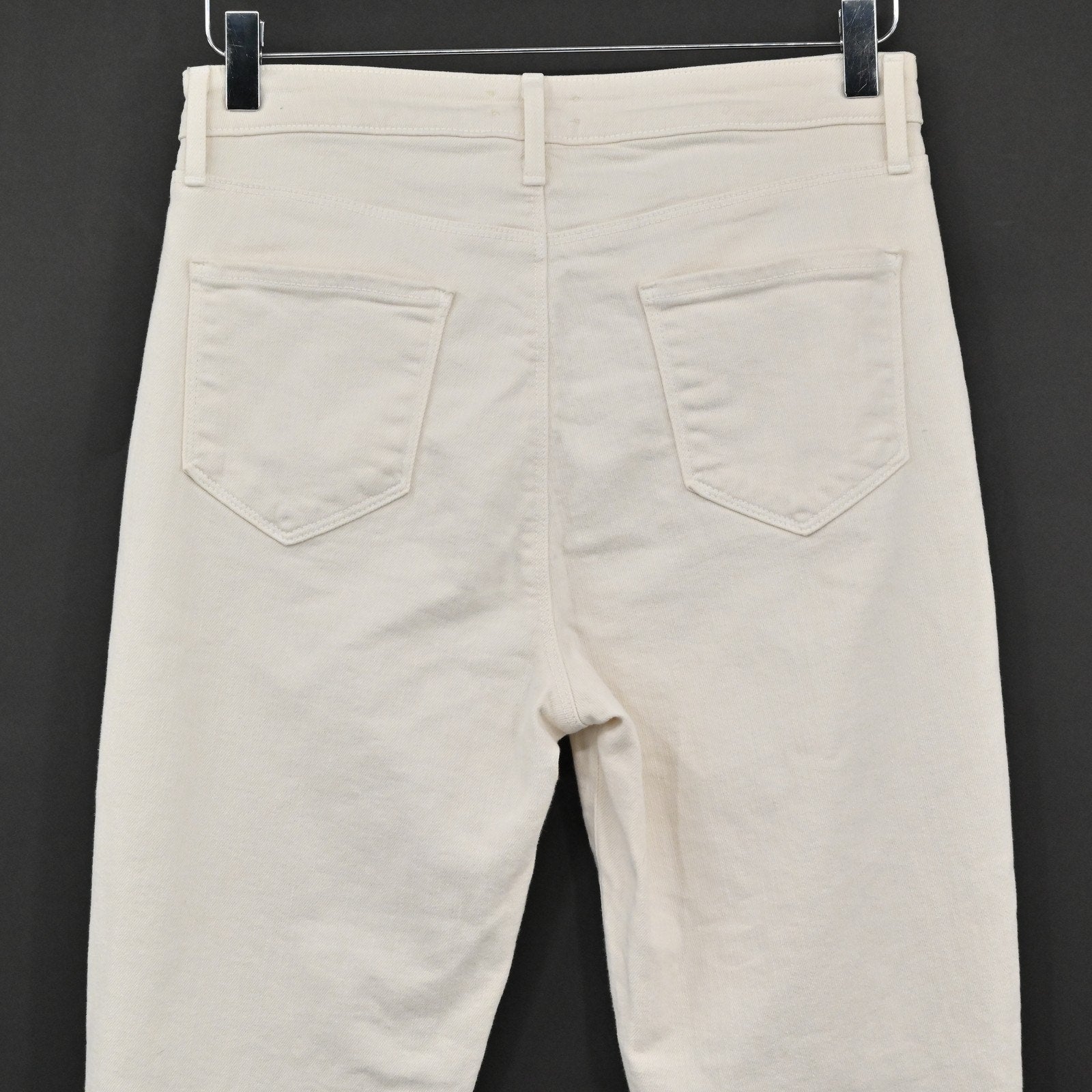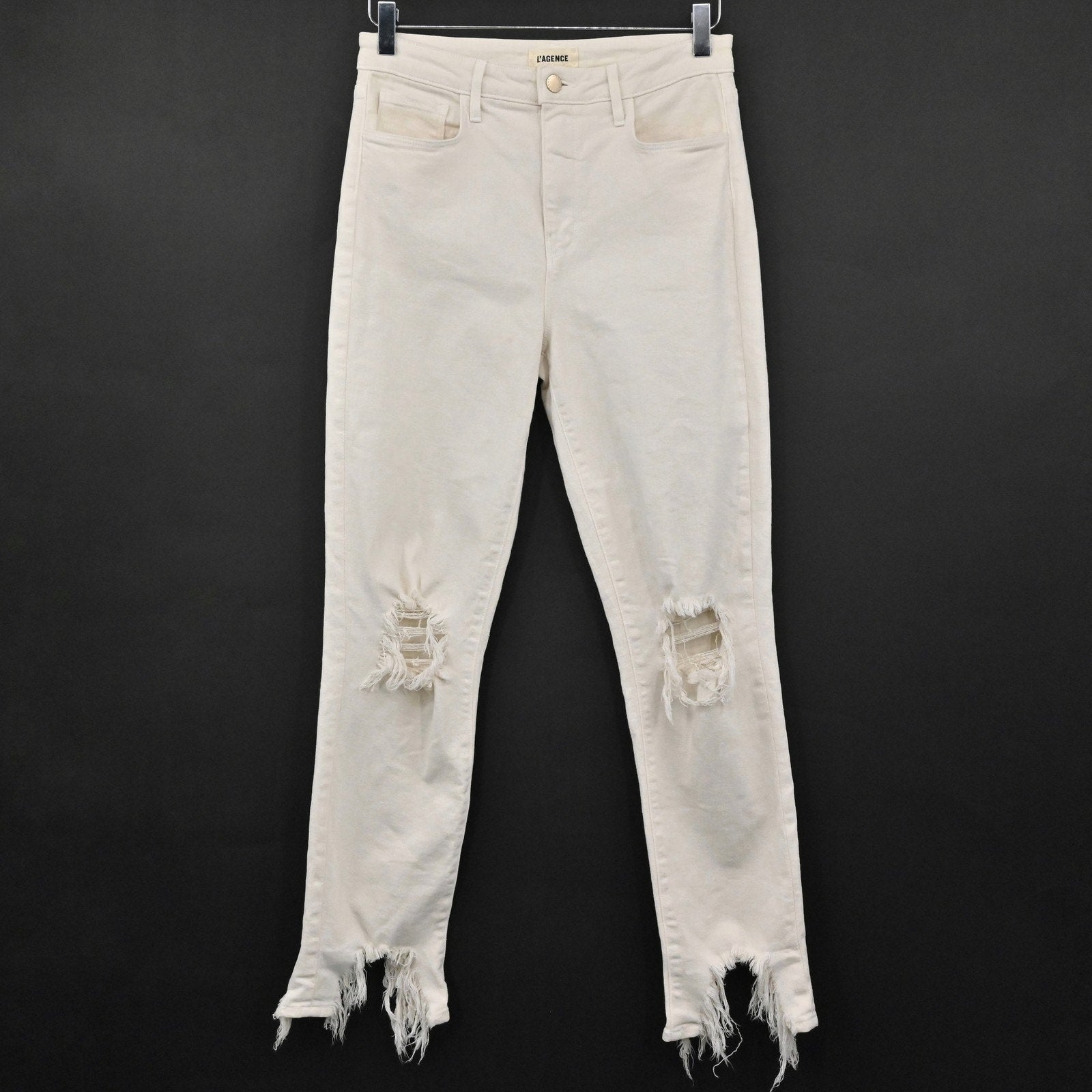 L'Agence Womens Distressed Jeans 27 Cream High Line Skinny Frayed Hem Ripped USA