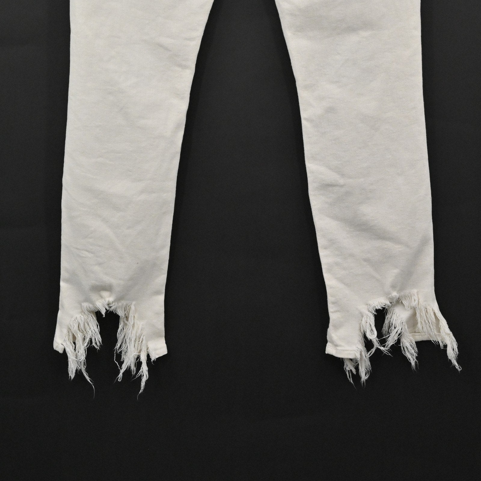 Style Profile: Festival Frayed Hem Raw Edge Knee Rips Slim Fit White Denim Stretch Fabric Edgy Style Casual Look Urban Streetwear Summer Wardrobe Essential Trendy Design Bold Details Comfortable Fit Modern Aesthetic Everyday Fashion