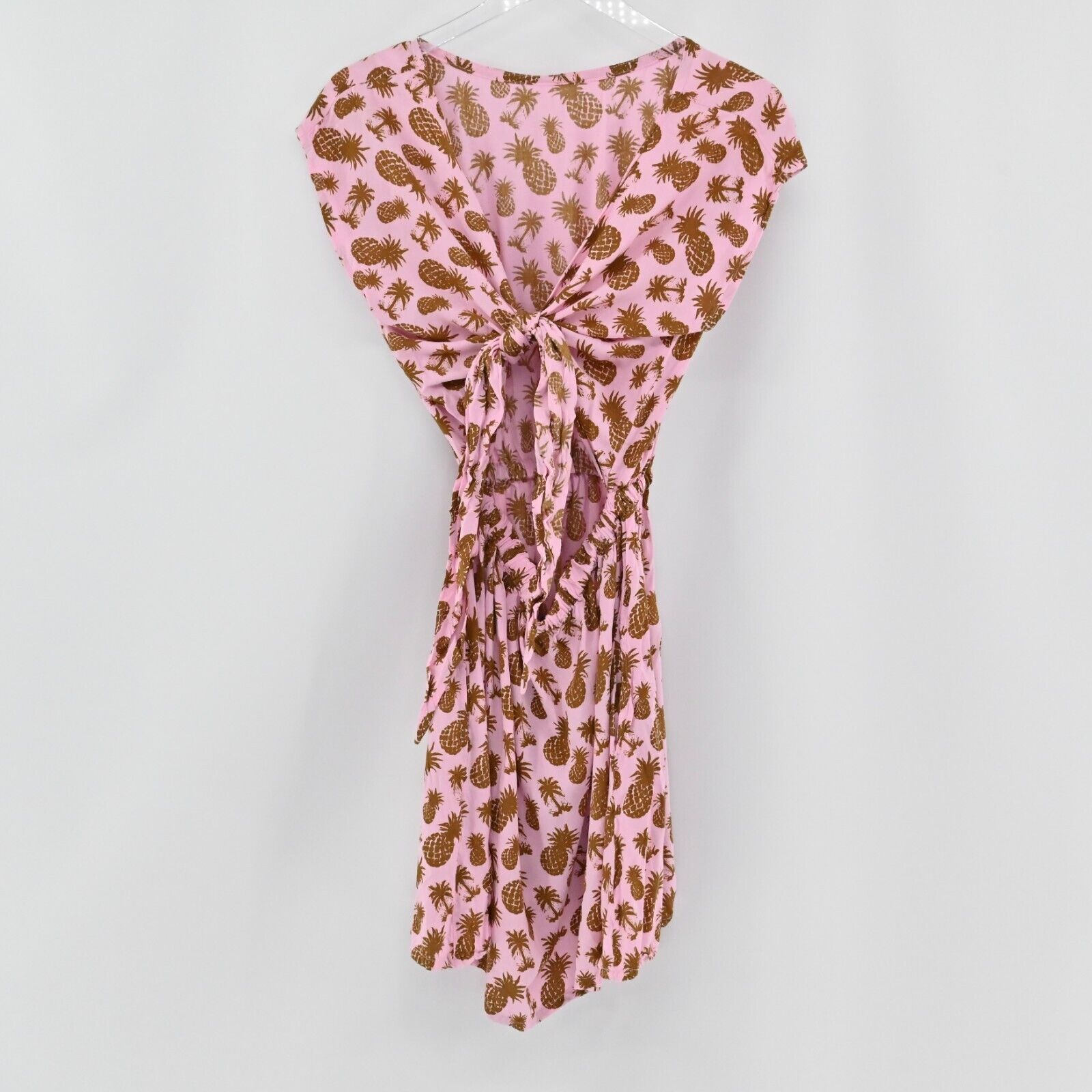 LANI LAU Dress Womens Size M/L Pink Tie Back Stretch Waist Pineapple Print Beach