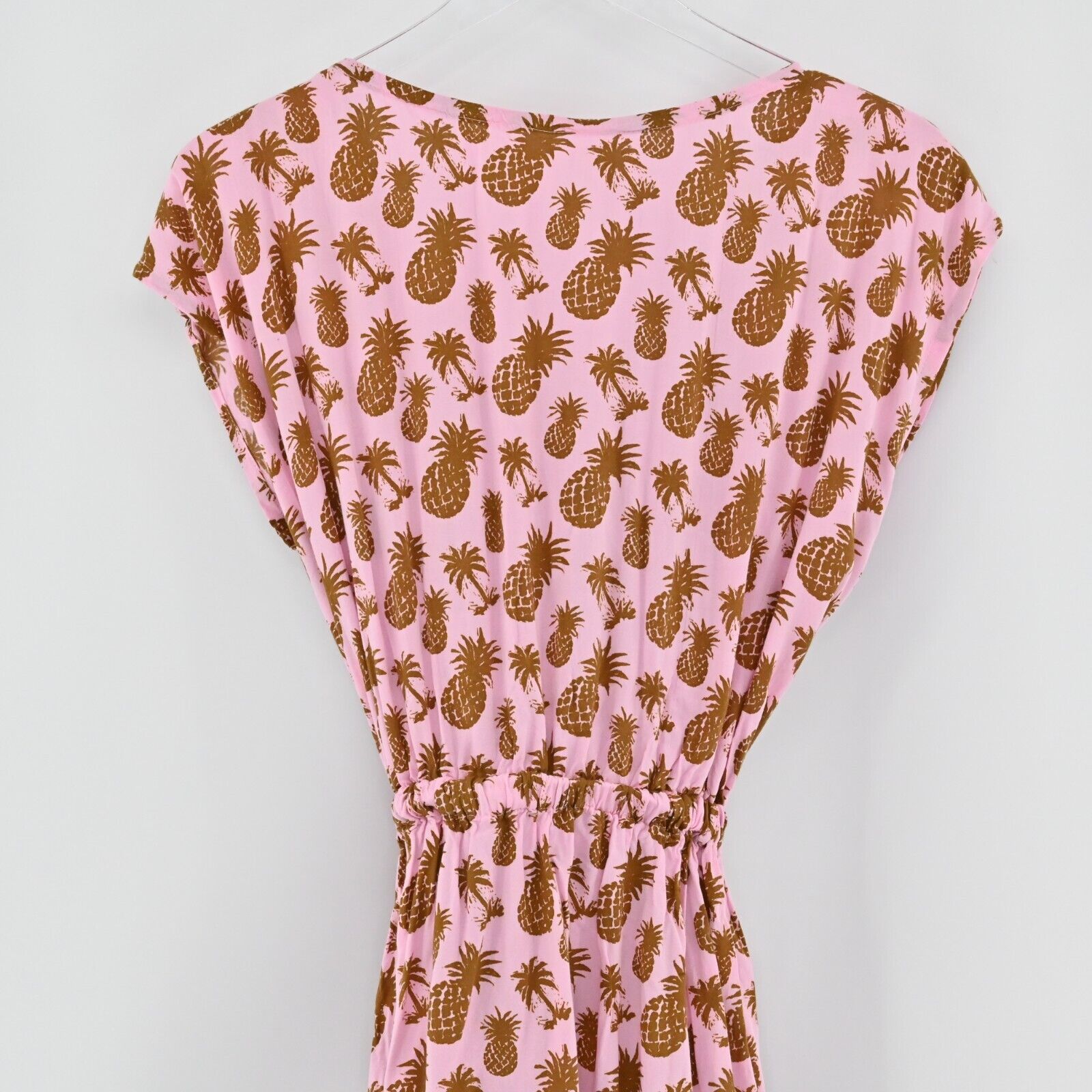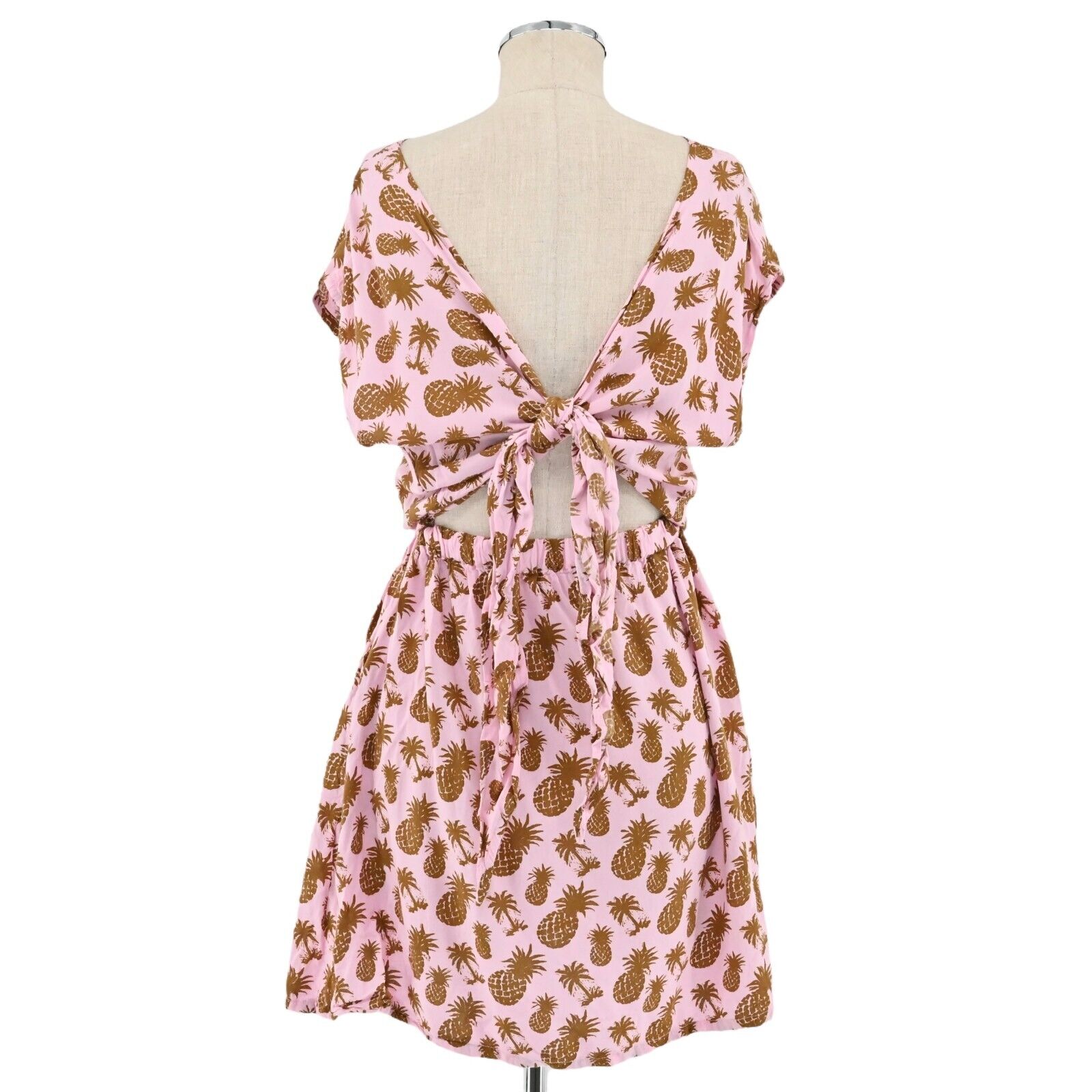 LANI LAU Women's Size M/L Dress Pink Tie Back Stretch Waist Pineapple Print