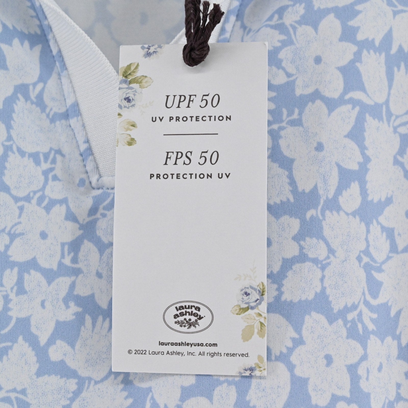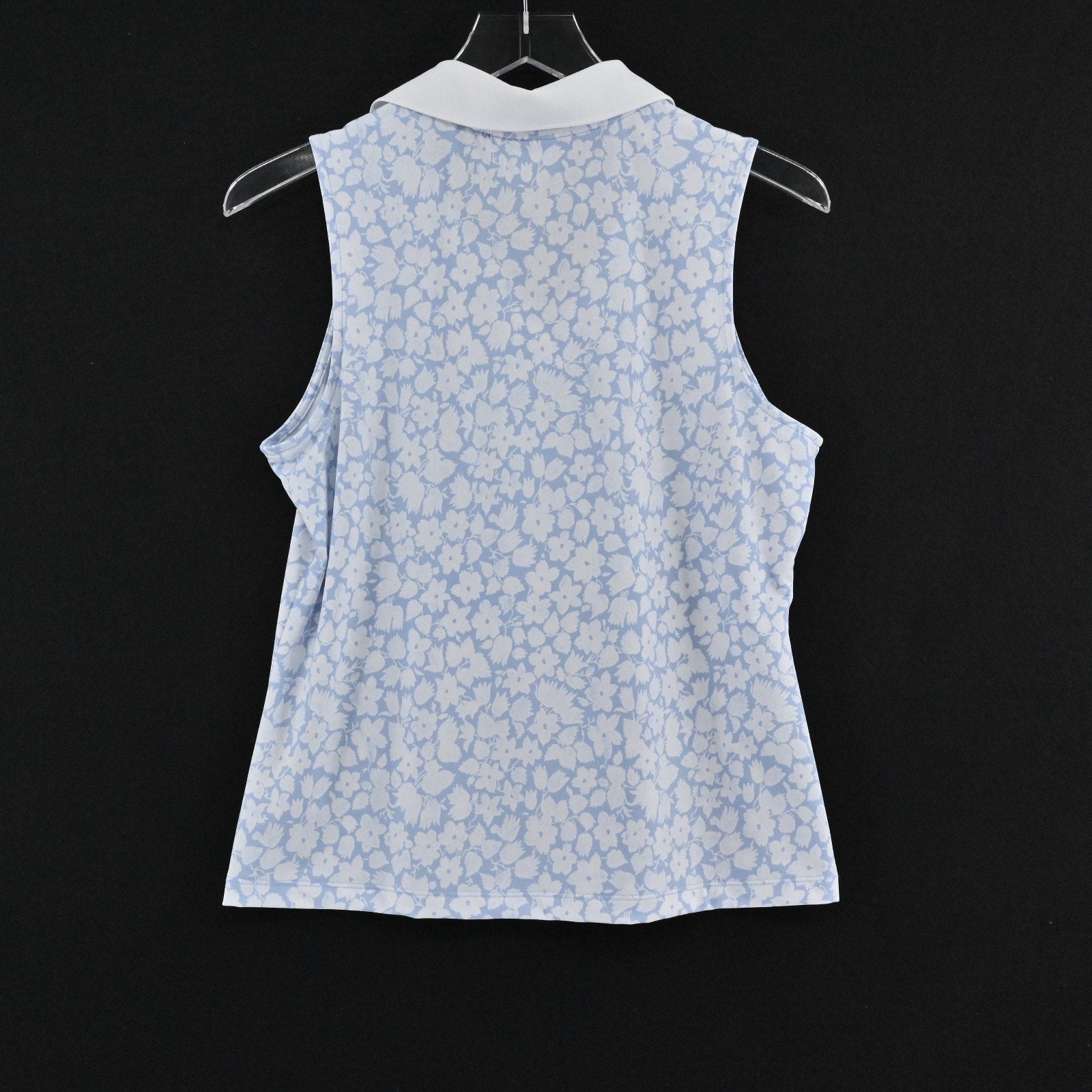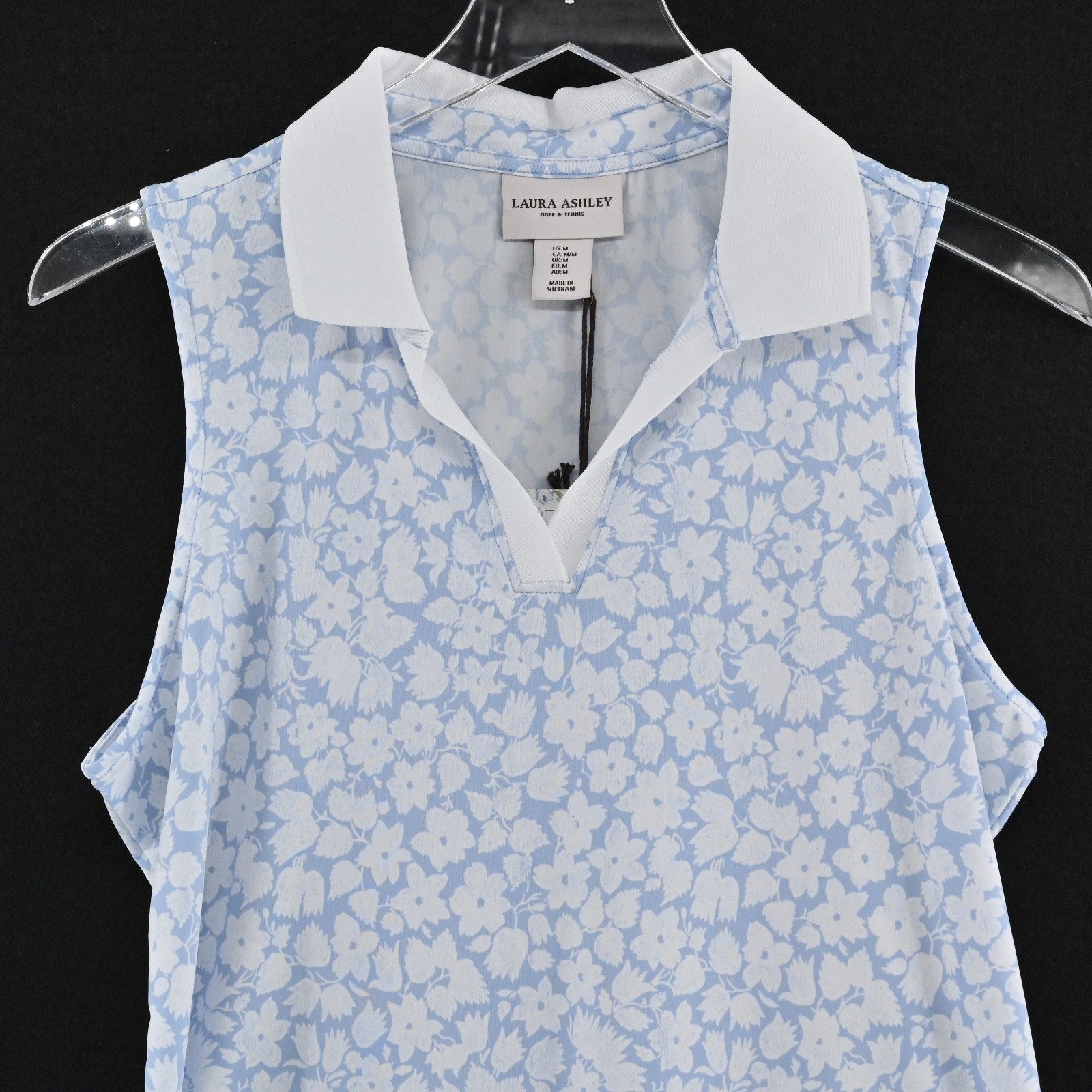 Laura Ashley Womens Polo Shirt Top Size M Sleeveless Blue Floral Golf Tennis