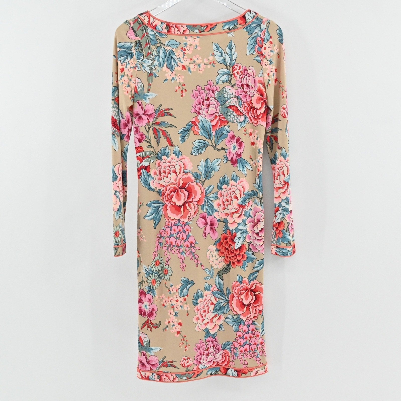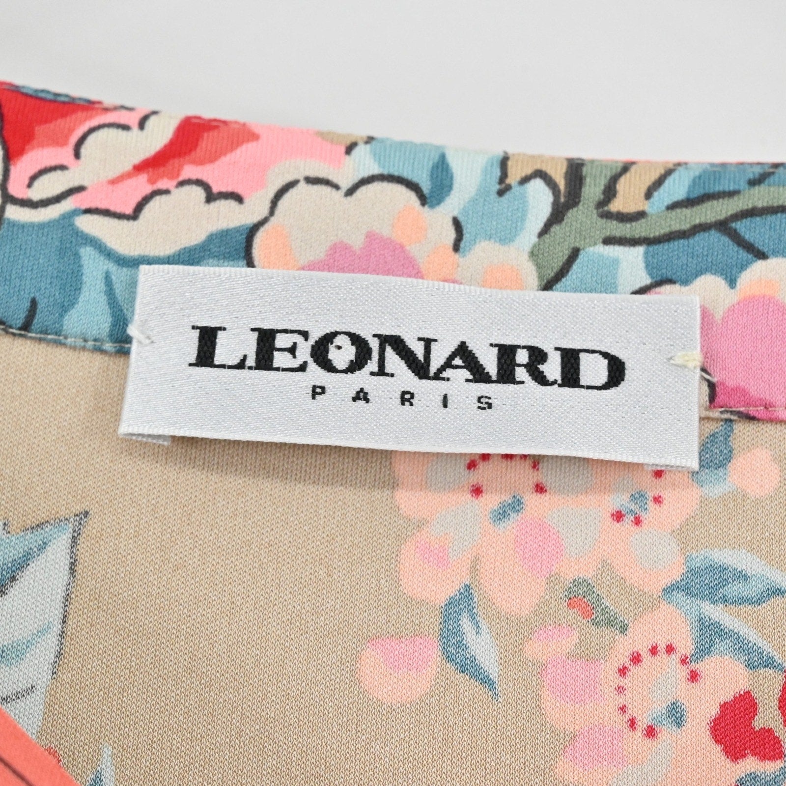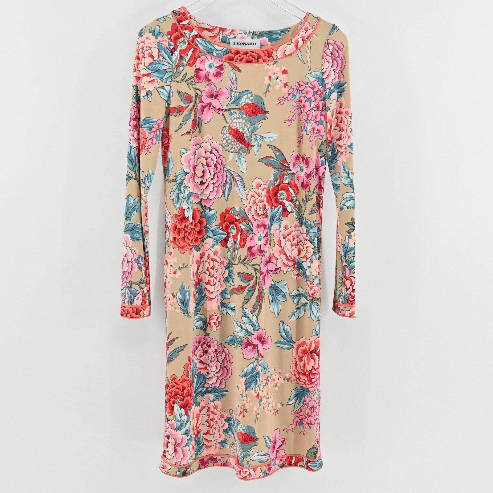 Leonard Paris Floral Print Silk Dress Size 38 Belted Long Sleeve Luxury Dopamine