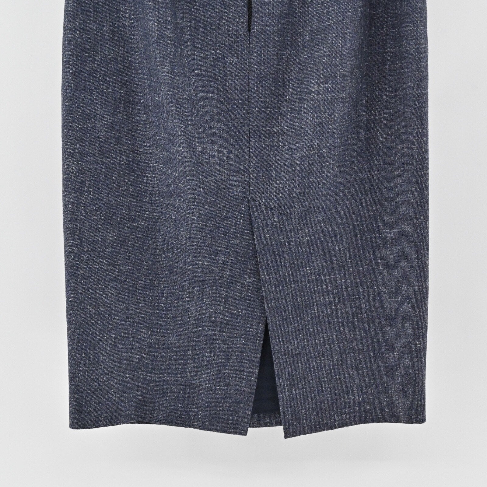 LES COPAINS Skirt Size 46 Blue Wool Silk Linen Stretch Knee Length Pencil Career