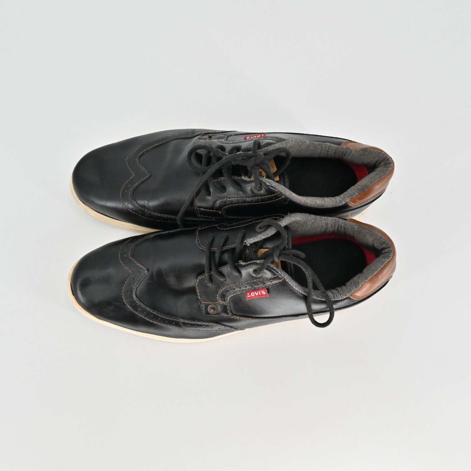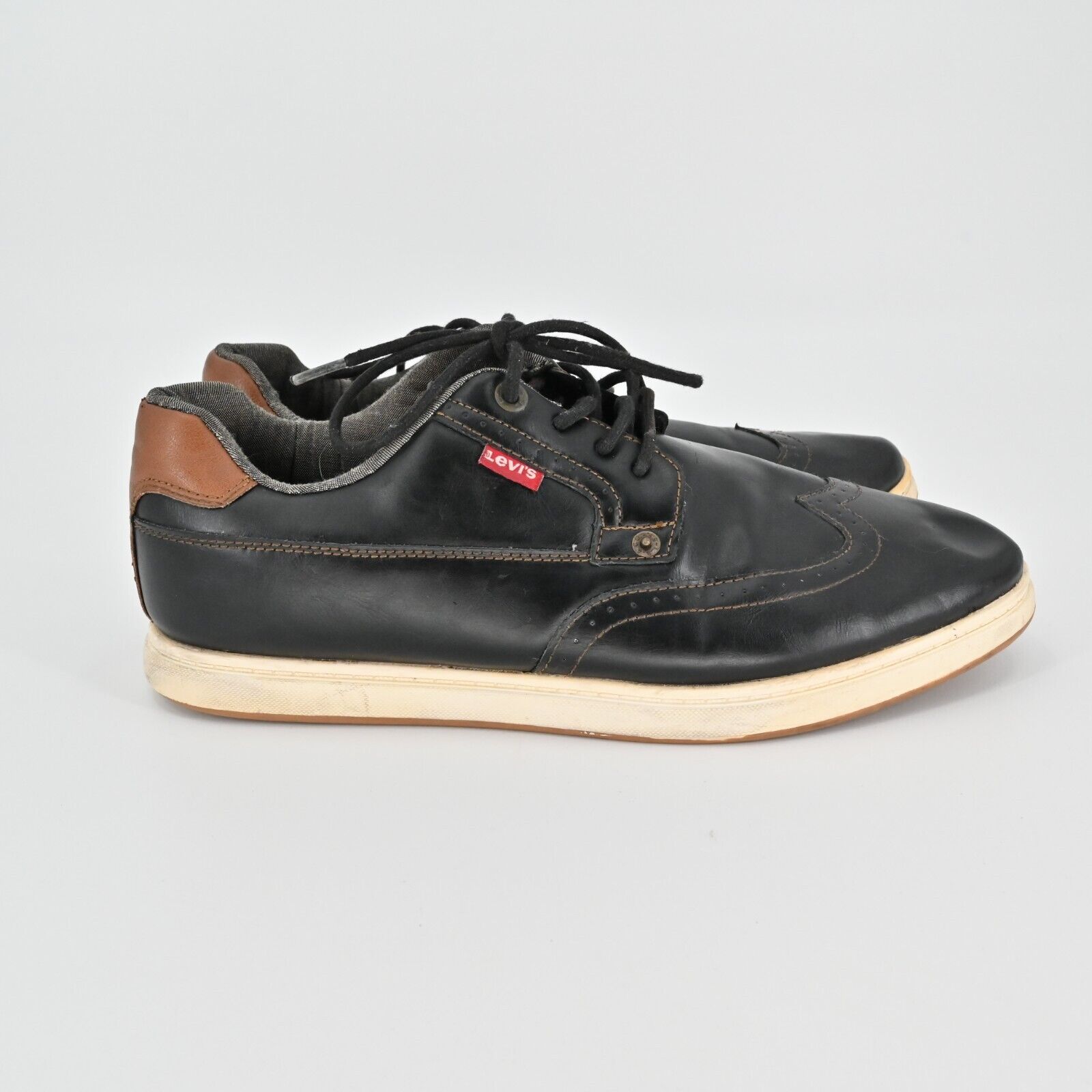 LEVI'S Men's Casual Sneakers Black Faux Leather Lace Up Wingtip Oxford Size 13