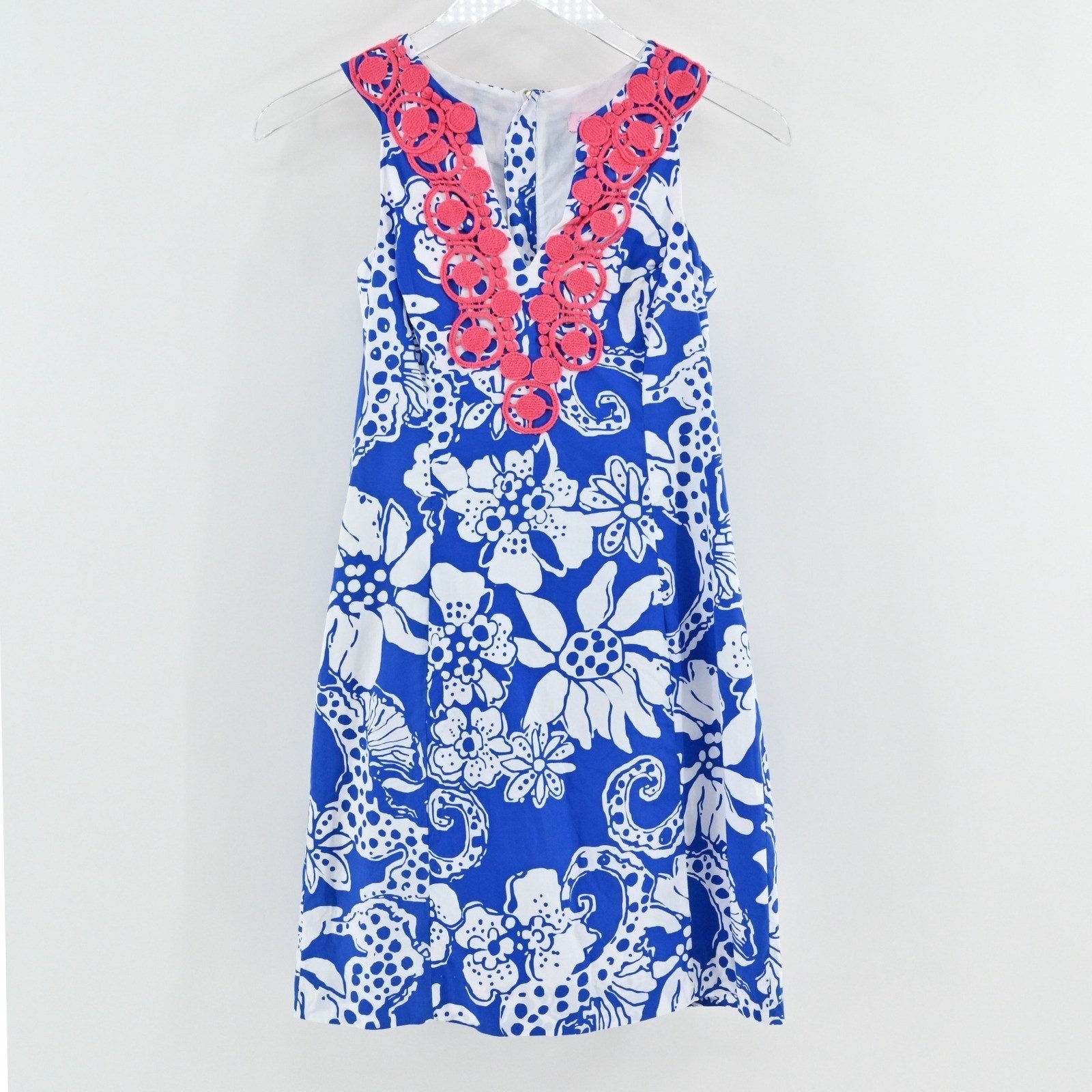 Lilly Pulitzer Augusta Cotton Shift Dress Size 00 Blue Quahog Chowdah Seahorse