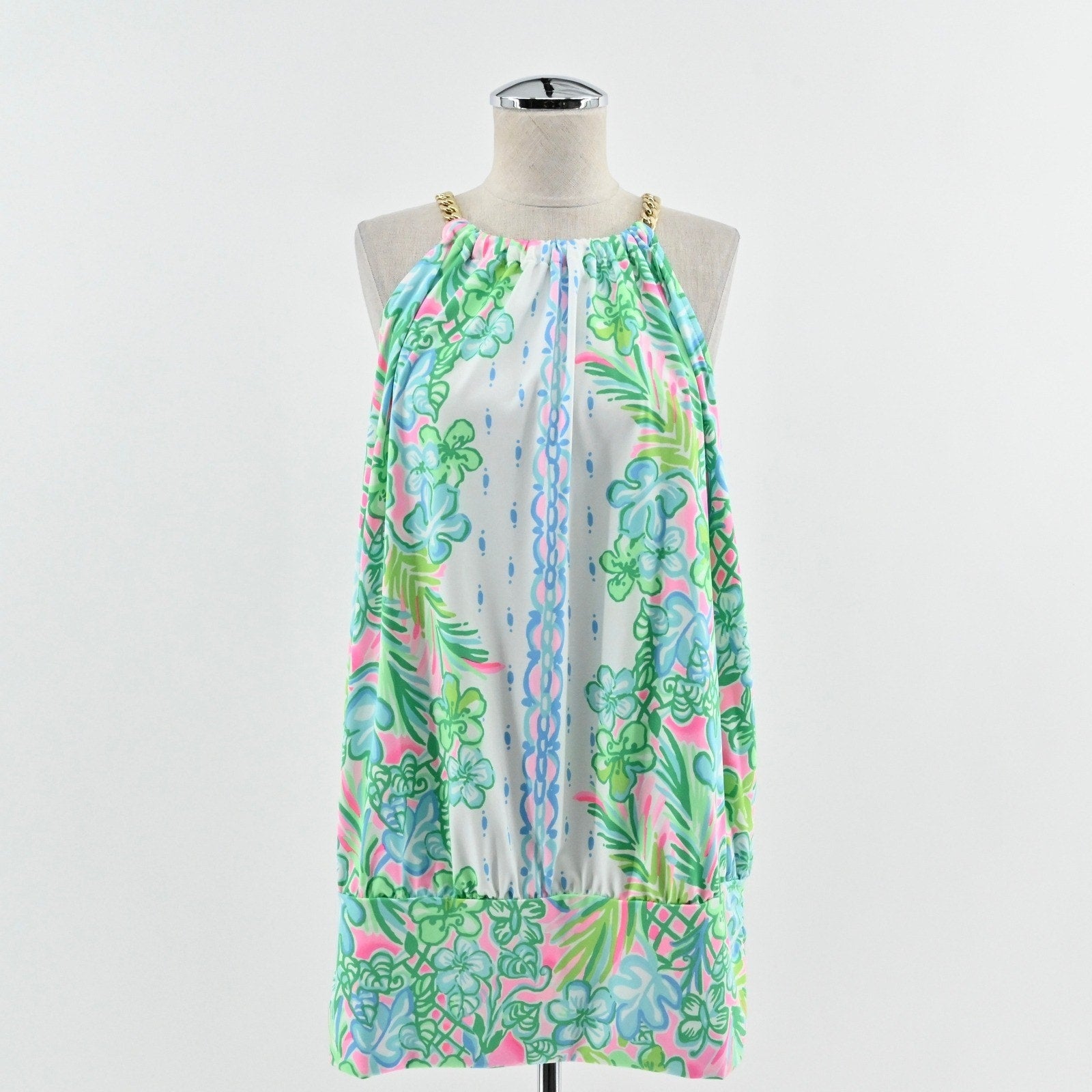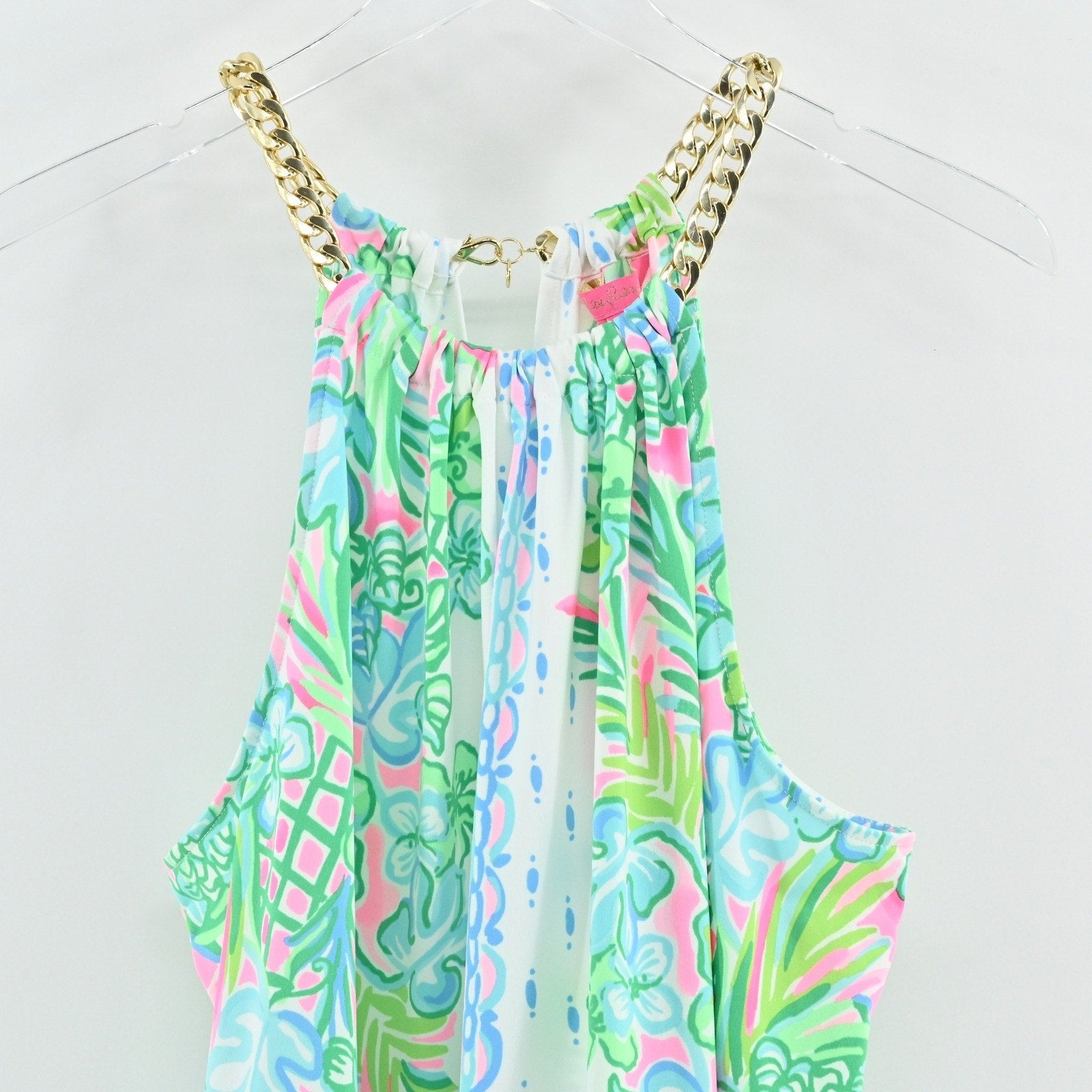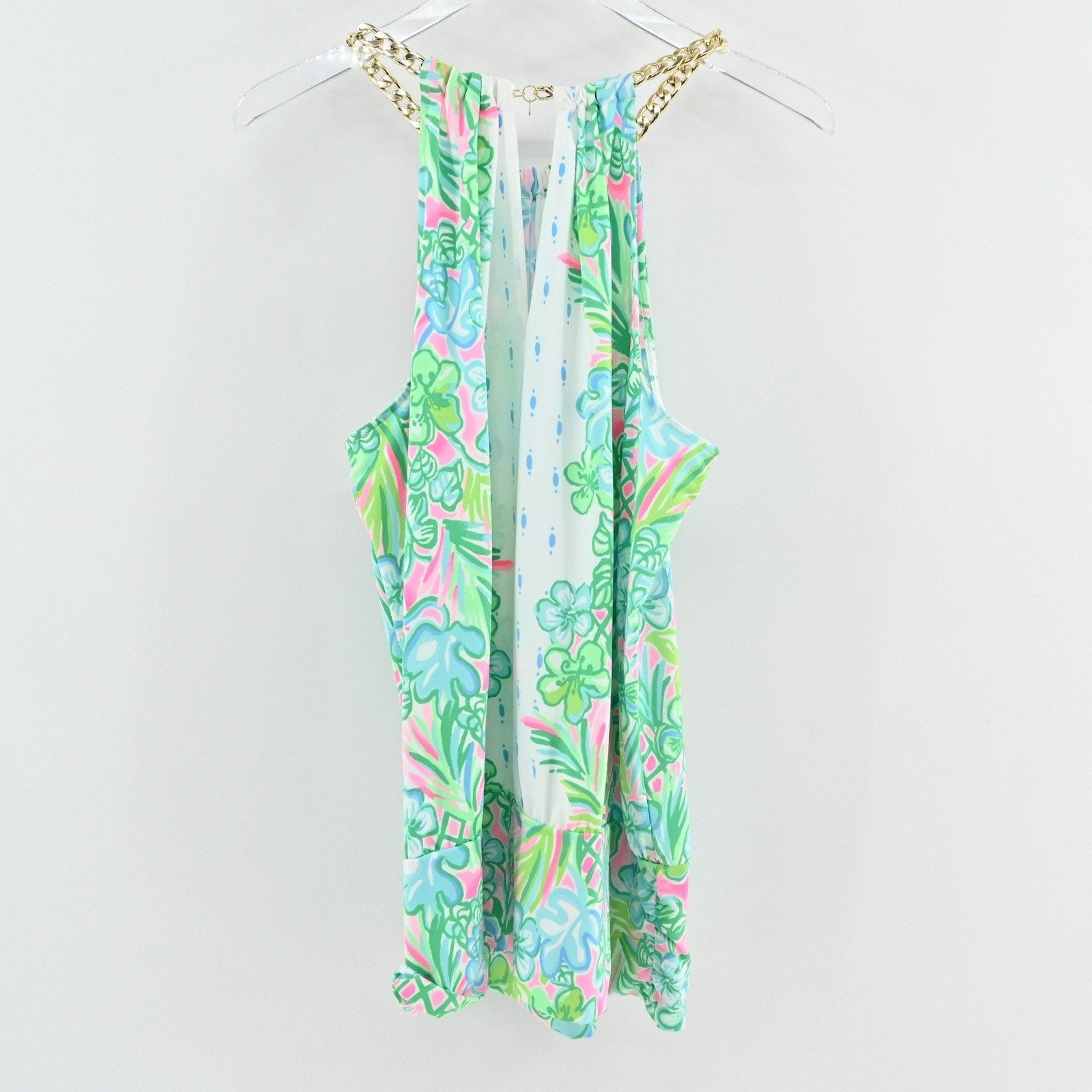Lilly Pulitzer Bowen Top Size XL Coconut Row Engineered Knit Halter Chain Strap