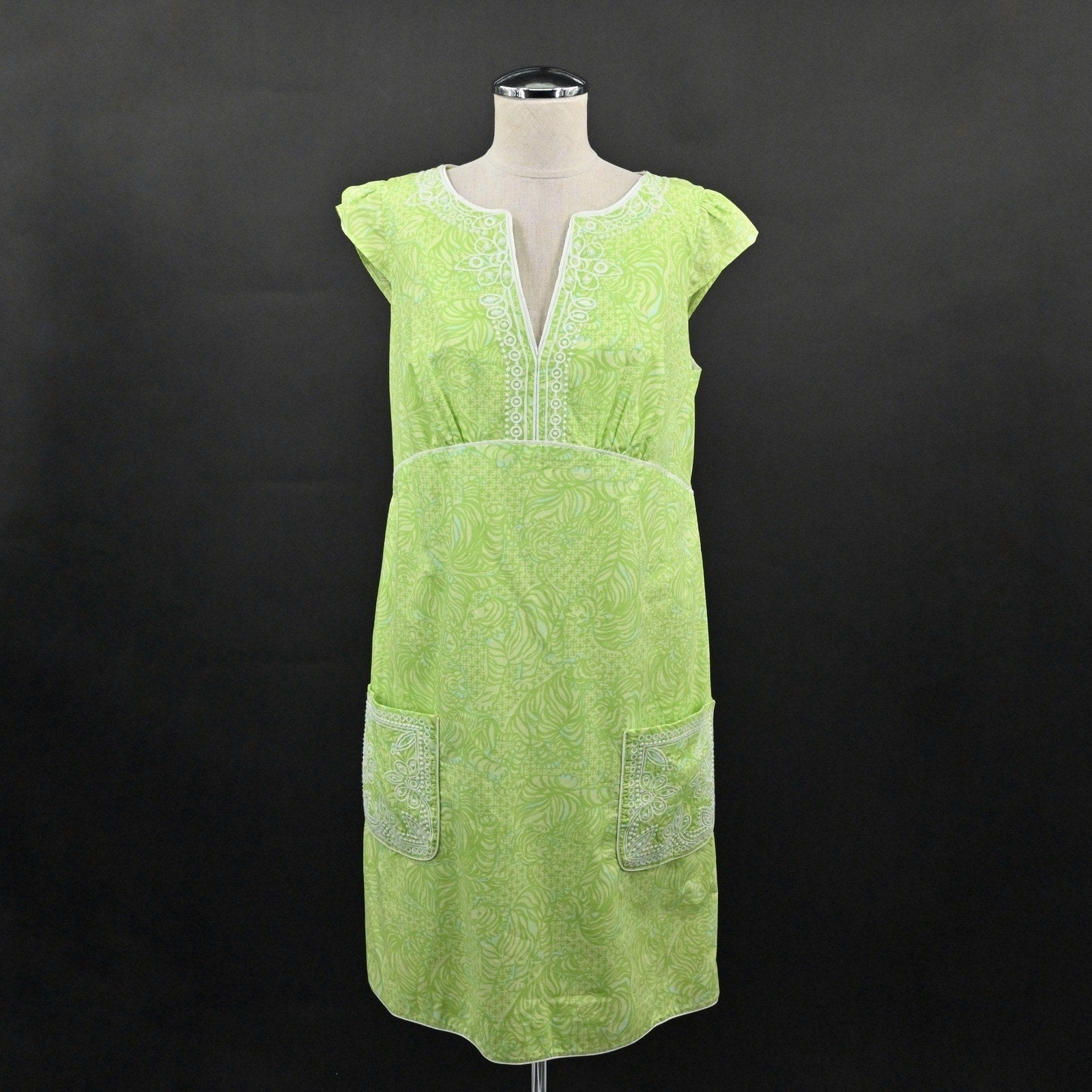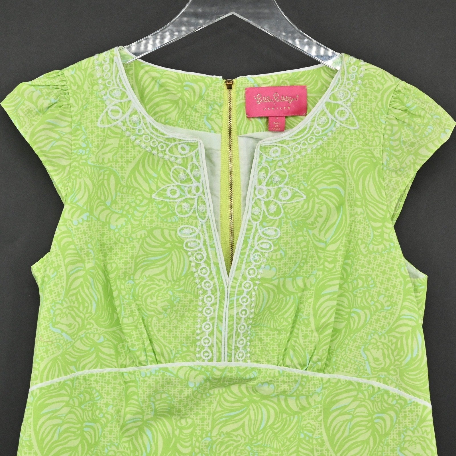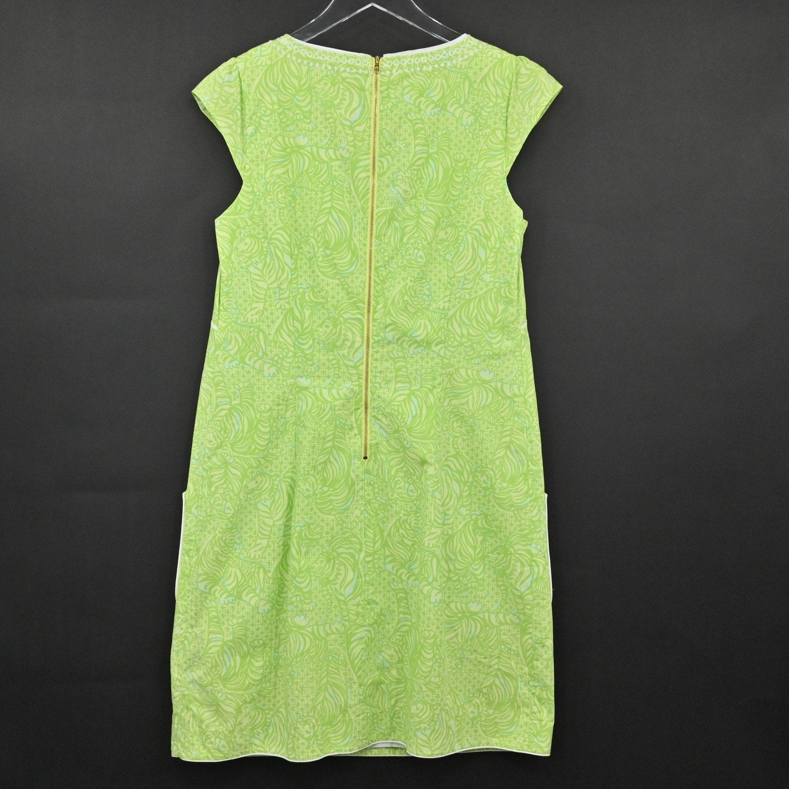 Lilly Pulitzer Jubilee Tori Poplin Shift Dress Size 8 Green Caged Tiger Cotton