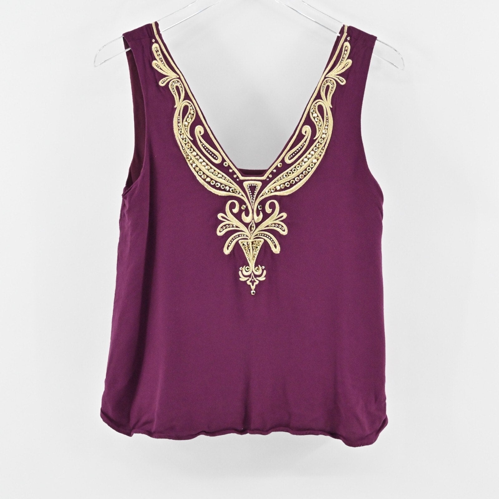 LILLY PULITZER Owen Shiraz Top Womens Size S Sleeveless VNeck Embroidered Blouse