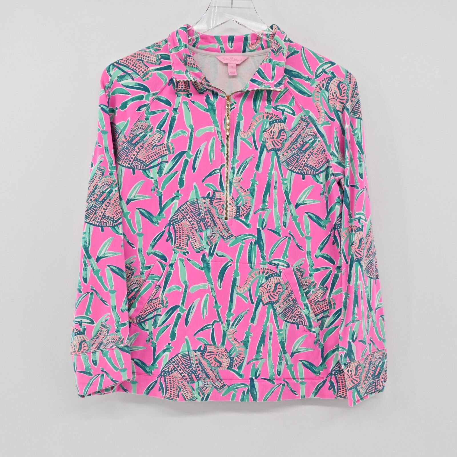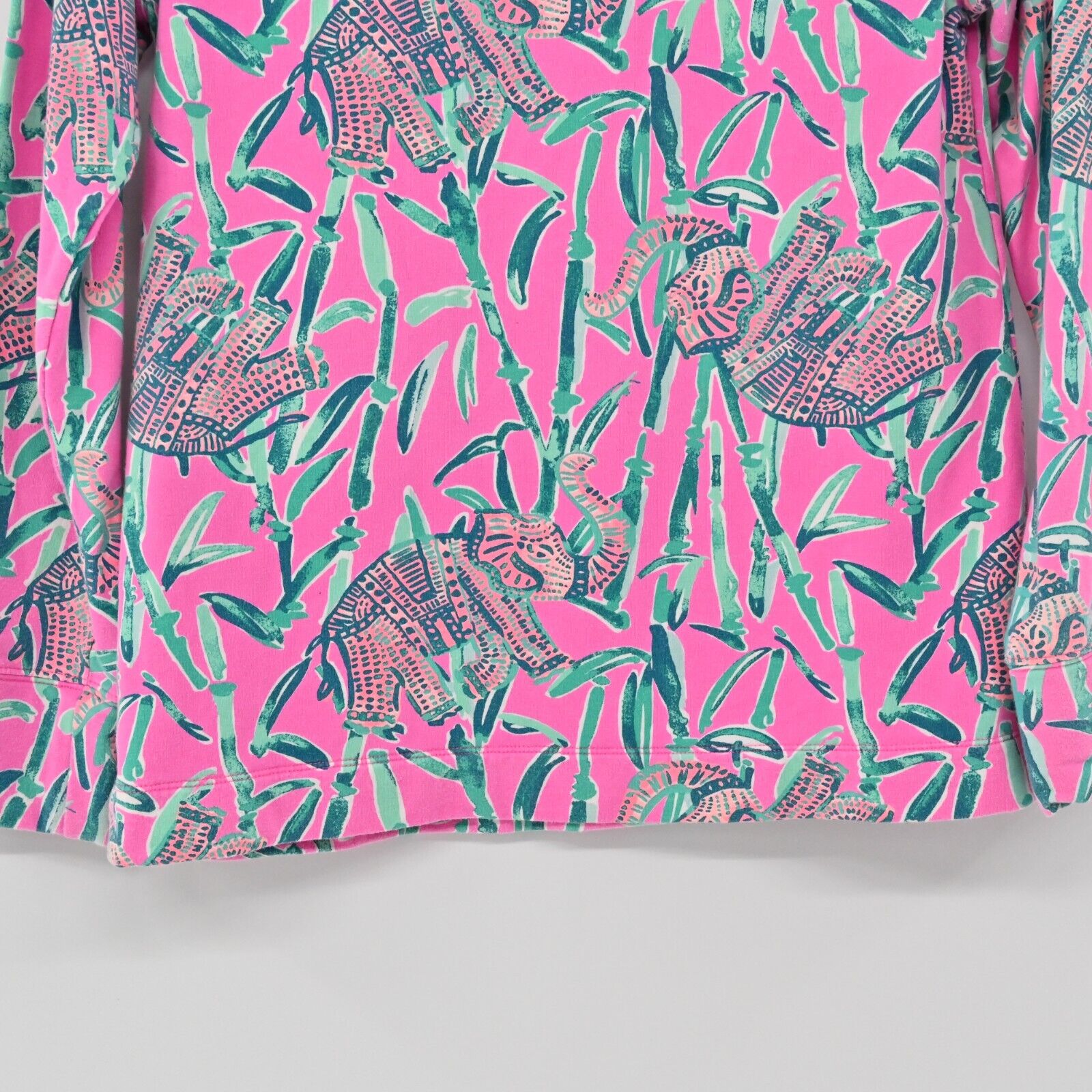 LILLY PULITZER Pullover Women's Size Small Skipper Popover Quarter Zip Extra Lucky Mandevilla Pink Elephant Bamboo Print Multicolor Colorful Preppy Coastal Vacation Travel Spring Summer Fall Chic Coastal Bright Statement UPF 50+ Sun Protection Outdoor Resort