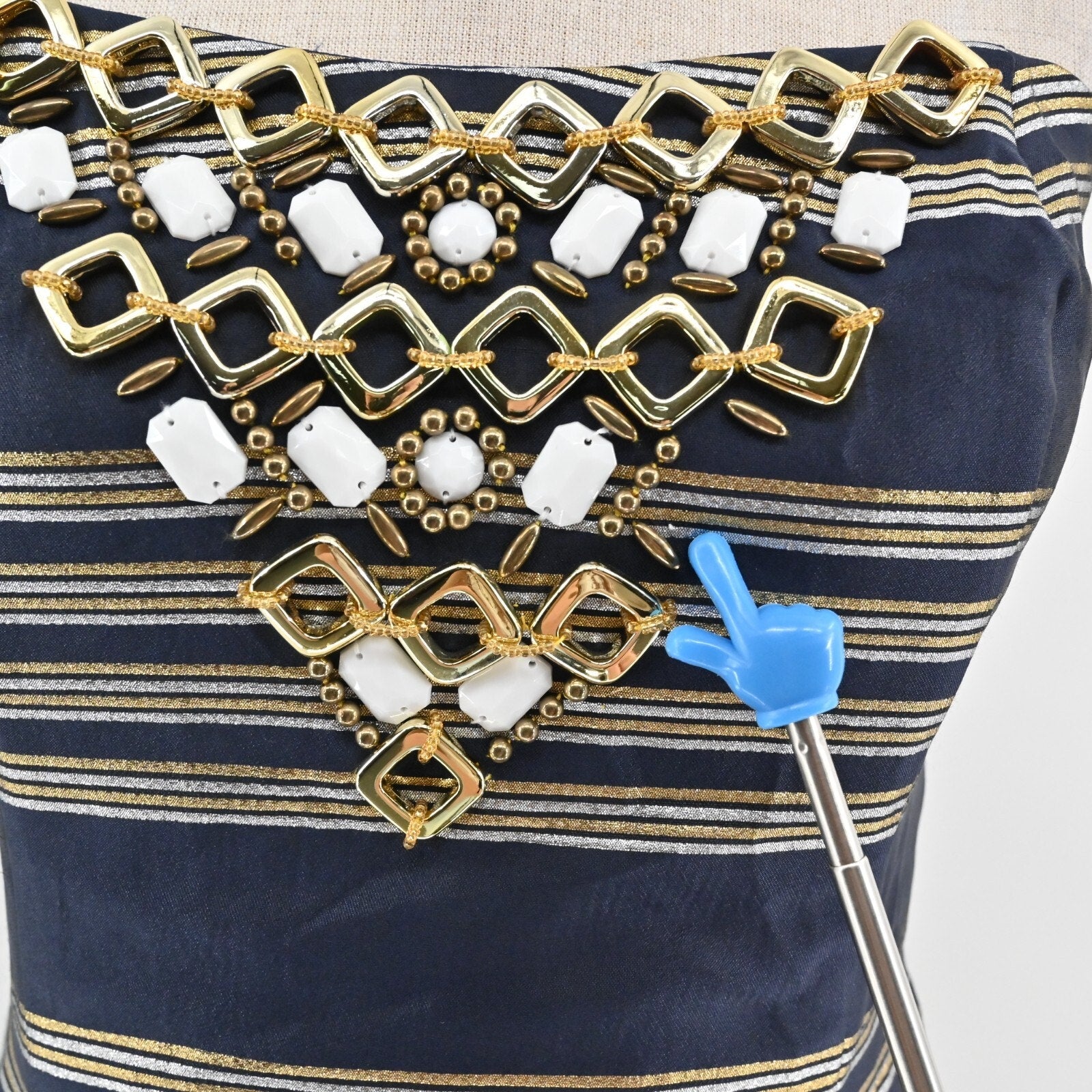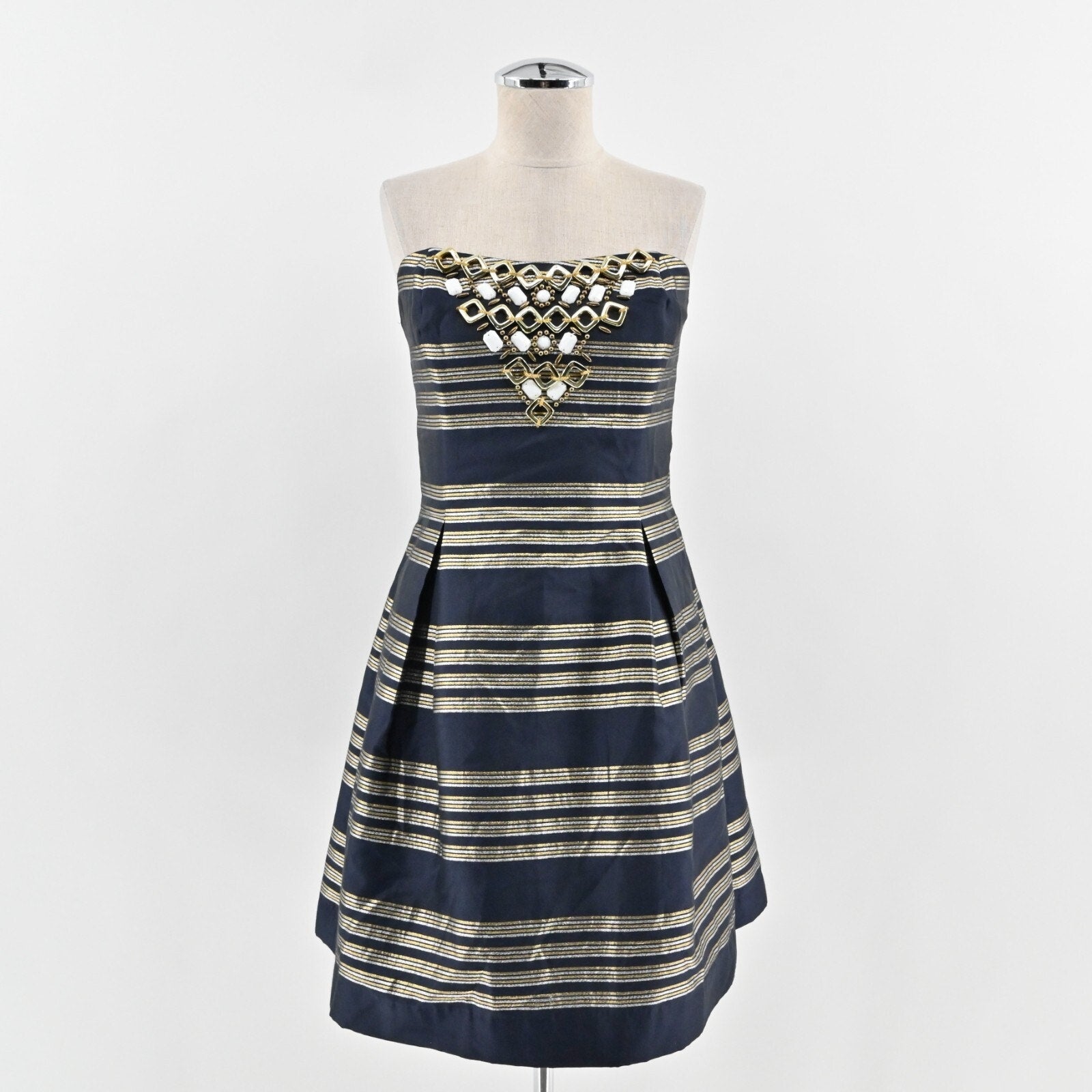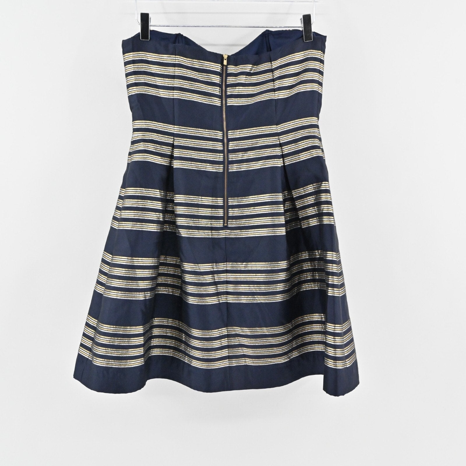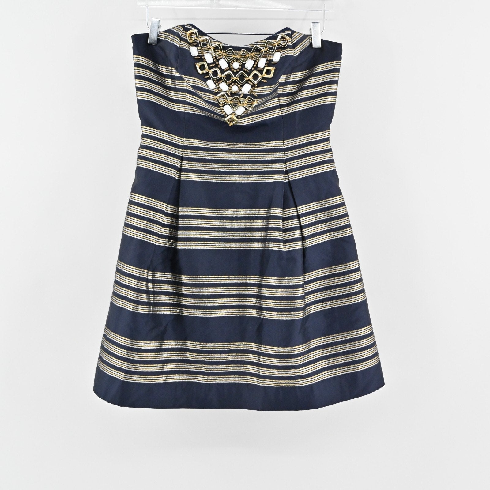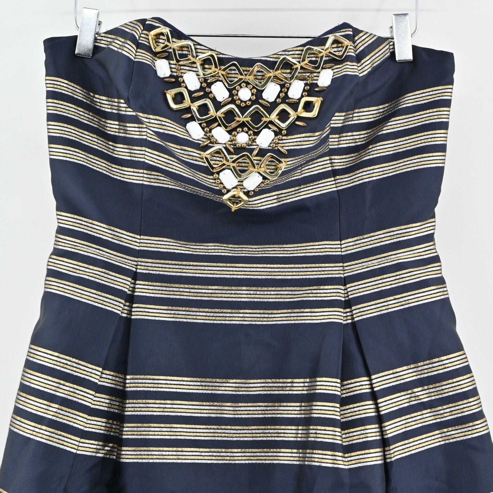LILLY PULITZER Sami Dress Sz 10 Ryan Navy Metallic Stripe Embellished Strapless