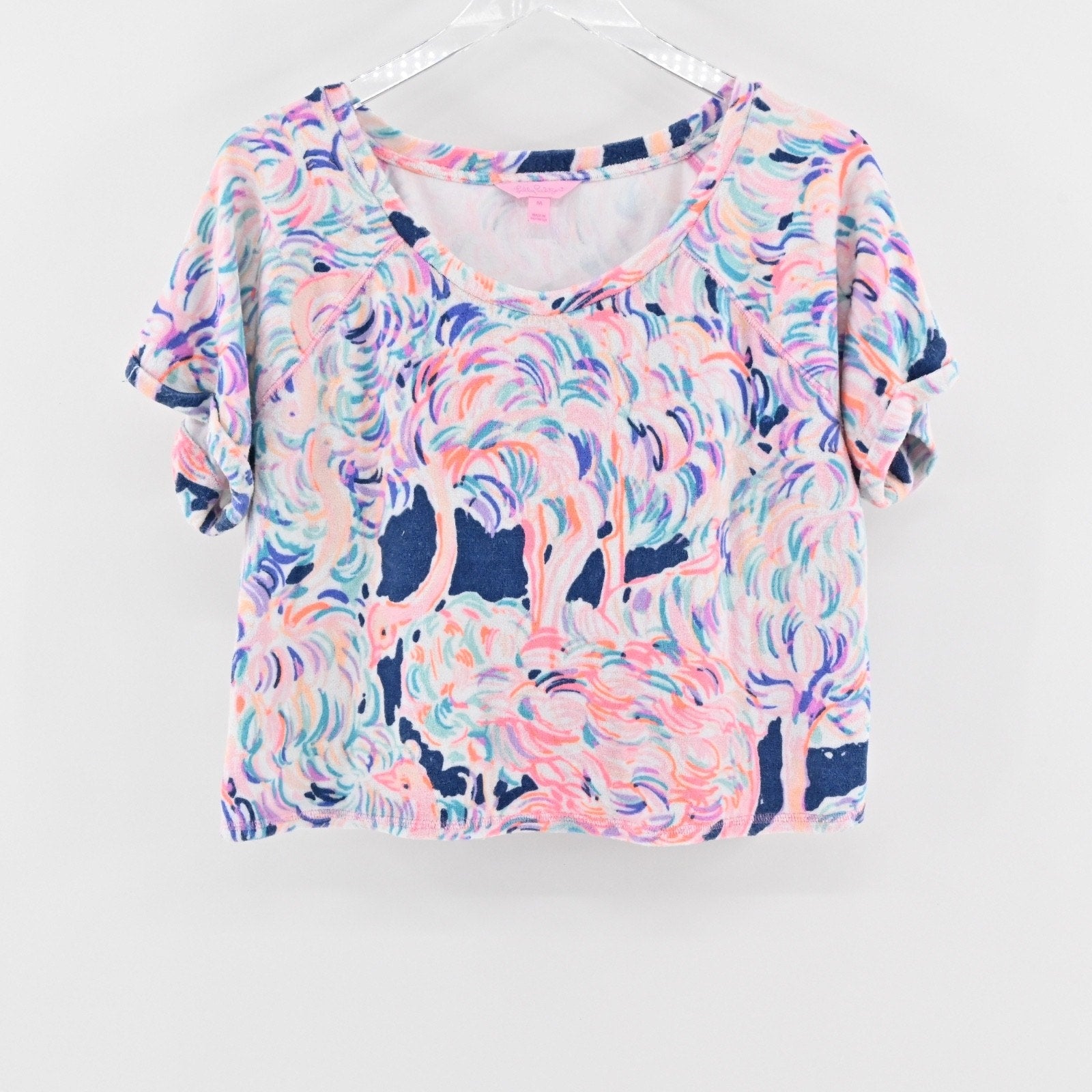 LILLY PULITZER Womens Dossie Terry Set Size M Navy Pelican Pink Head In The Sand