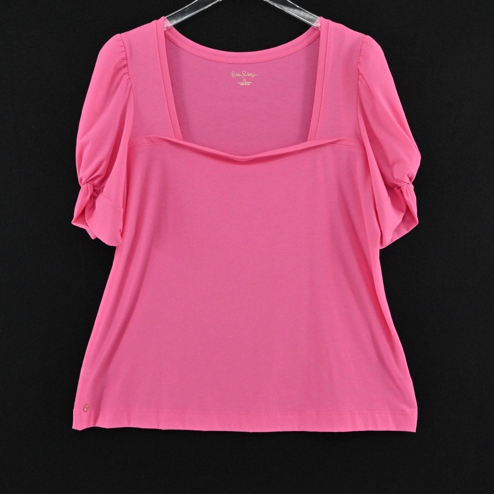 Lilly Pulitzer Womens Jessie Top Size XL Cockatoo Pink Square Neck Short Sleeve