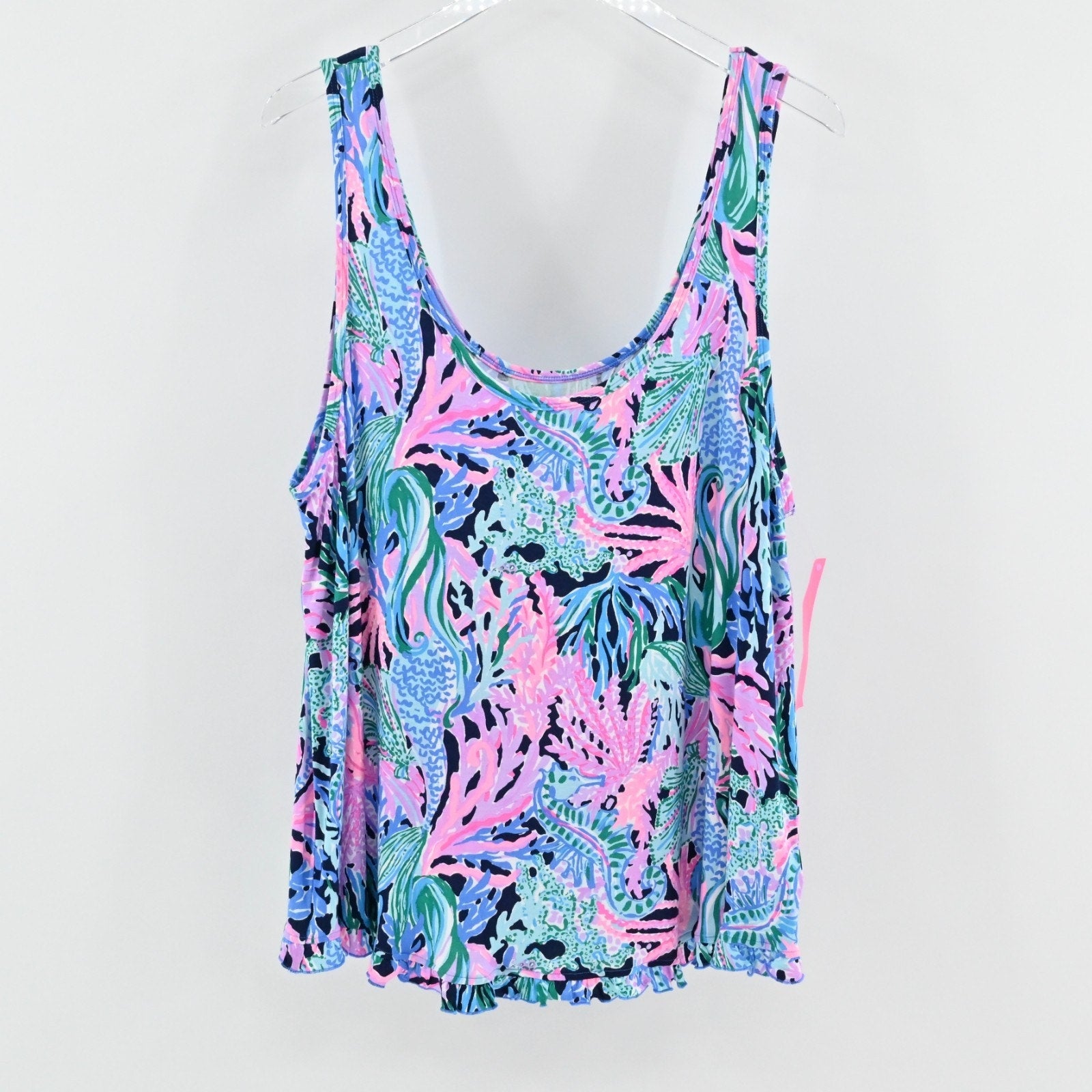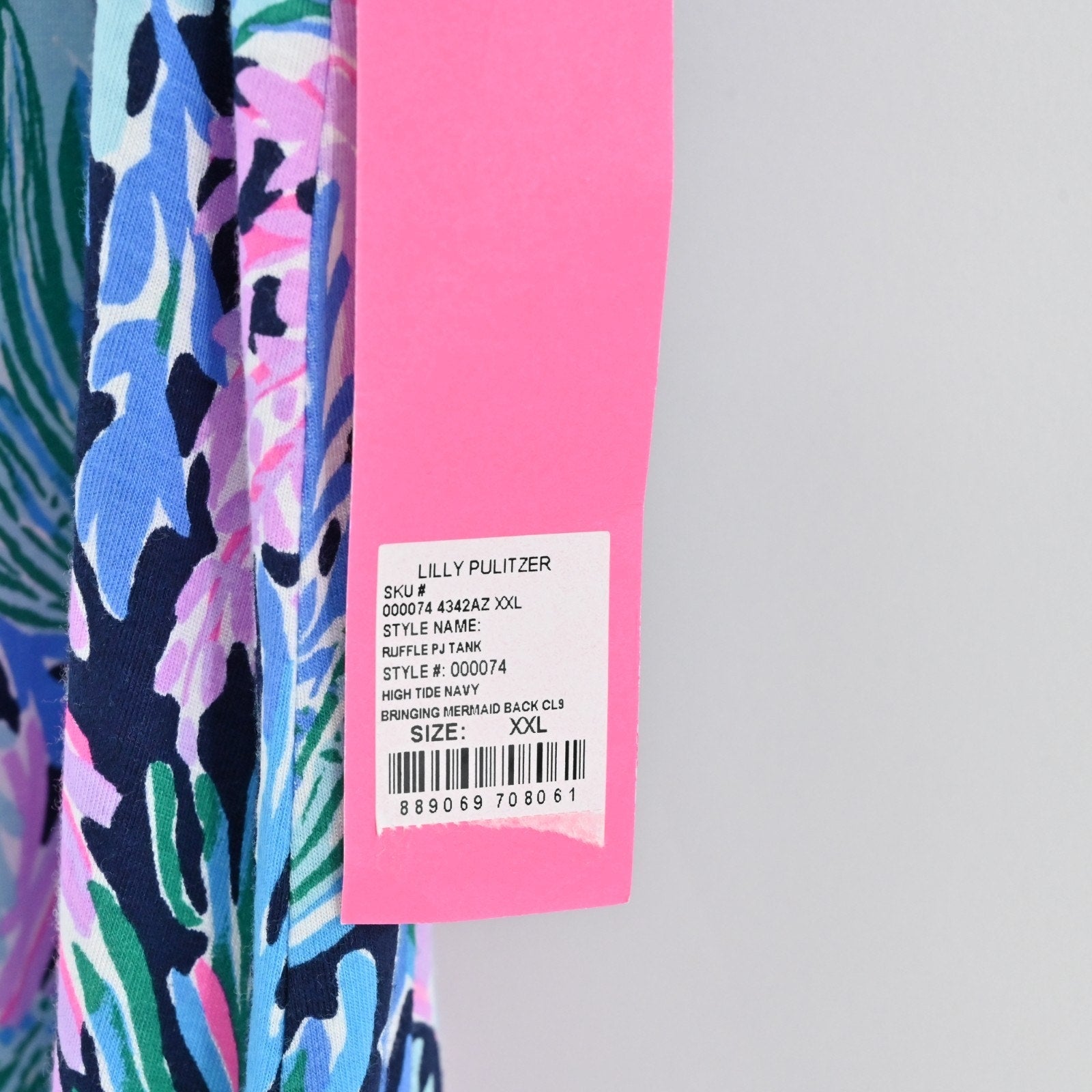 Lilly Pulitzer Womens Ruffle PJ Tank Size XXL High Tide Navy Bringing Mermaid