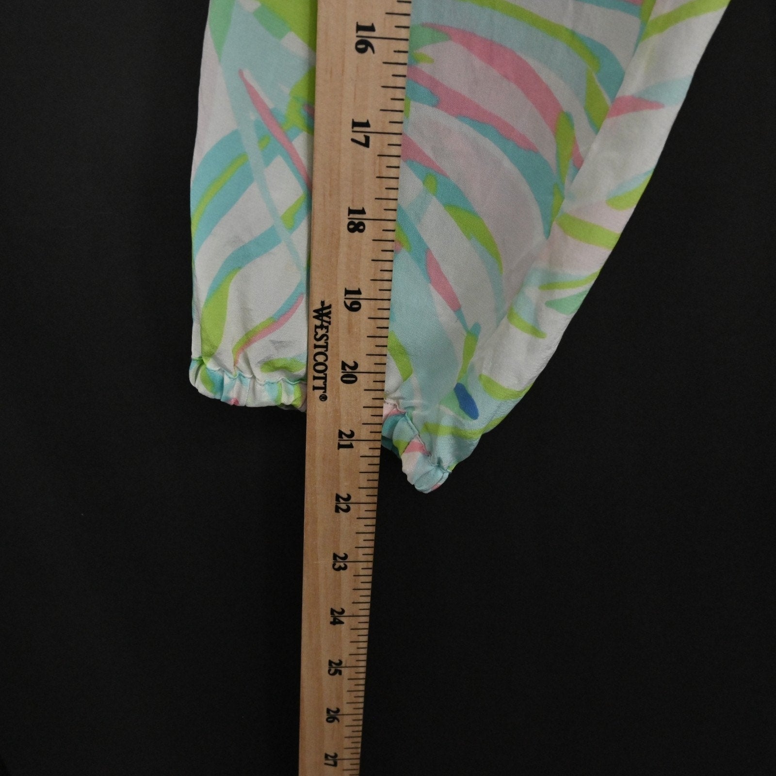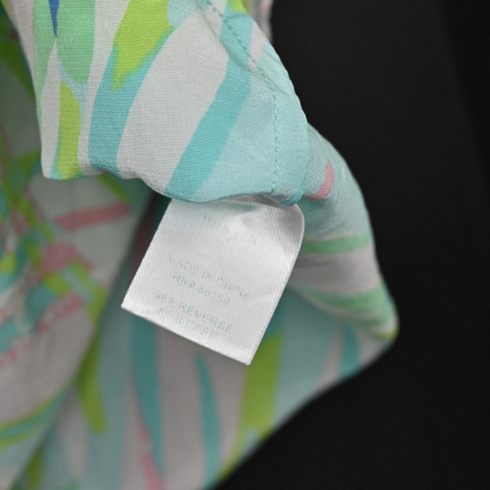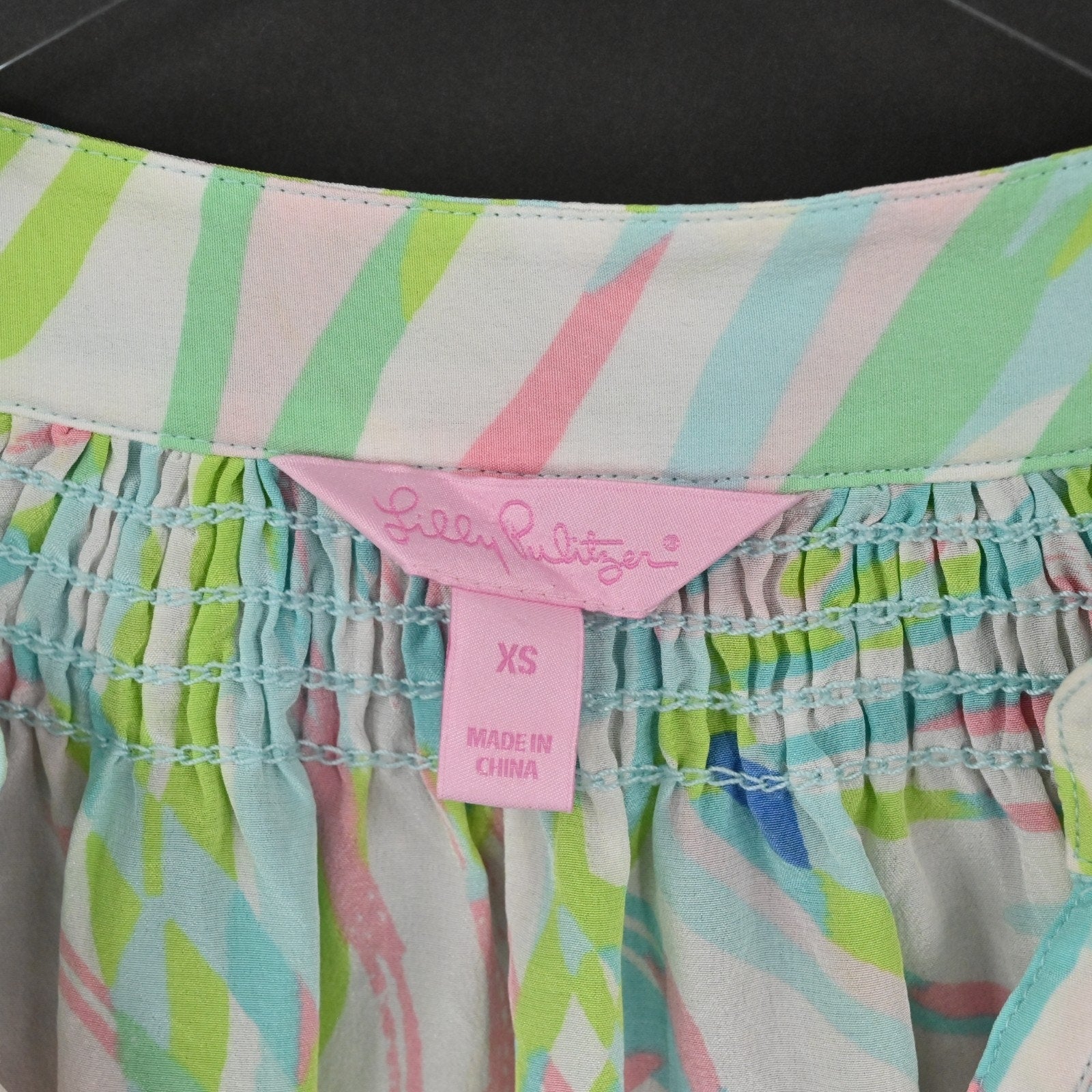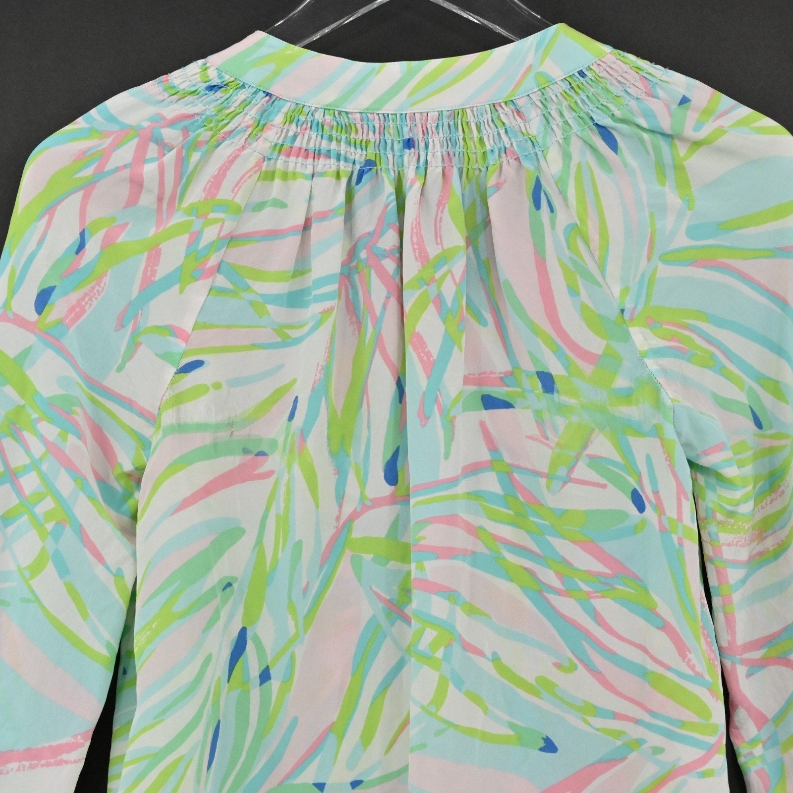 Lilly Pulitzer Womens Silk Elsa Top Size XS Blouse Skye Blue Salute Print Preppy