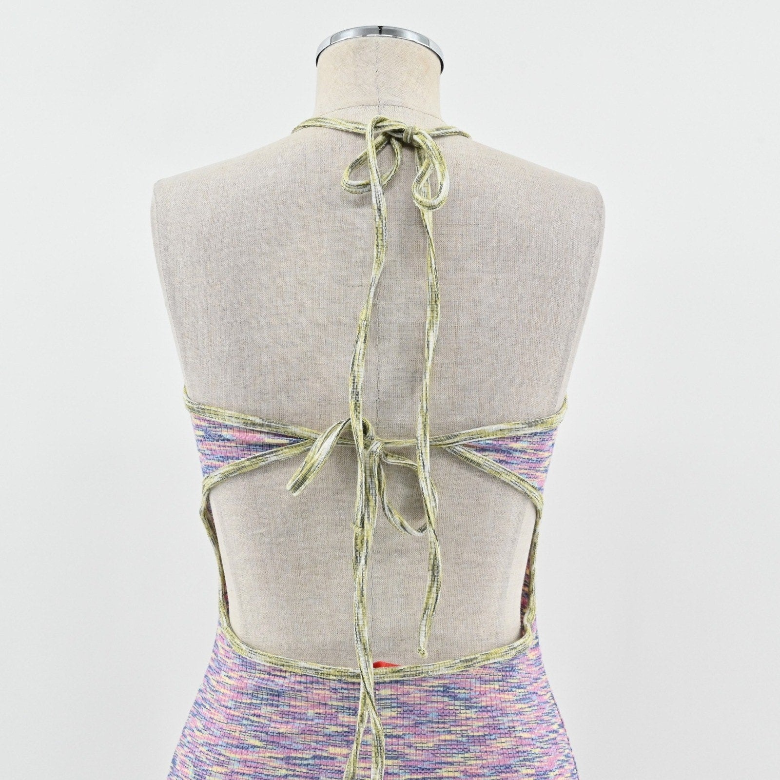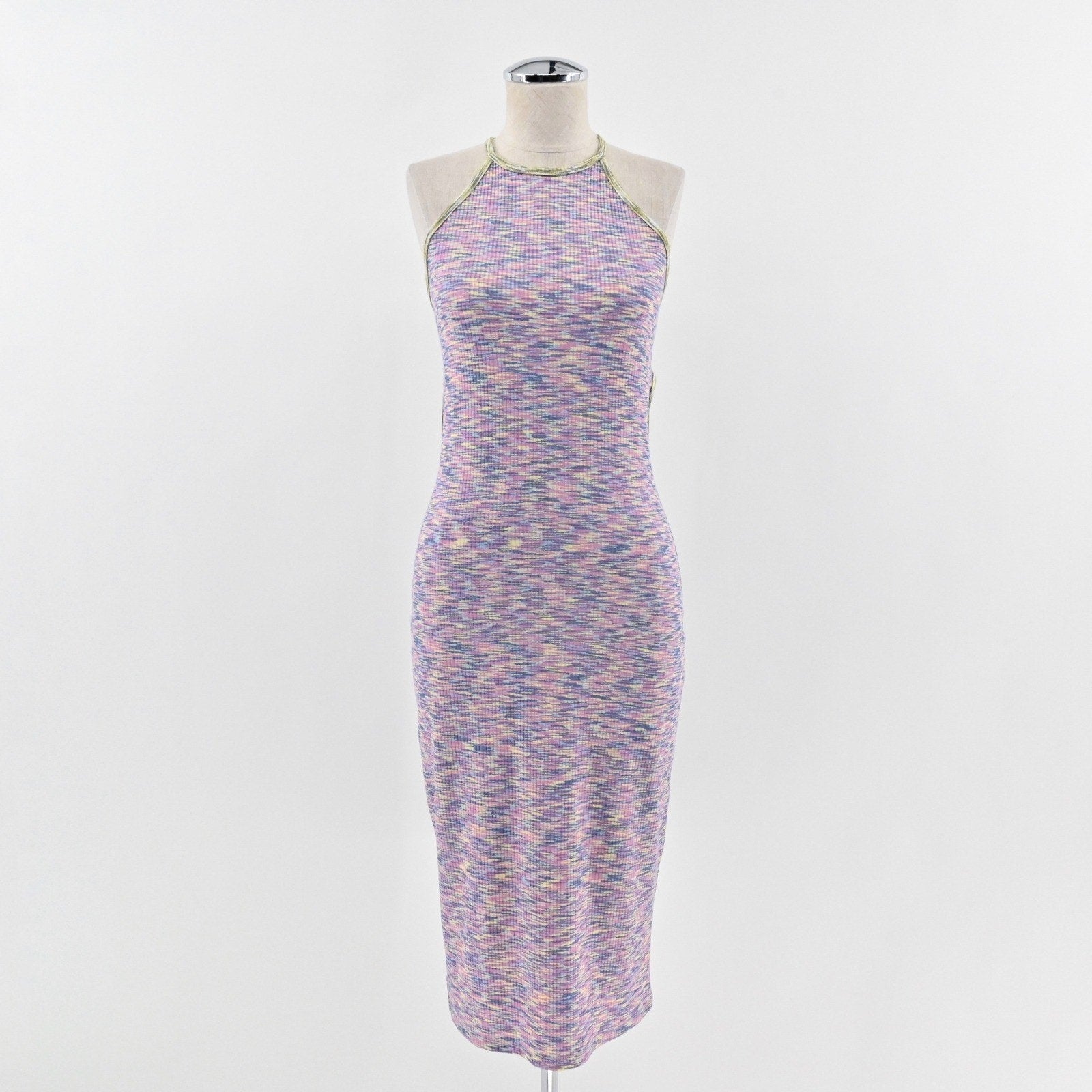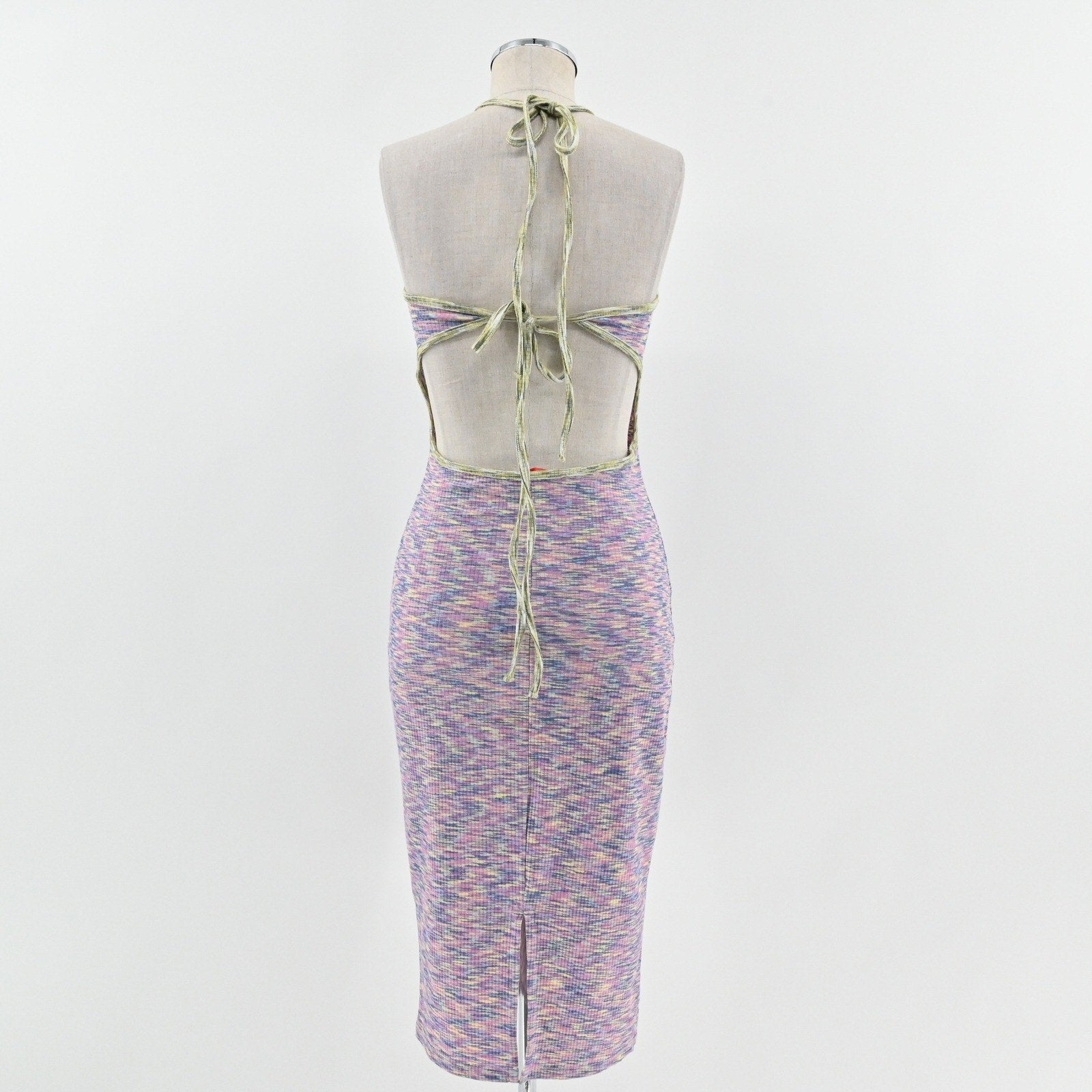 Lisa Says Gah Julia Halter Midi Dress Size S Tie Back Bodycon Ribbed Multicolor