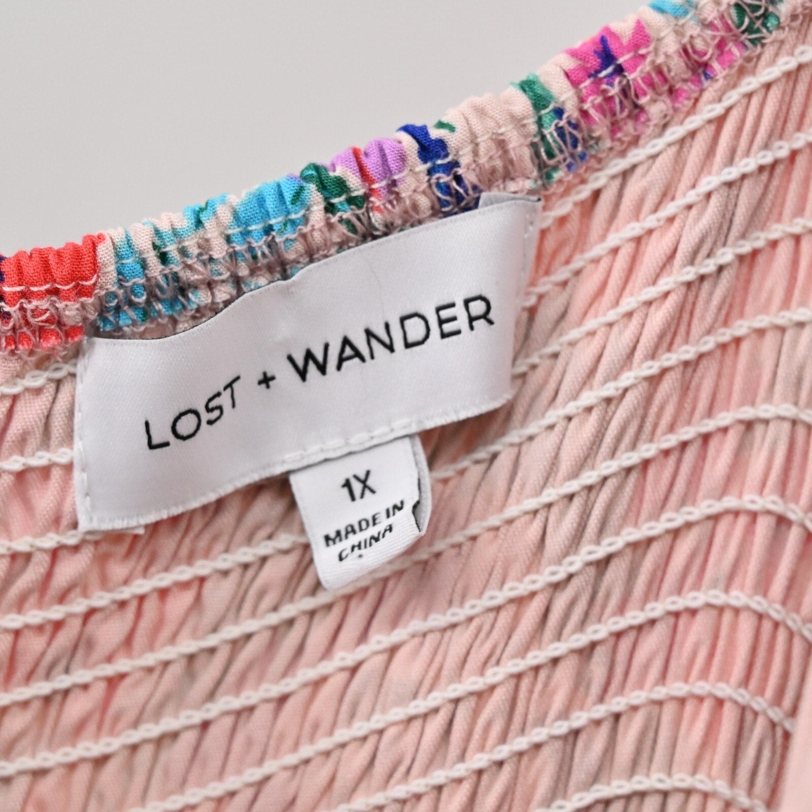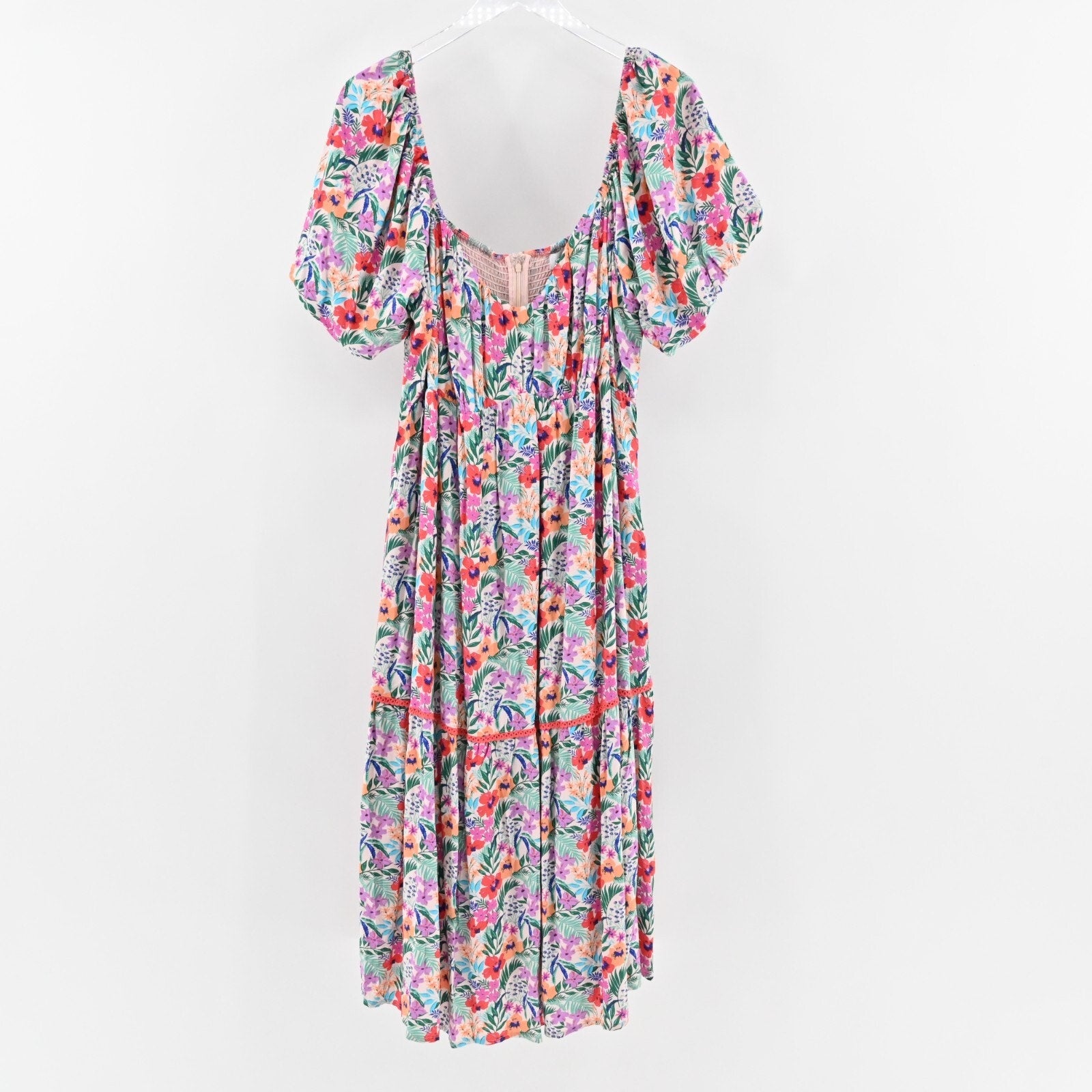 LOST WANDER Dress Size 1X Multicolor Floral Print Puff Sleeve Sweetheart Midi