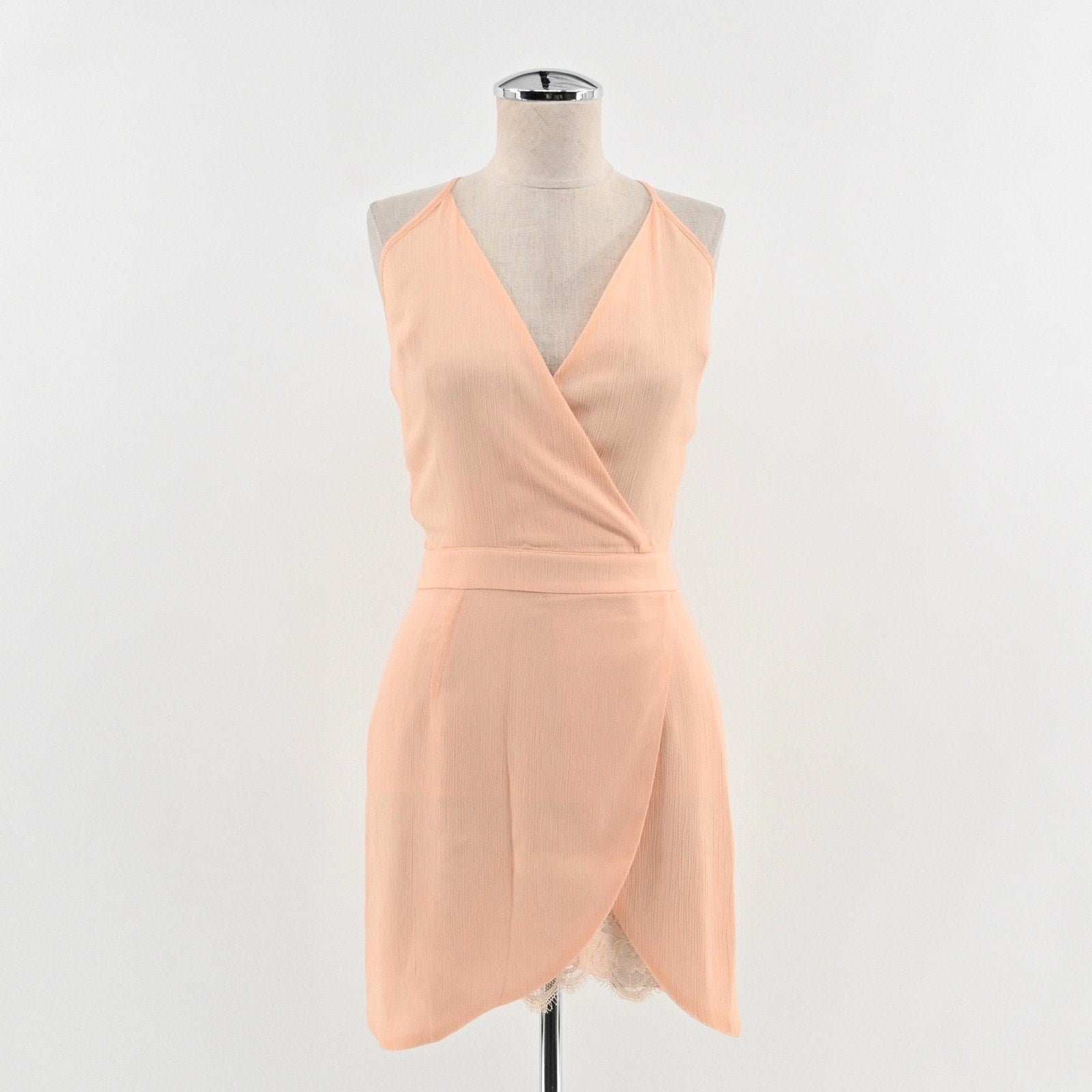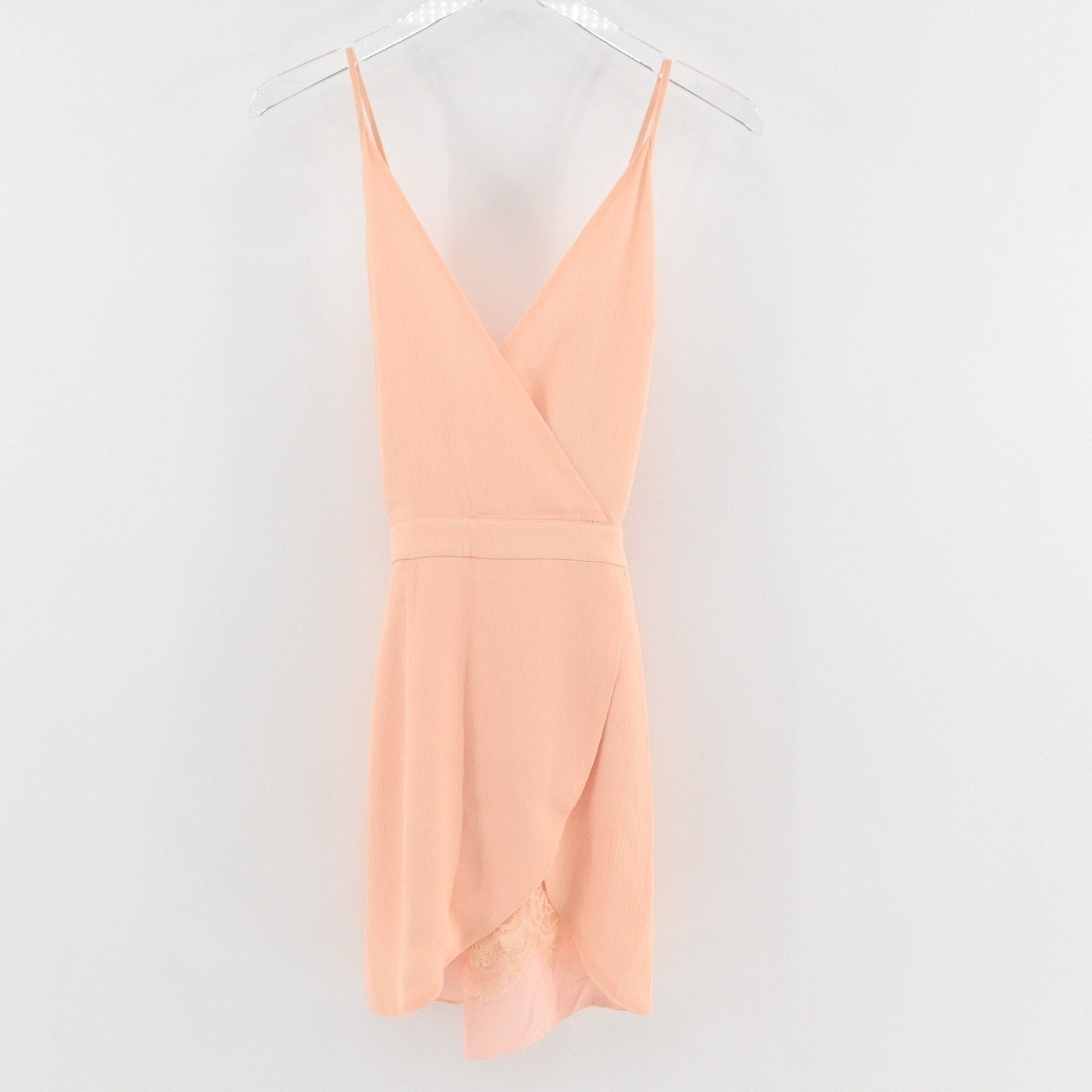 Lovers Friends Soulmate Faux Wrap Mini Dress Size XS Peach Lace Ethereal Revolve