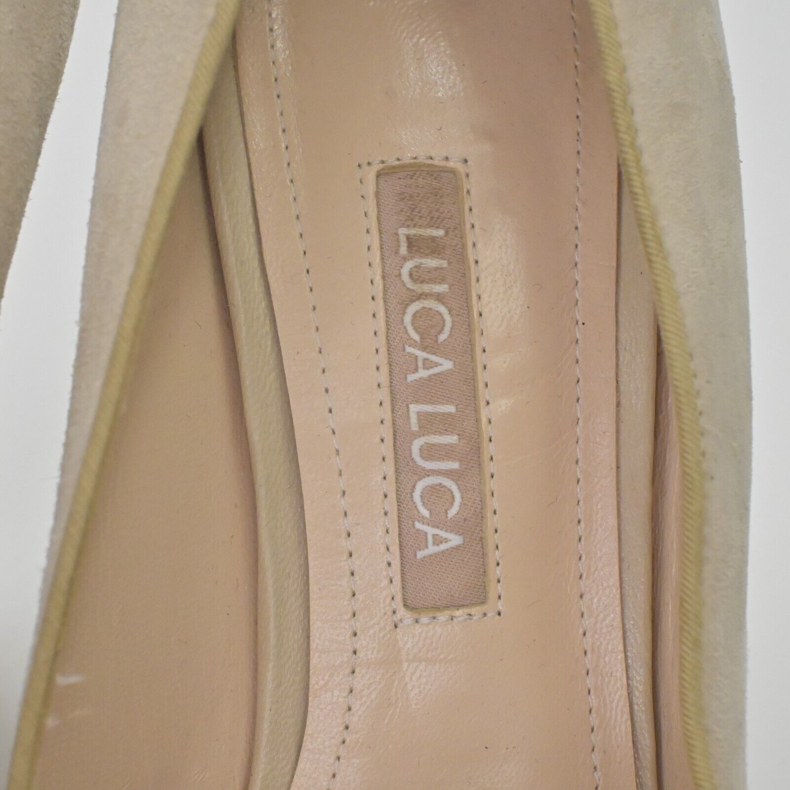 LUCA LUCA Pumps Womens Size 40 Beige Suede Knotted Peep Toe Platform Block Heel