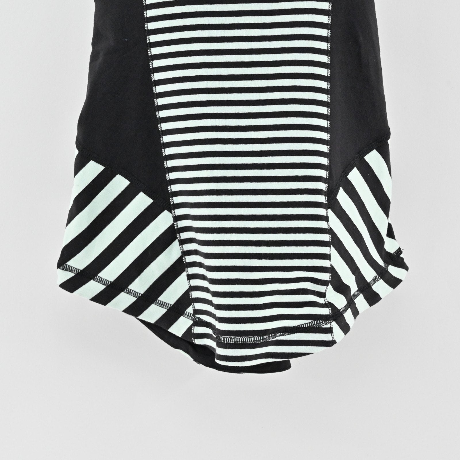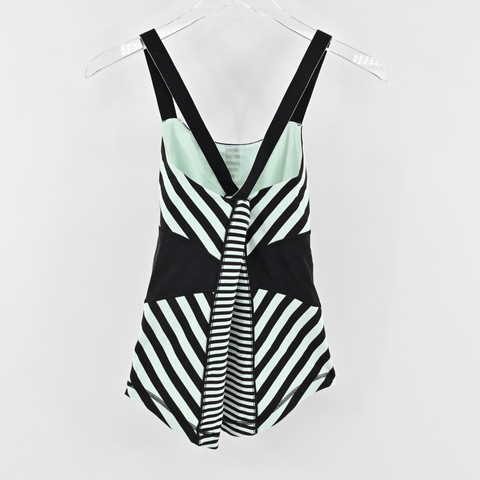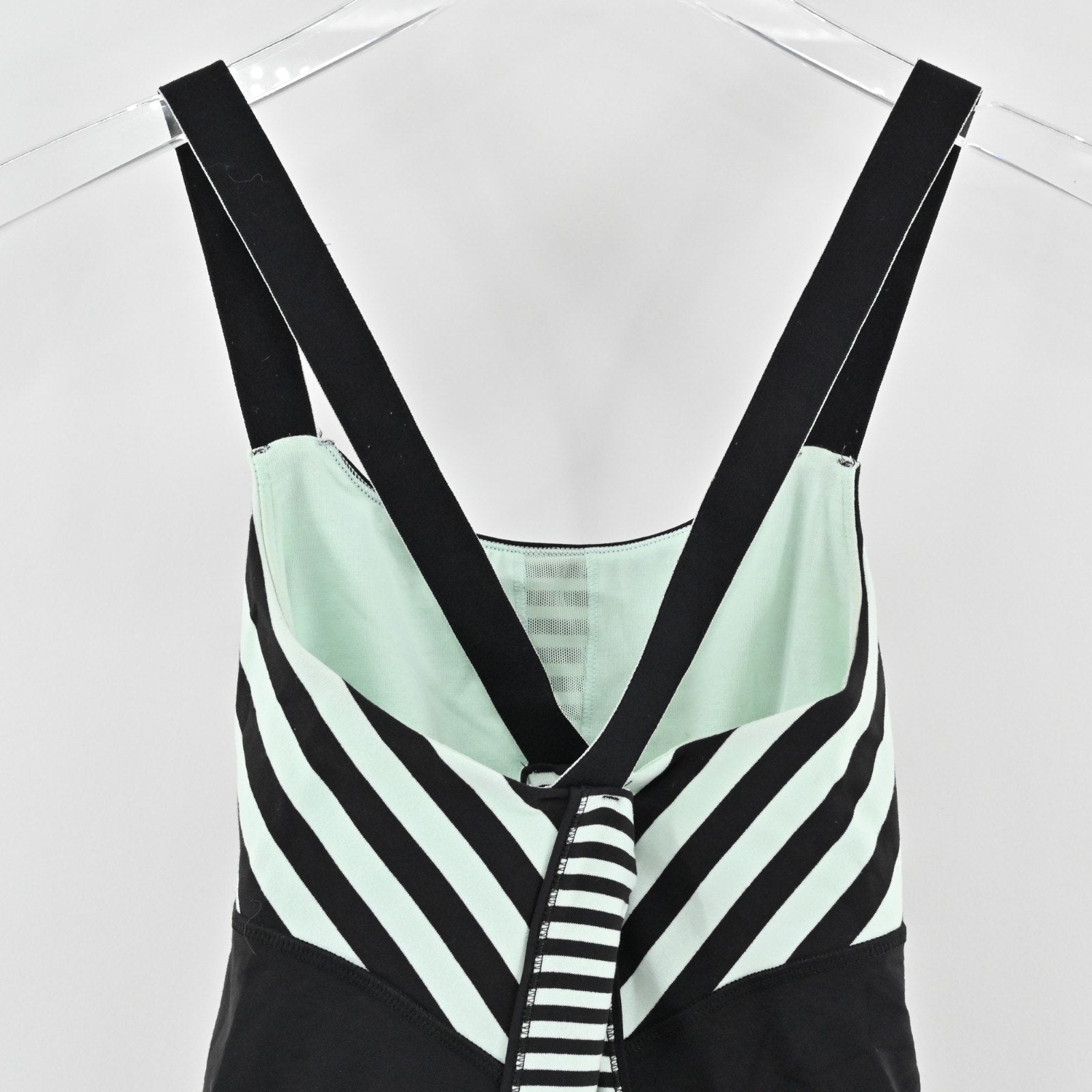 Lululemon Womens Work It Out Tank Top Size 4 Black Mint Green Stripe Logo Active