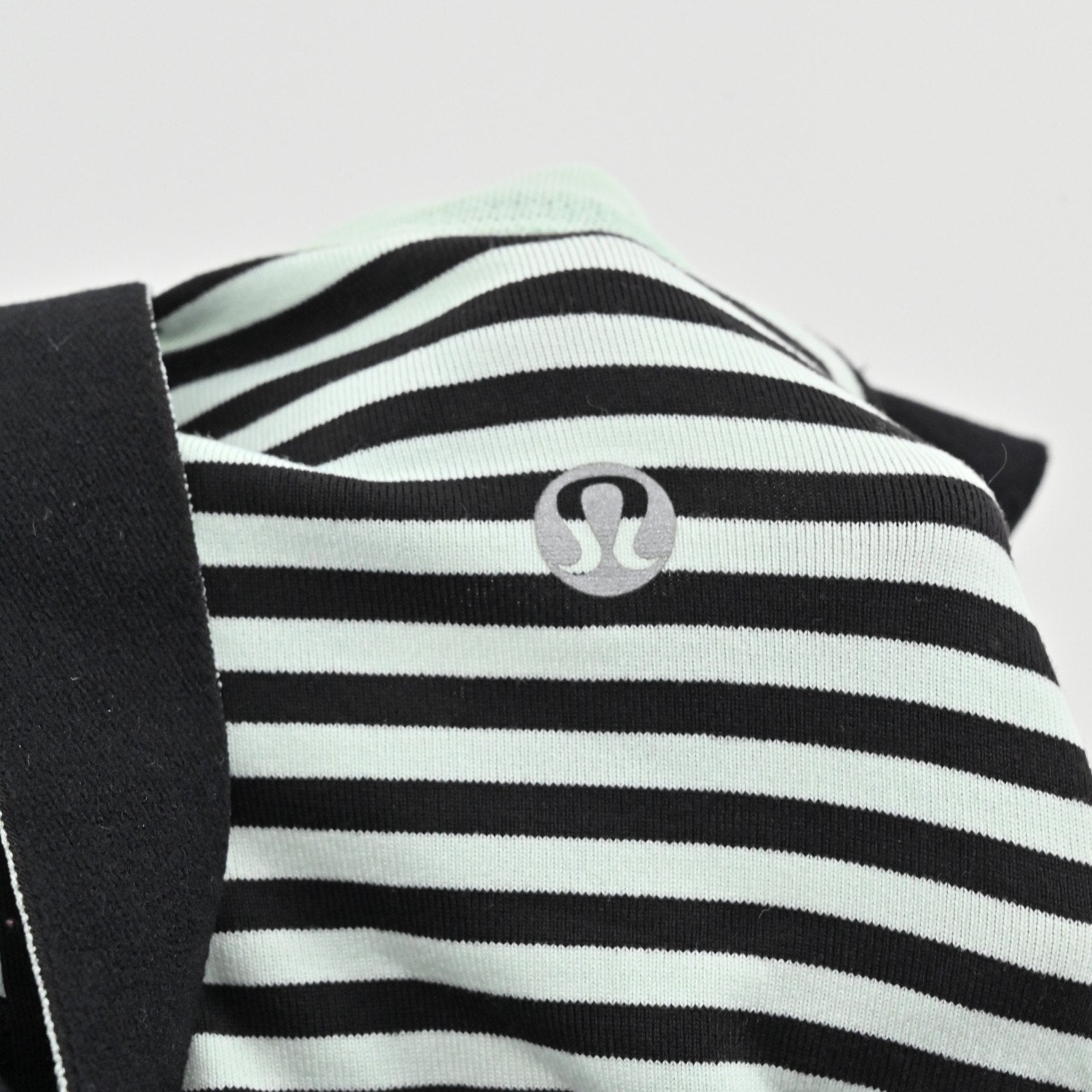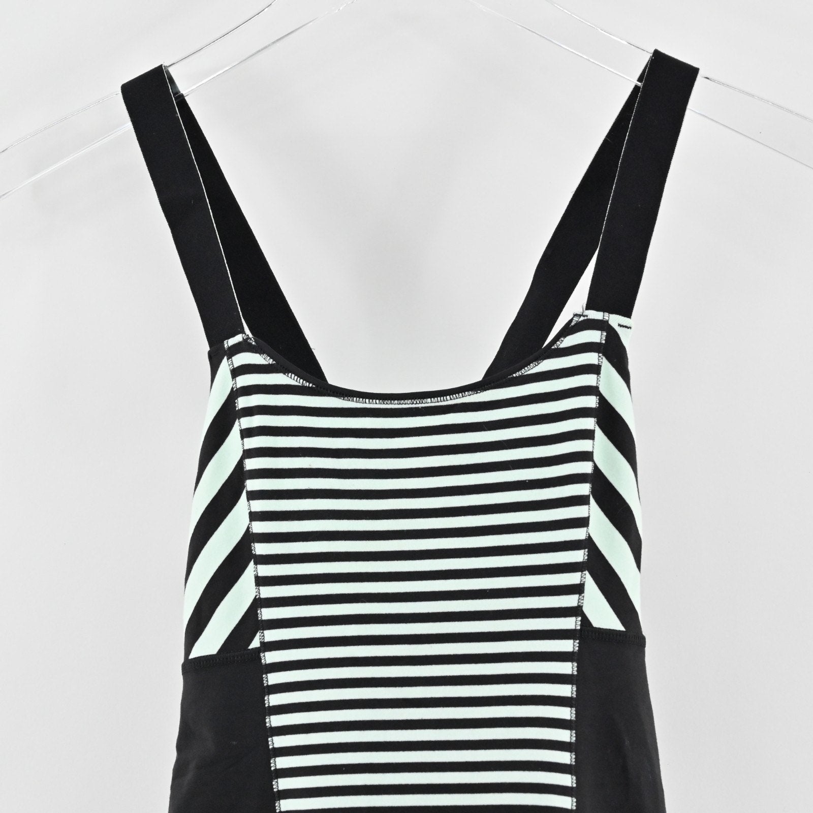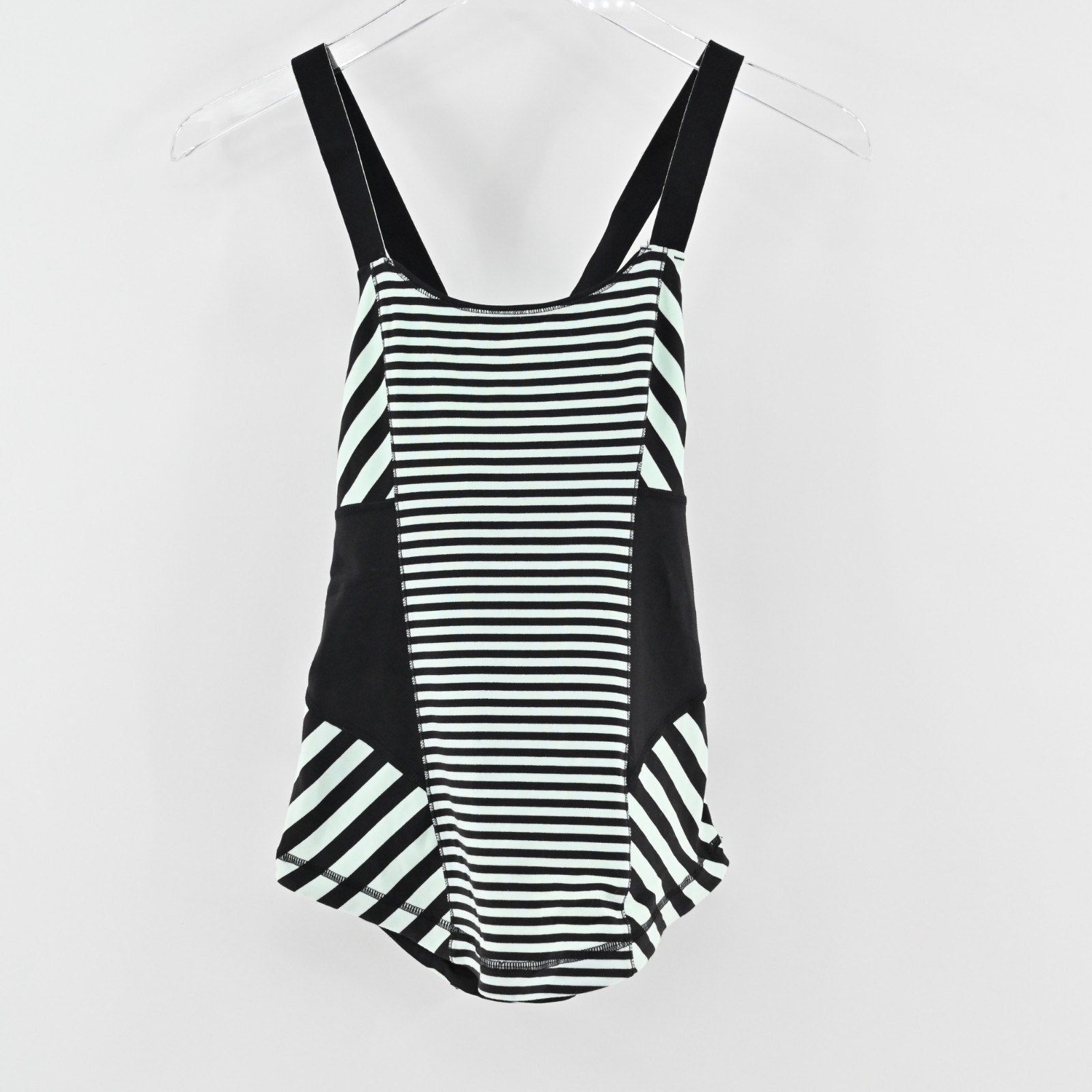 Lululemon Womens Work It Out Tank Top Size 4 Black Mint Green Stripe Logo Active