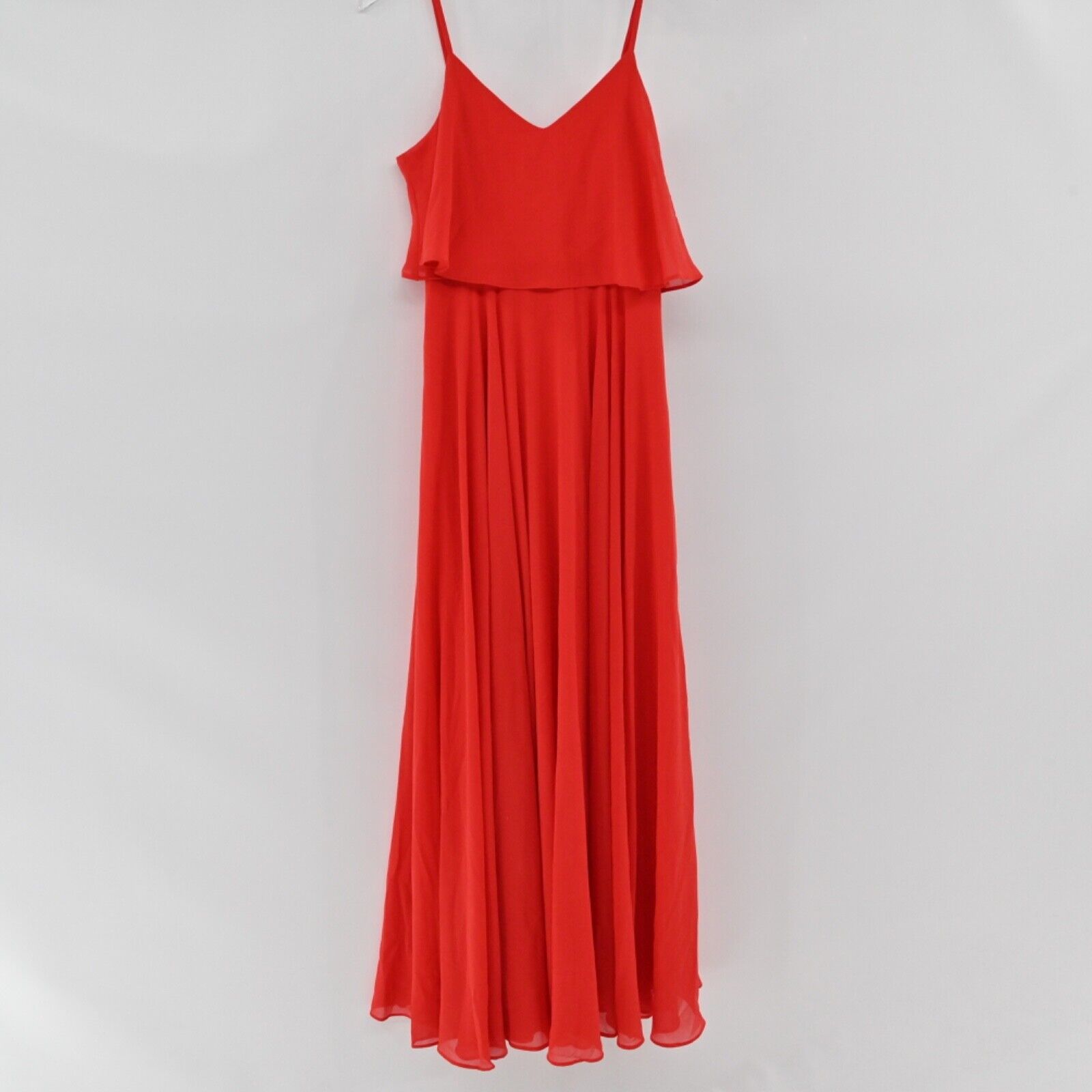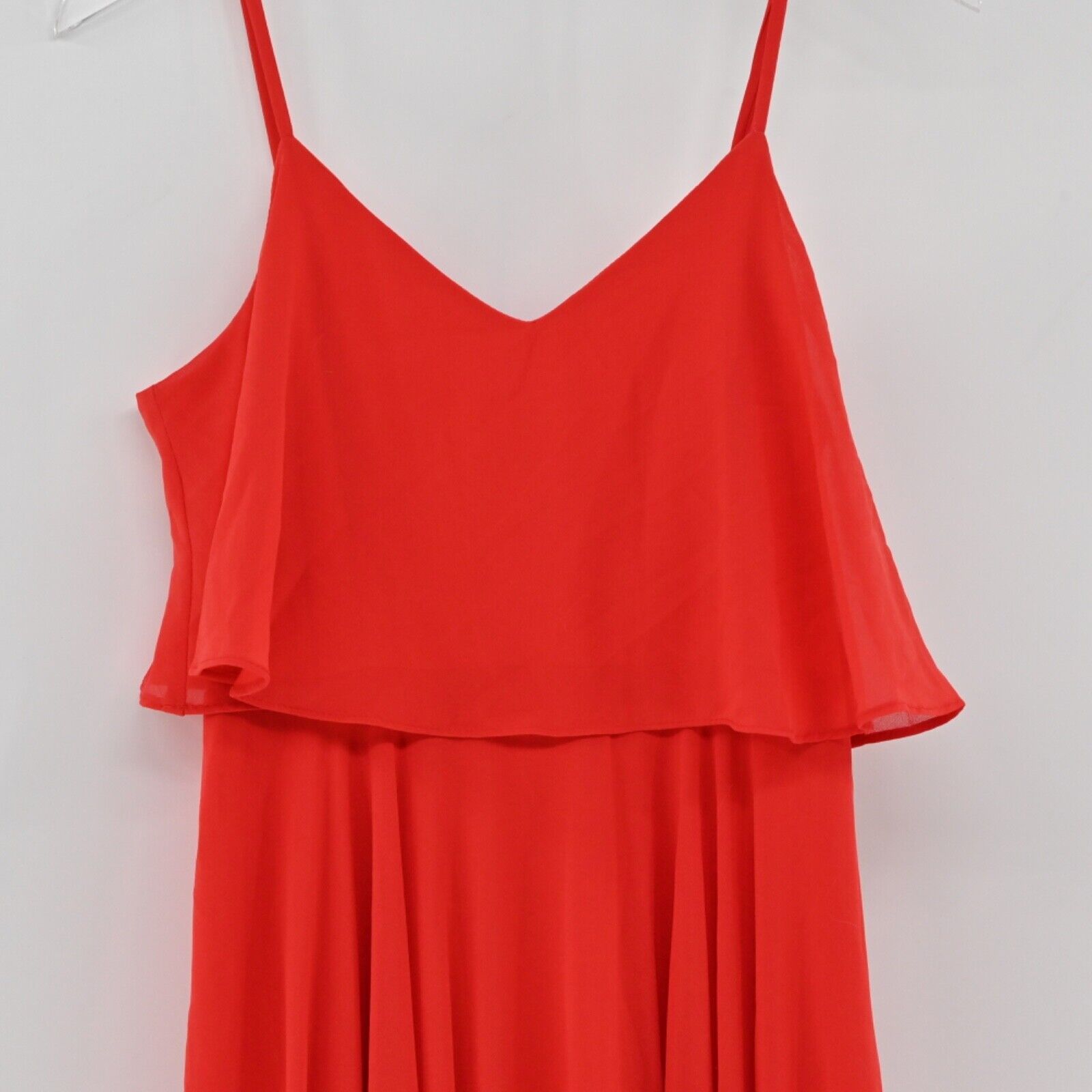 LULUS Dress Women's Size Medium Red Chiffon Ruffle V-neck Adjustable Spaghetti Straps Love Runs High Maxi Concealed Side Zipper Closure Lined Bohemian Boho Beach Vacation