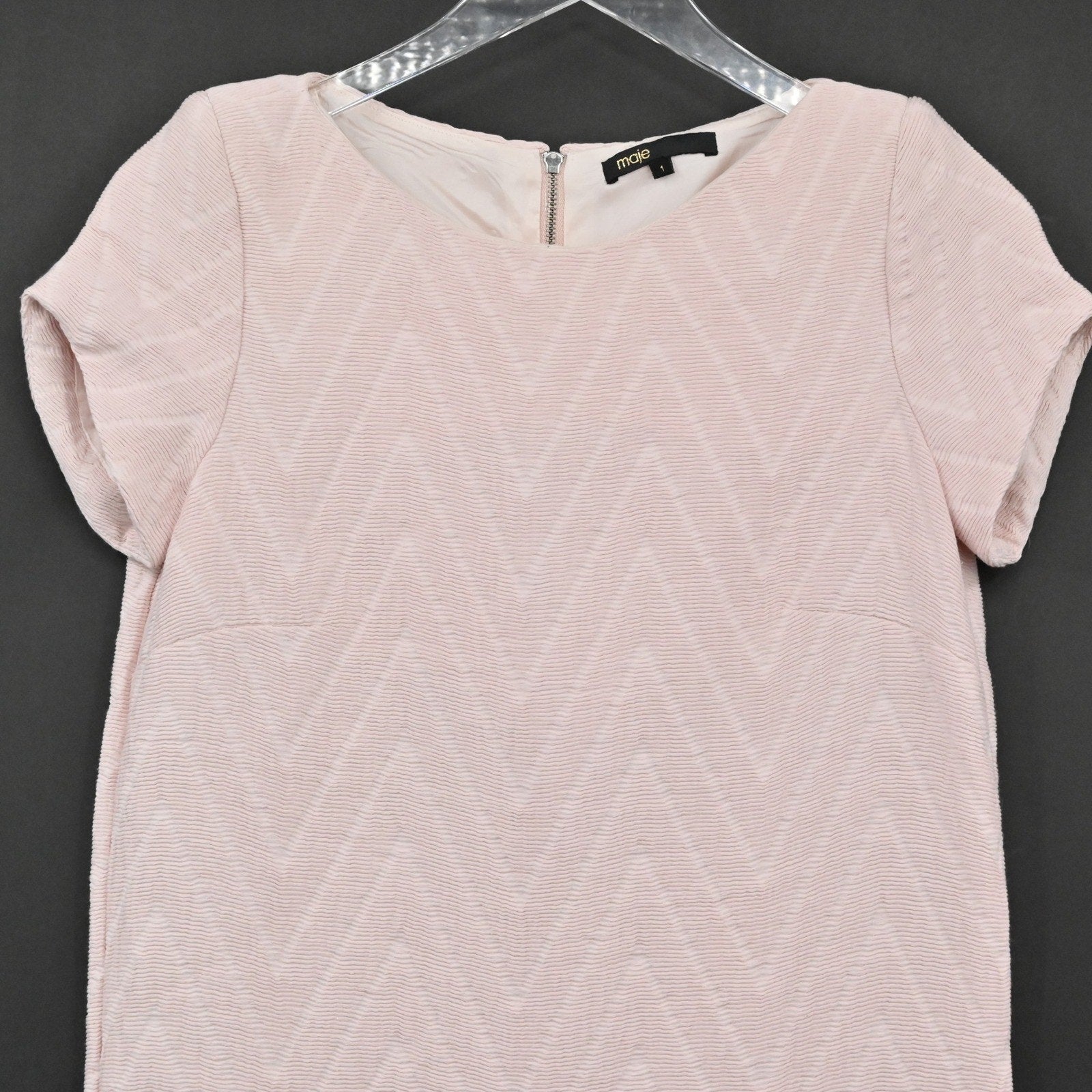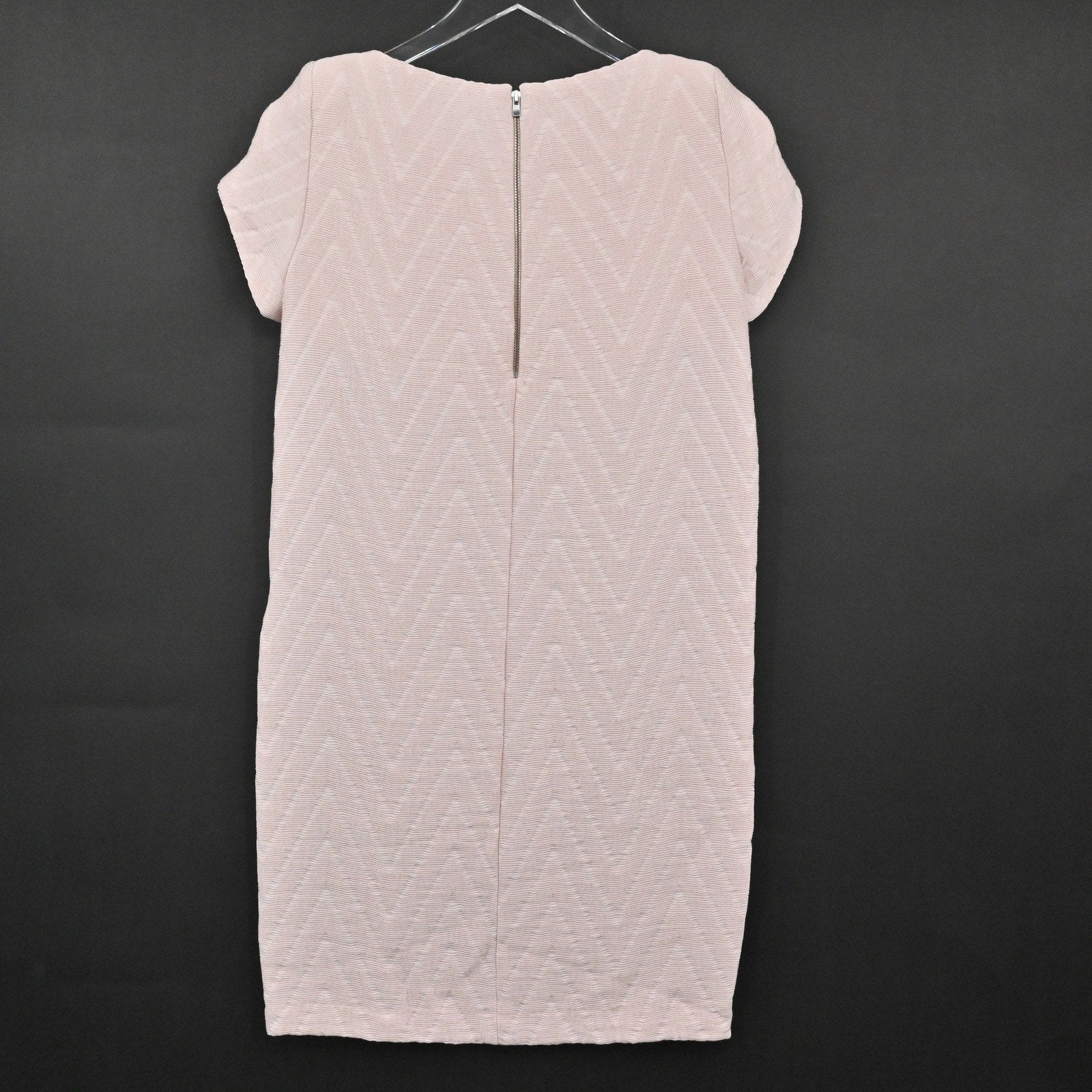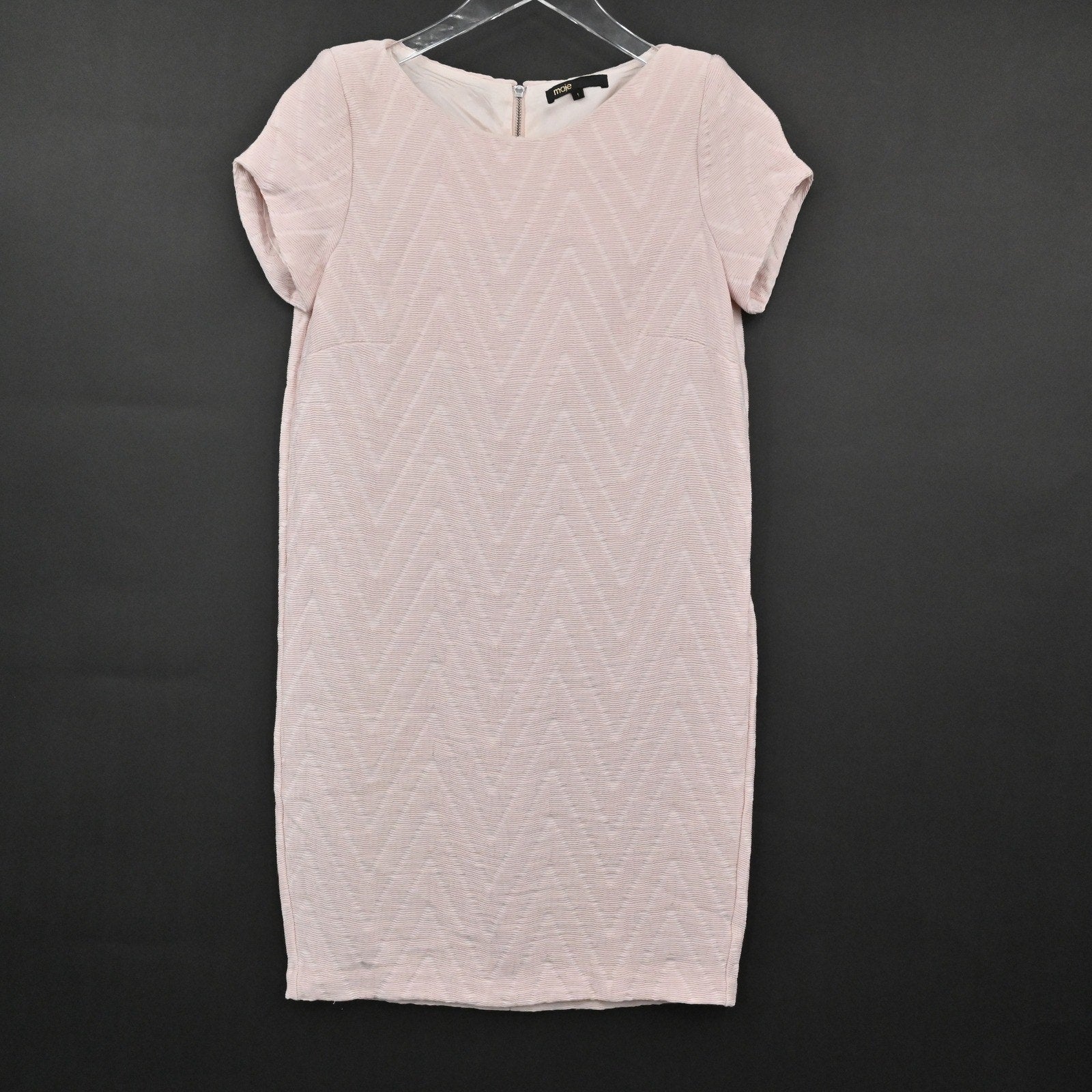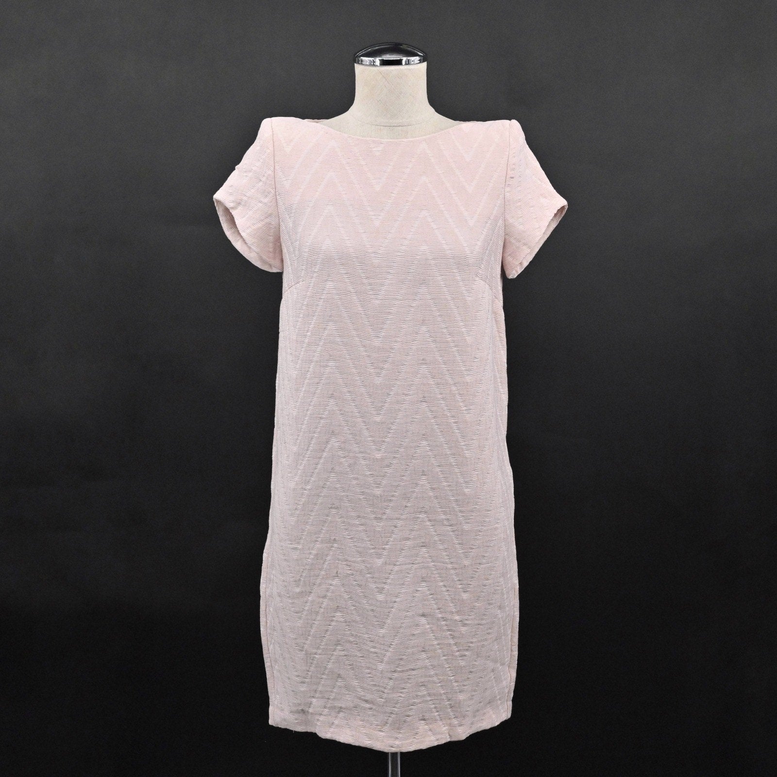 MAJE Chevron Textured Dress Size S Soft Pink Mod Twee Retro Twiggy Short Sleeve