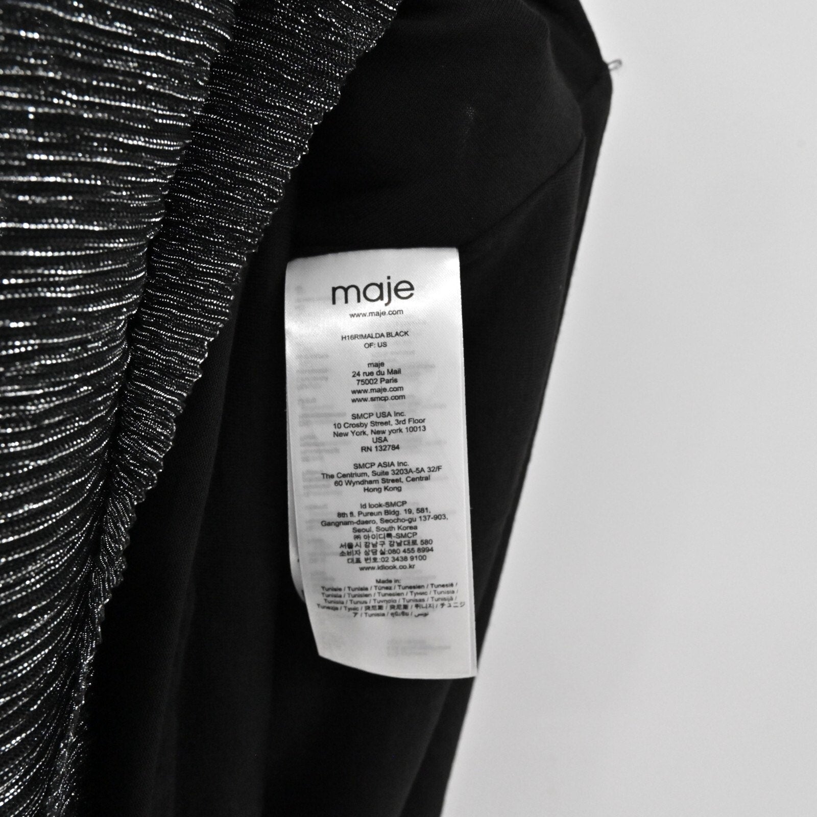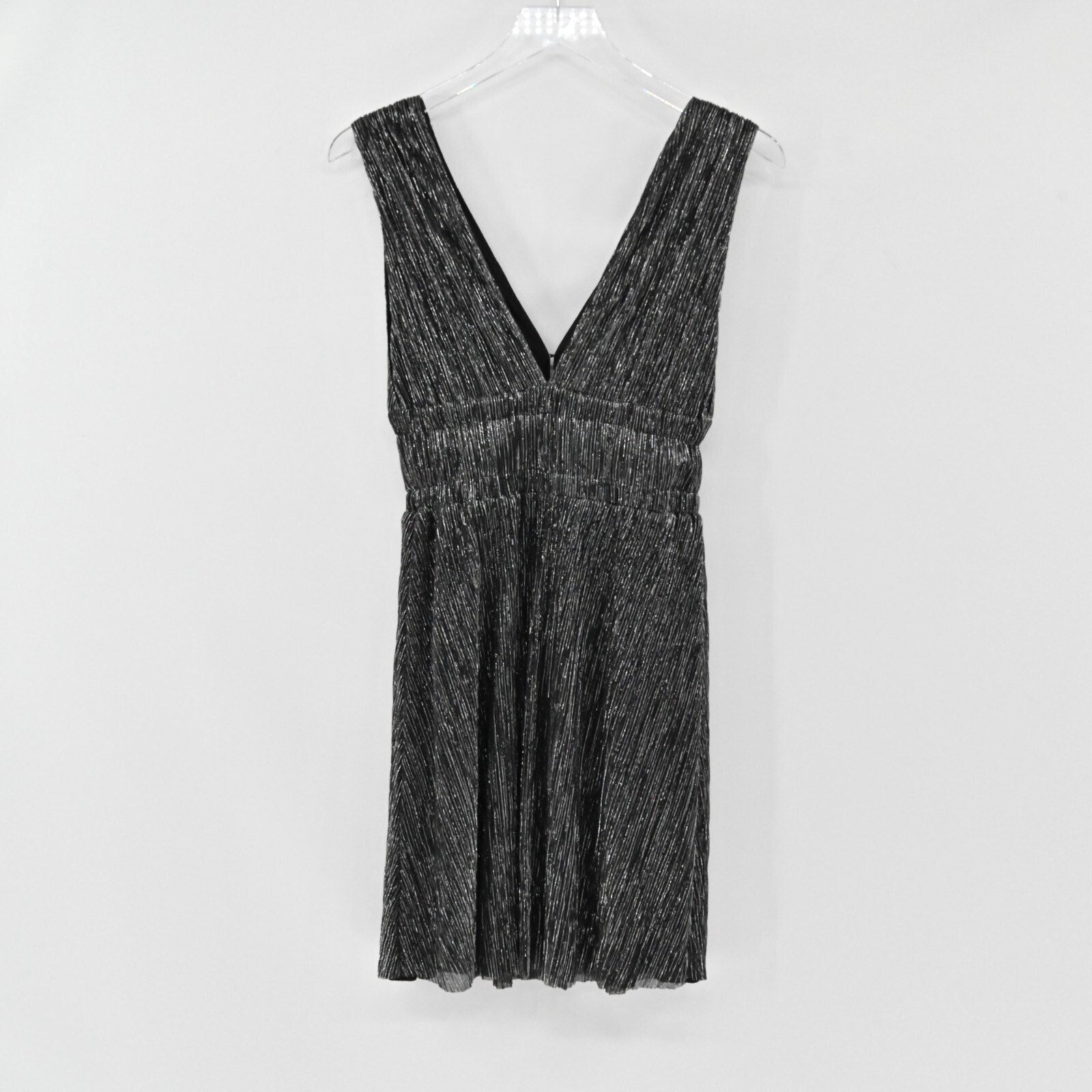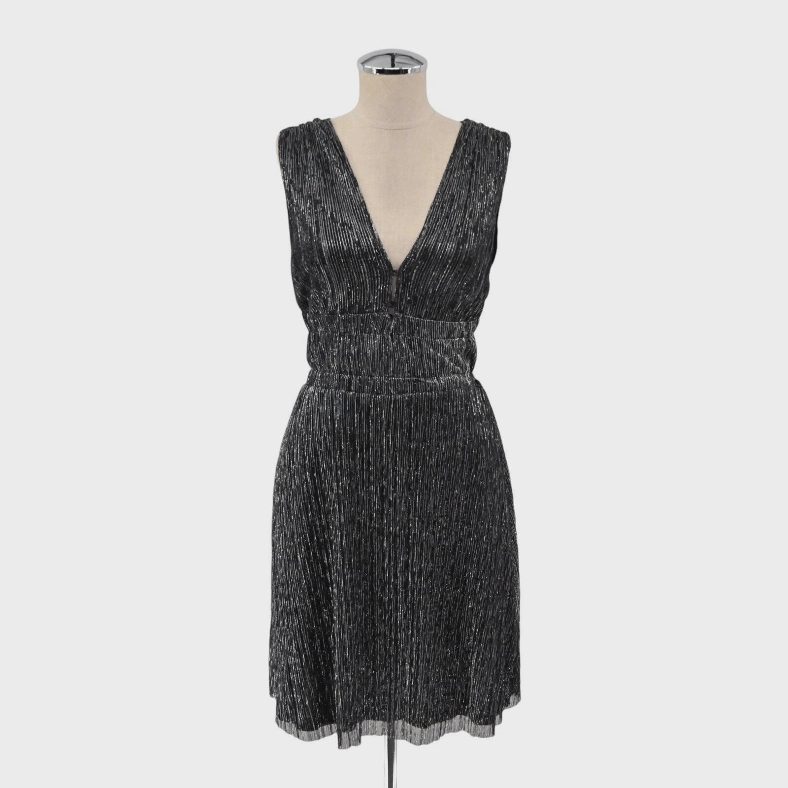 MAJE Womens Shimmer Mini Dress Size S Shiny Metallic Black Silver Sleeveless