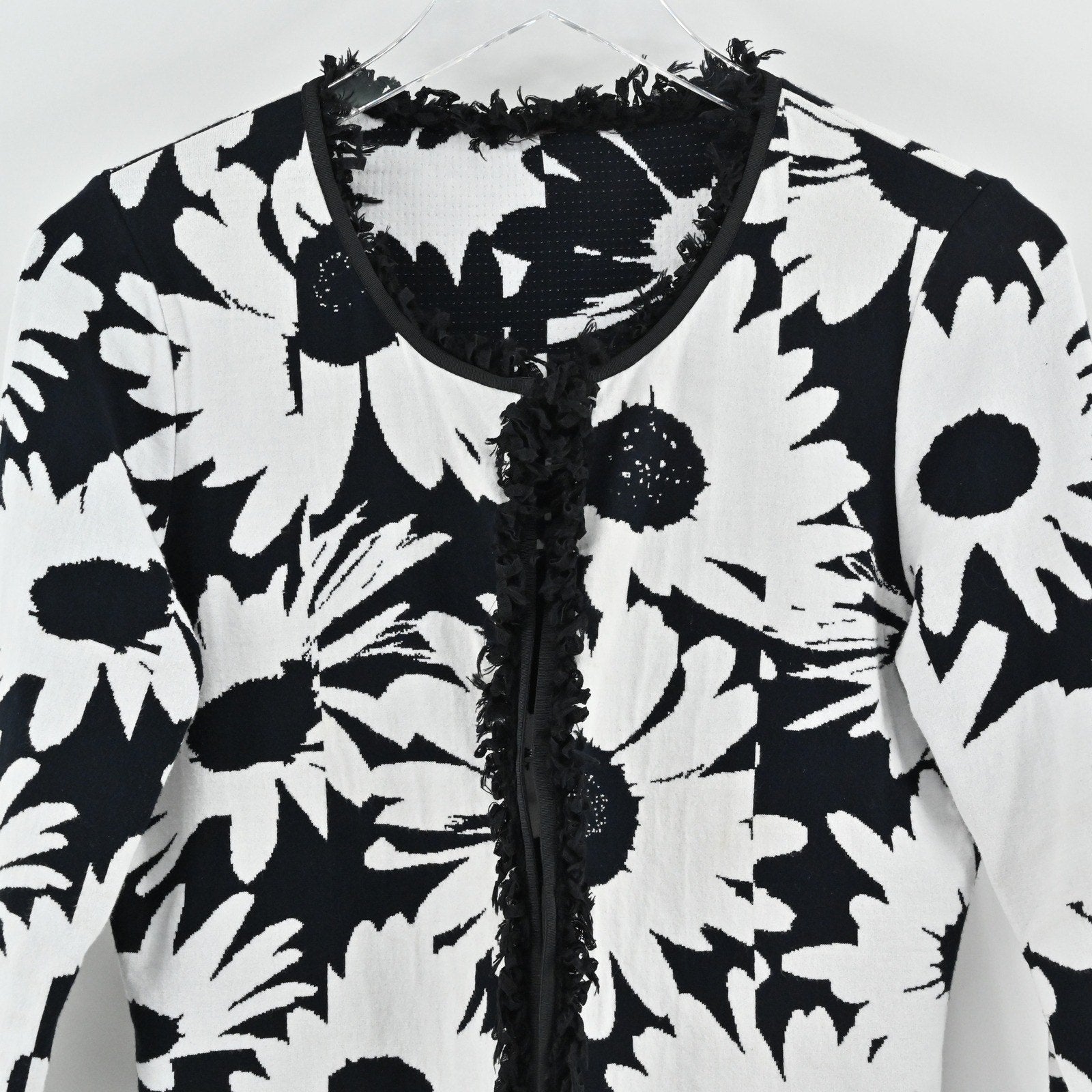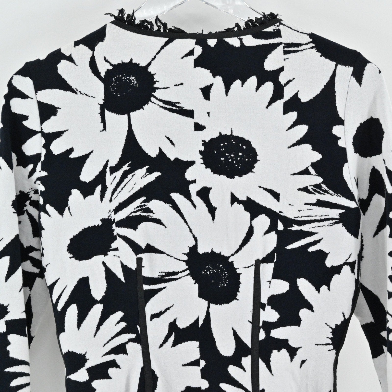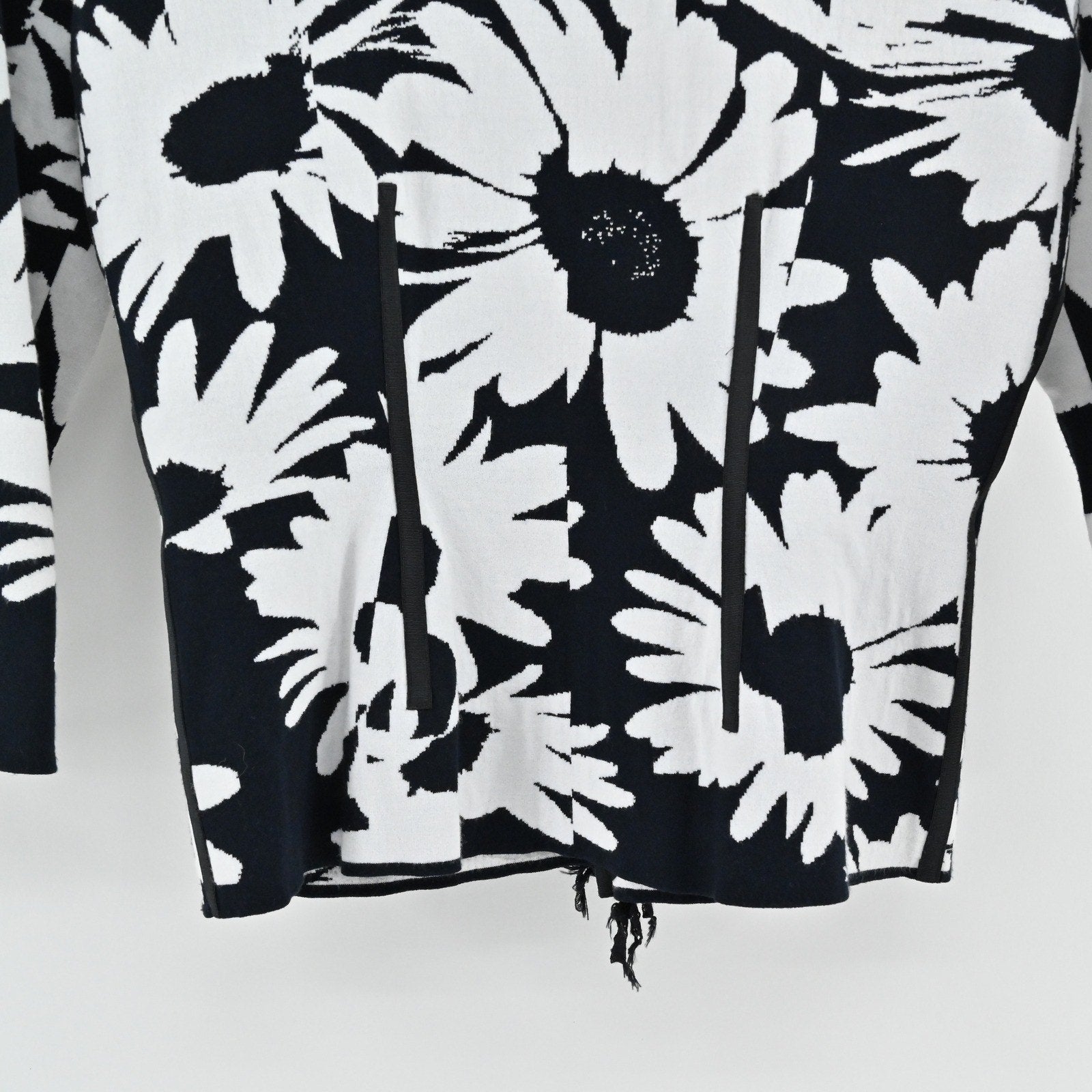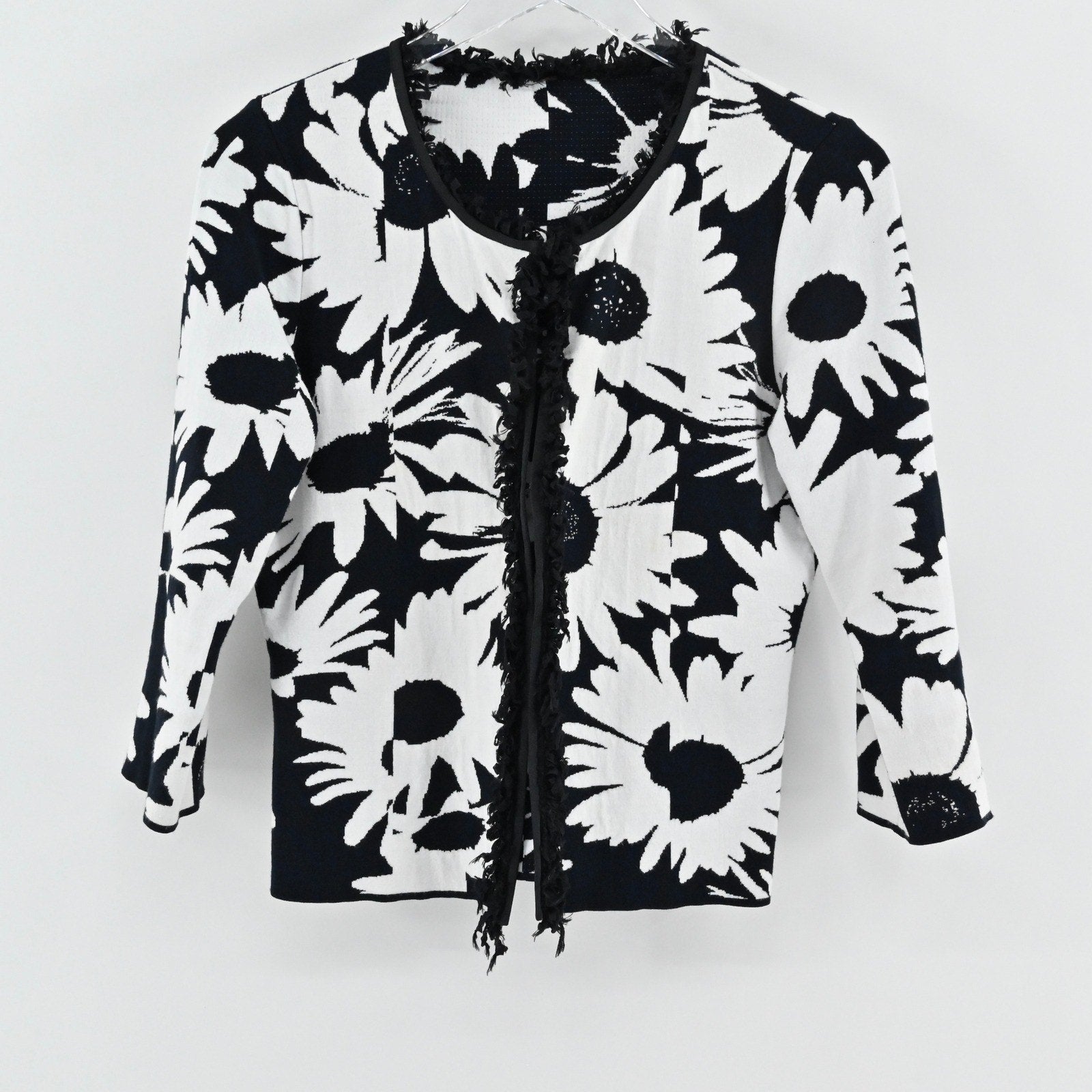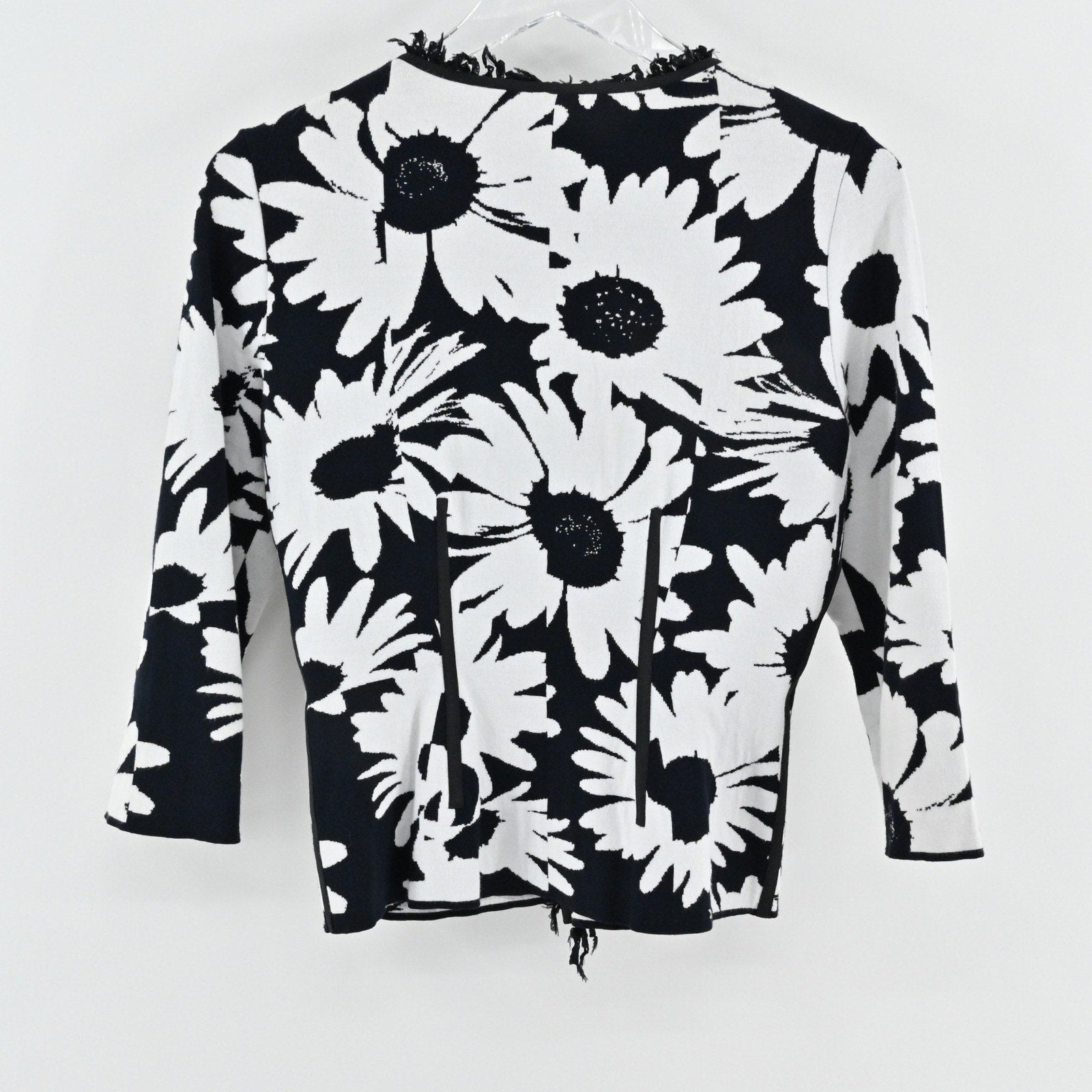 Marc Cain Womens Floral Knit Jacket Size M Black White Daisy Cardigan Luxurious
