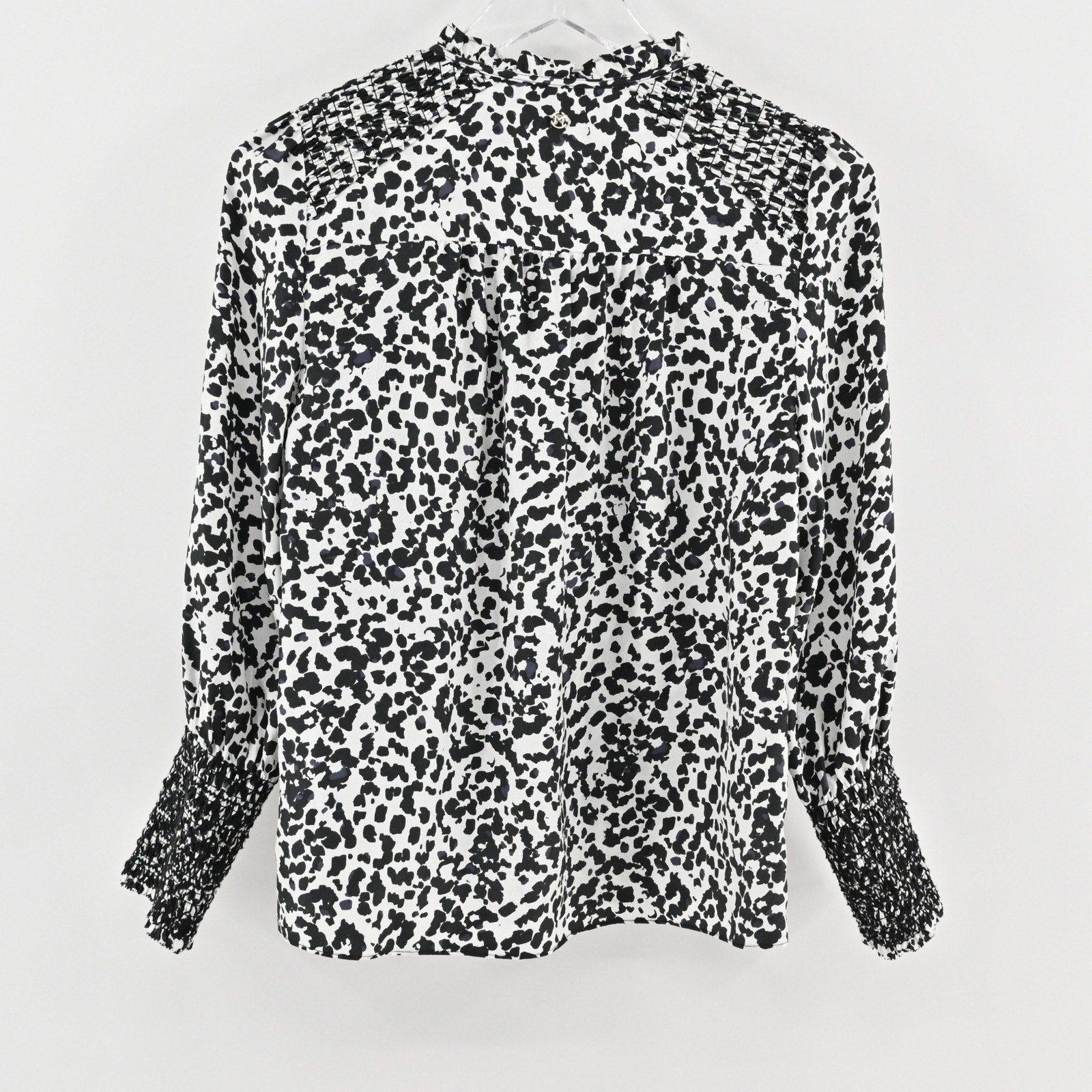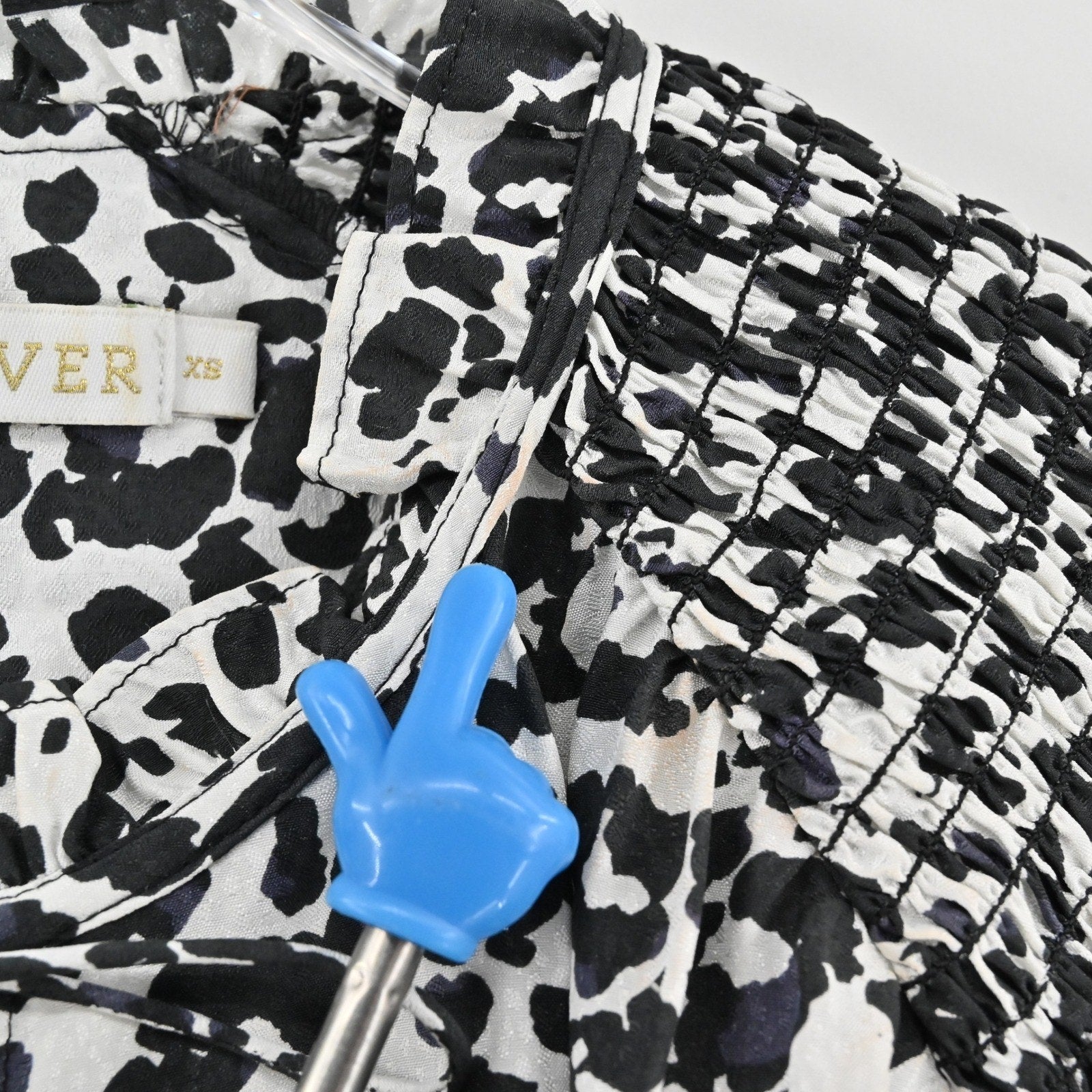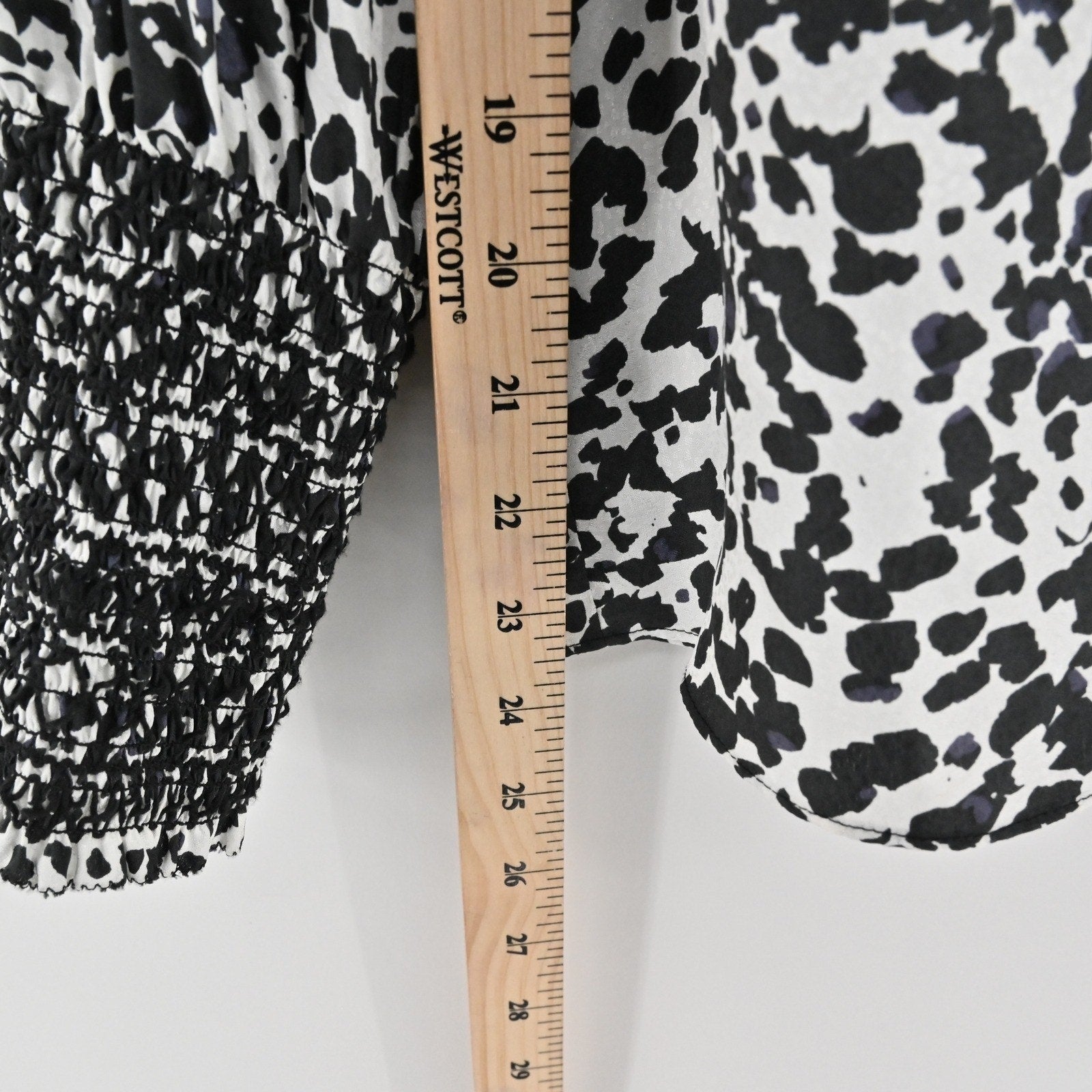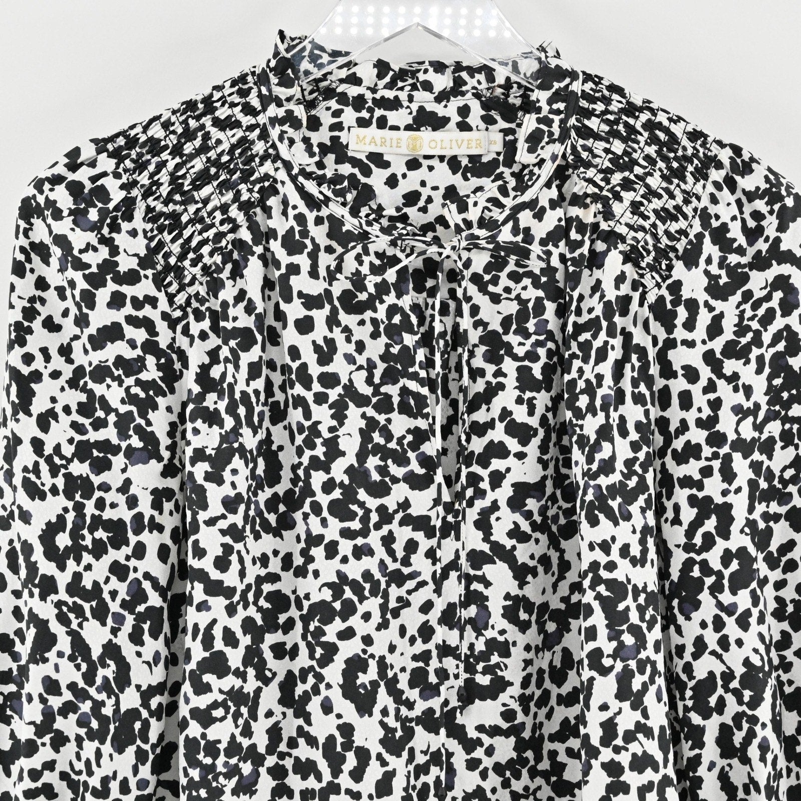Marie Oliver Womens Silk Top Size XS Animal Print Black White Smocked Femnine