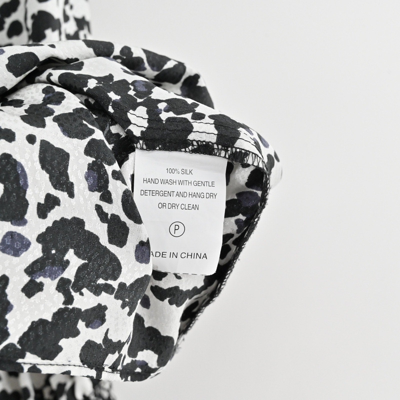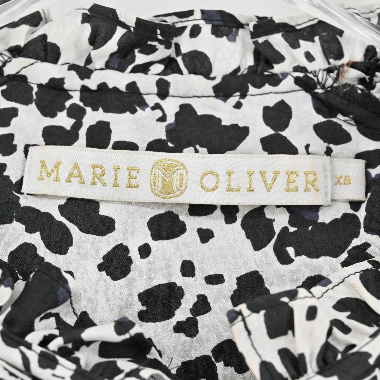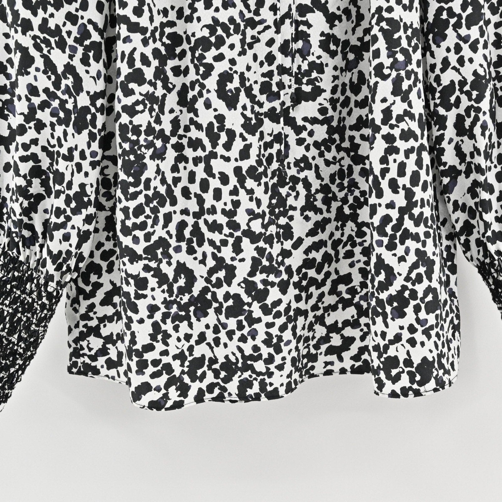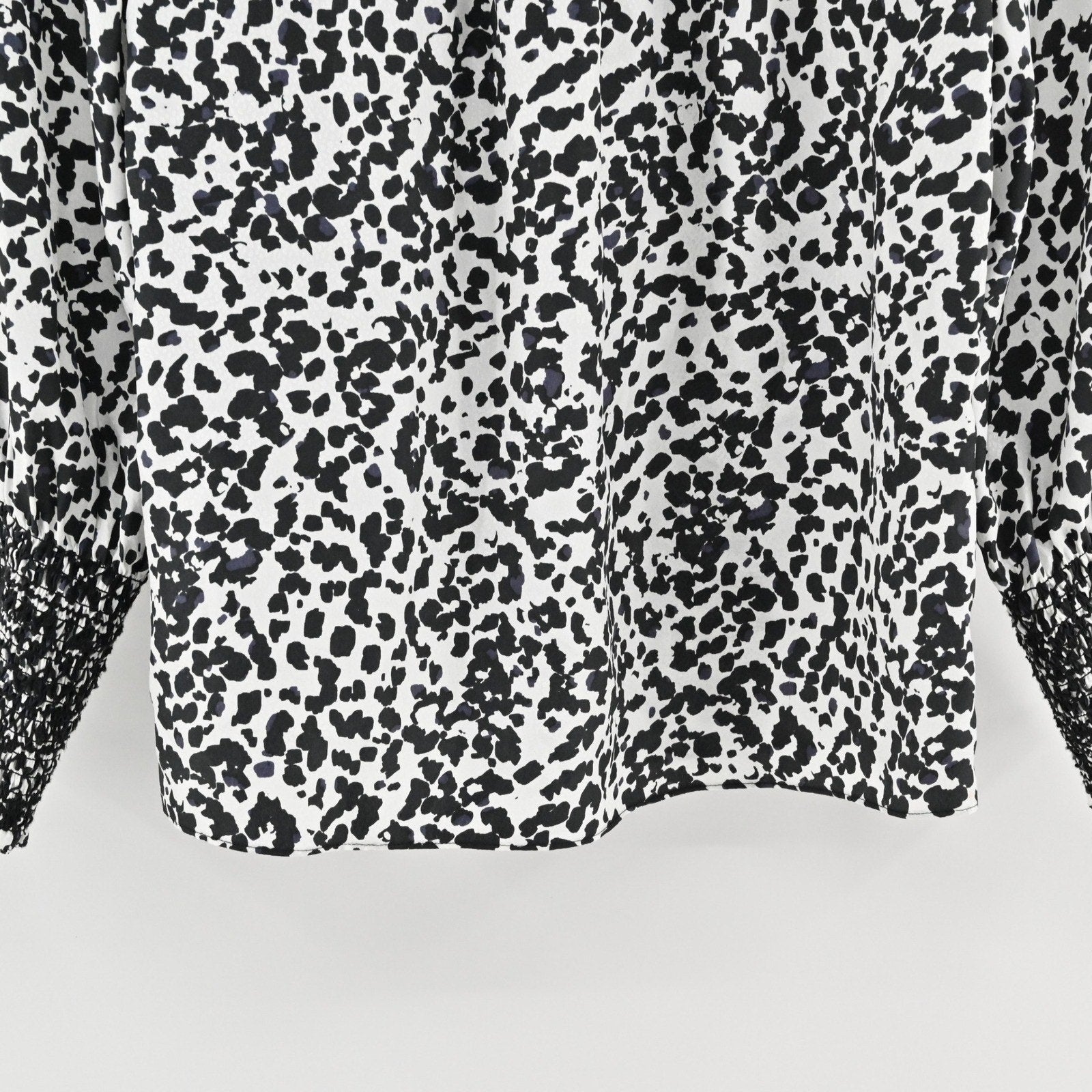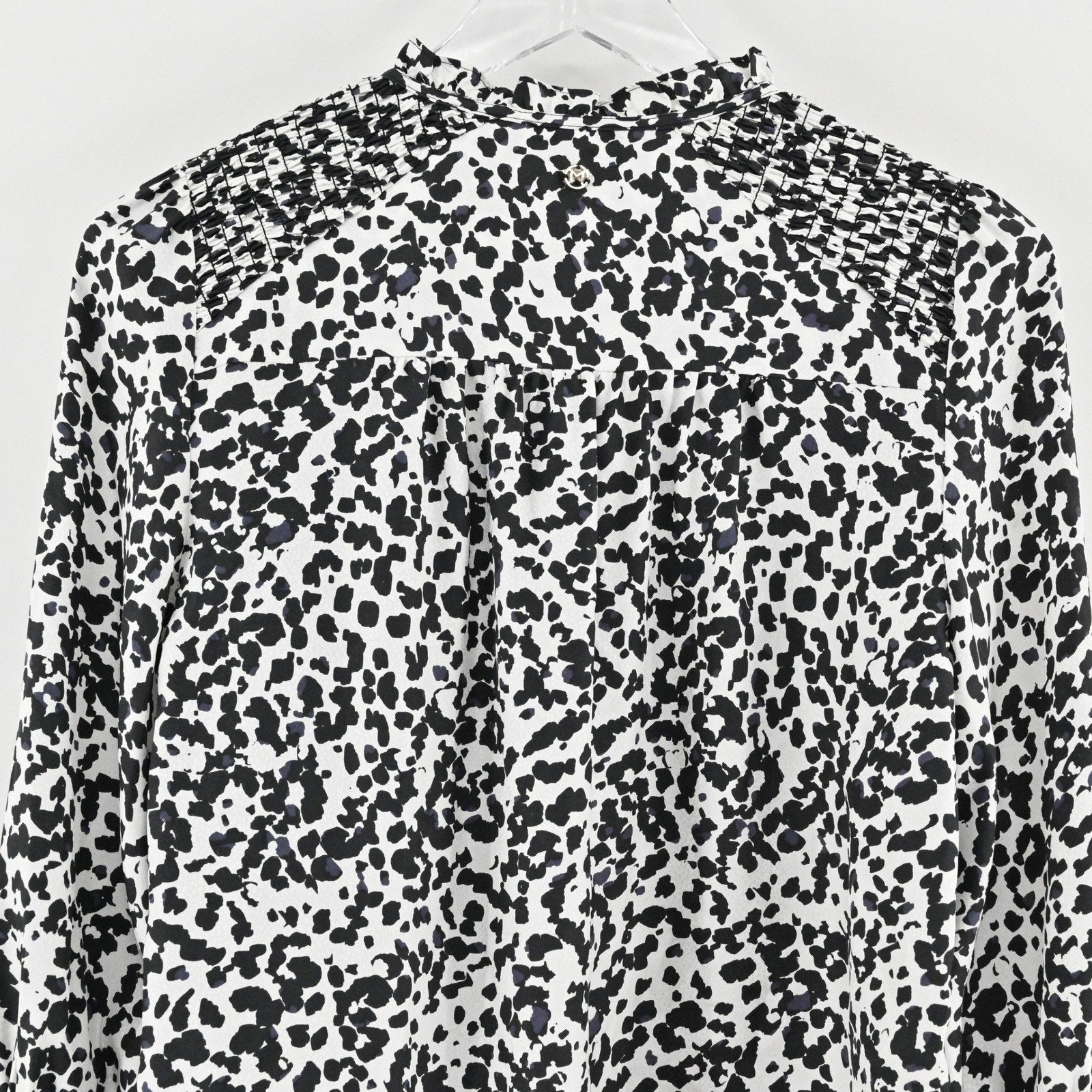 Marie Oliver Womens Silk Top Size XS Animal Print Black White Smocked Femnine