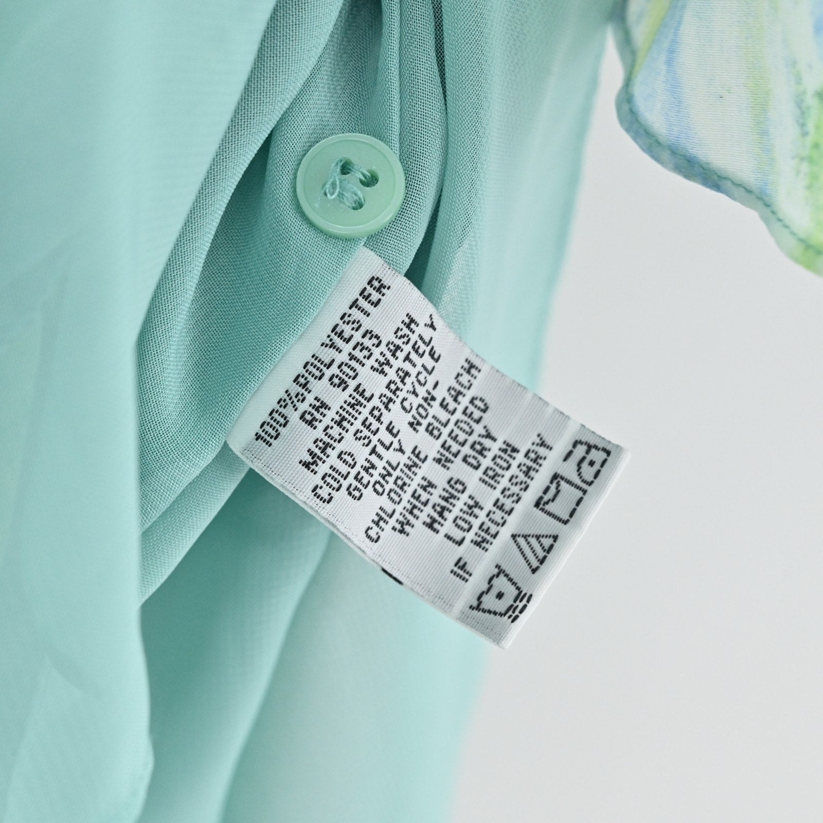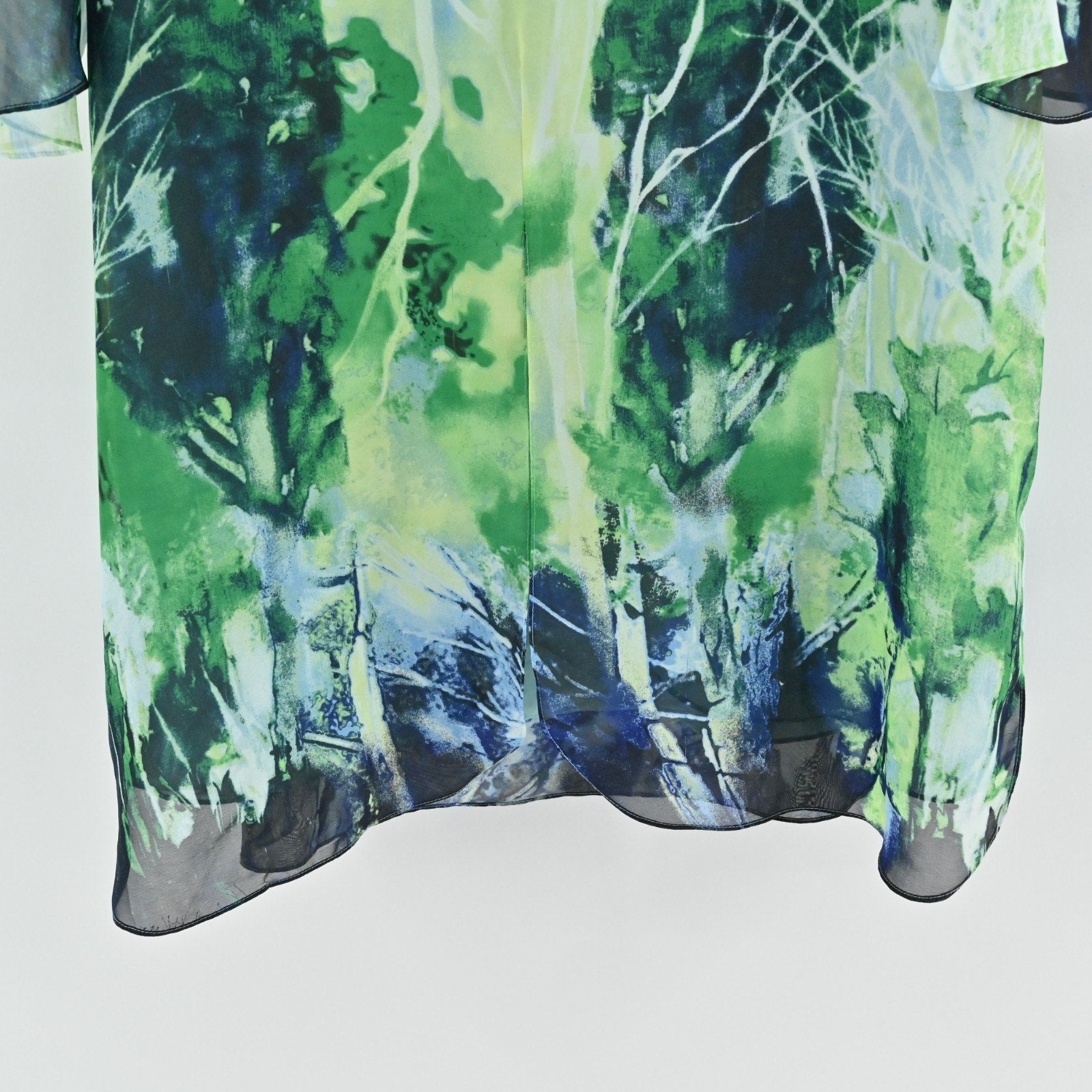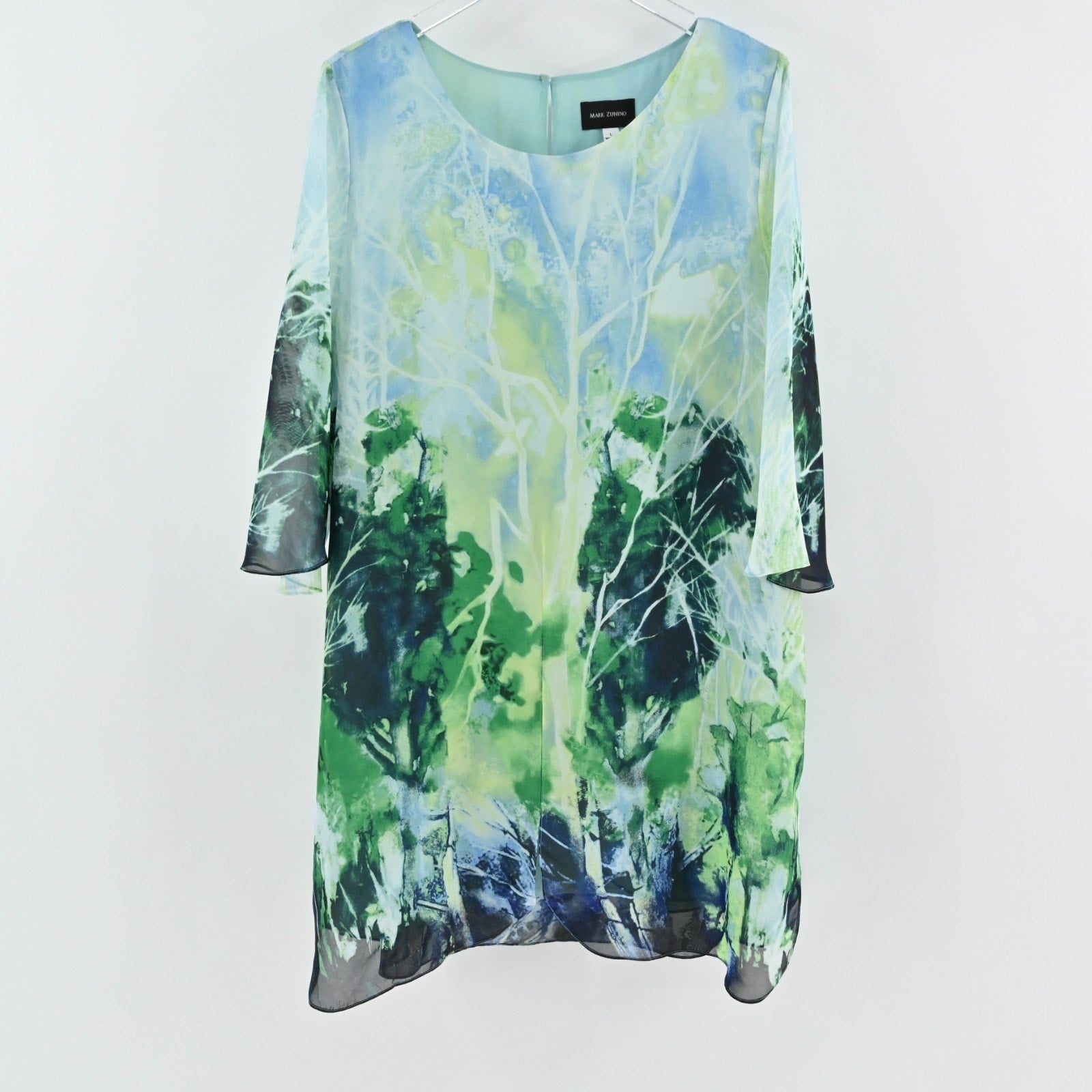 Mark Zunino Womens Chiffon Tunic Top Size L Green Forrest Slit Art Lined Blouse