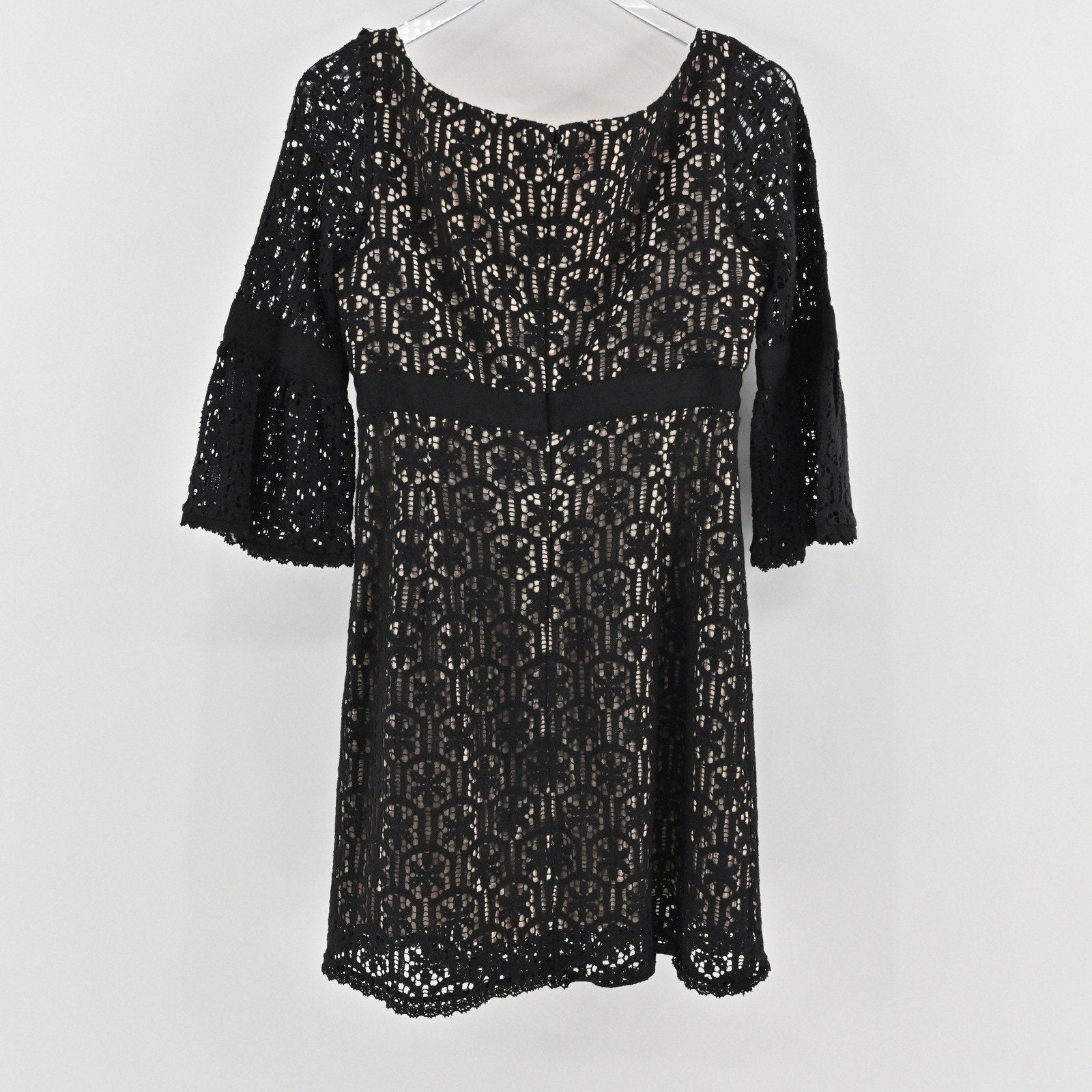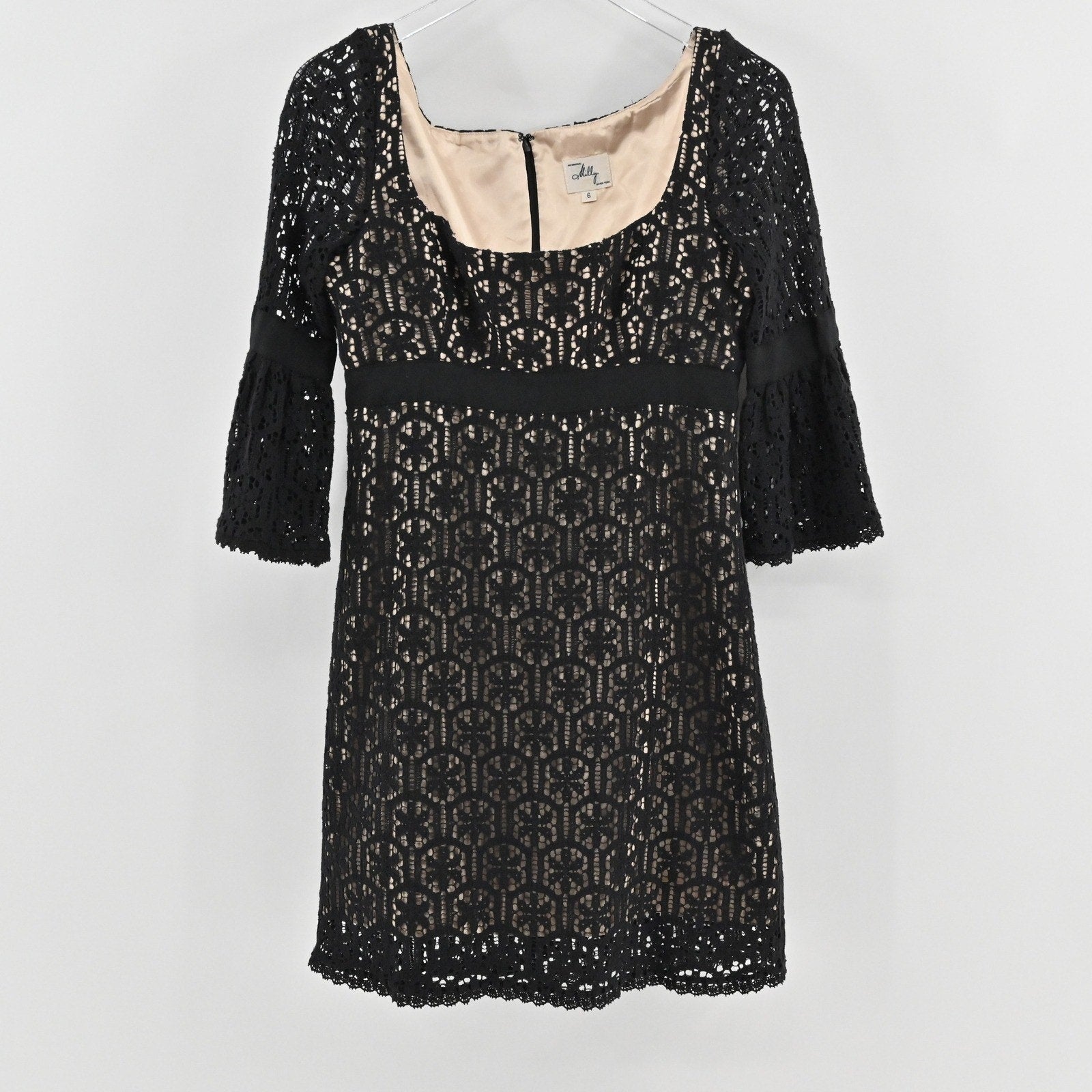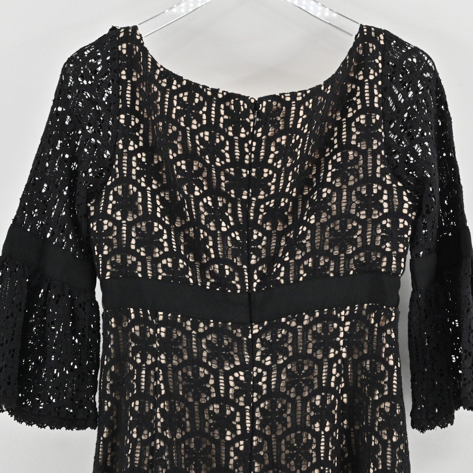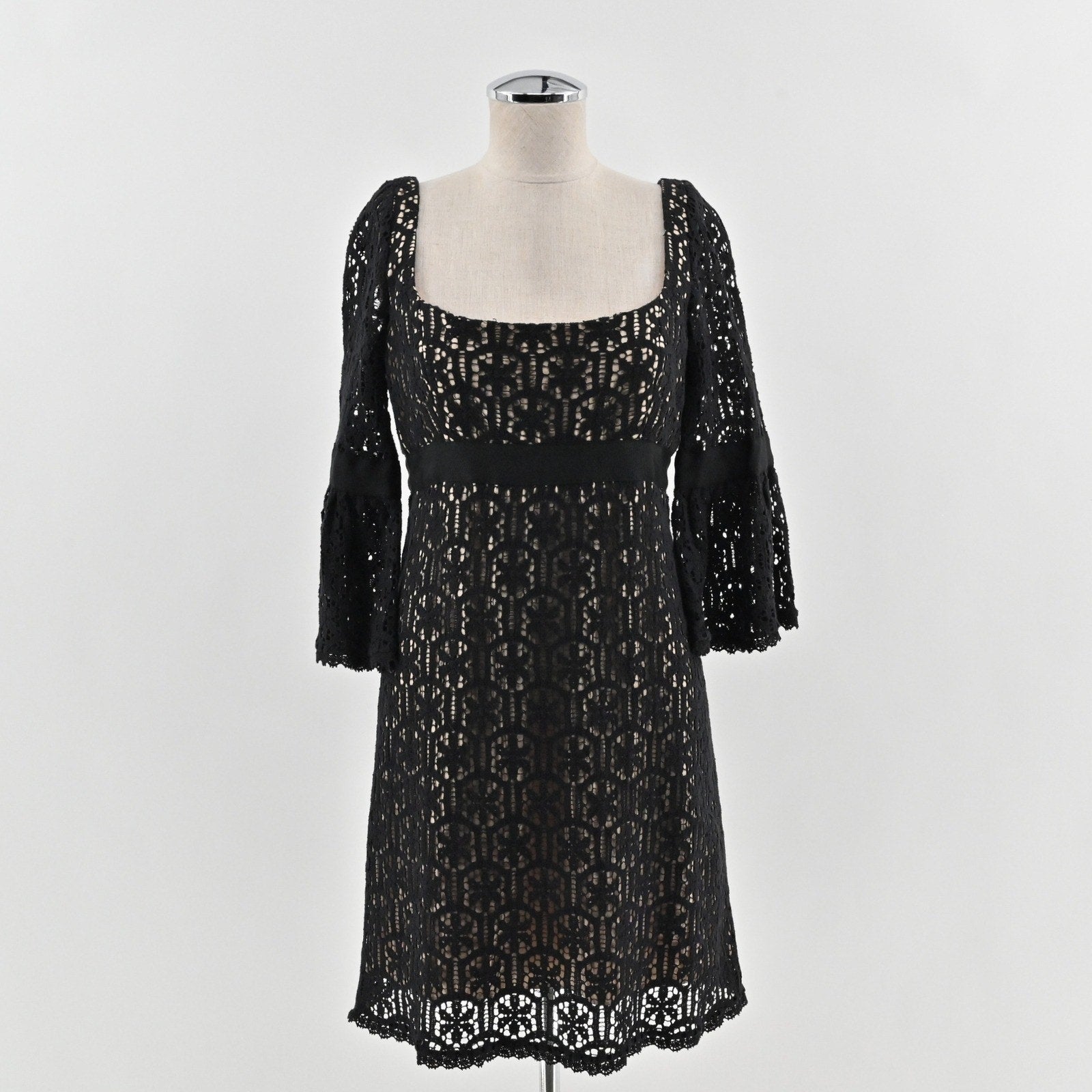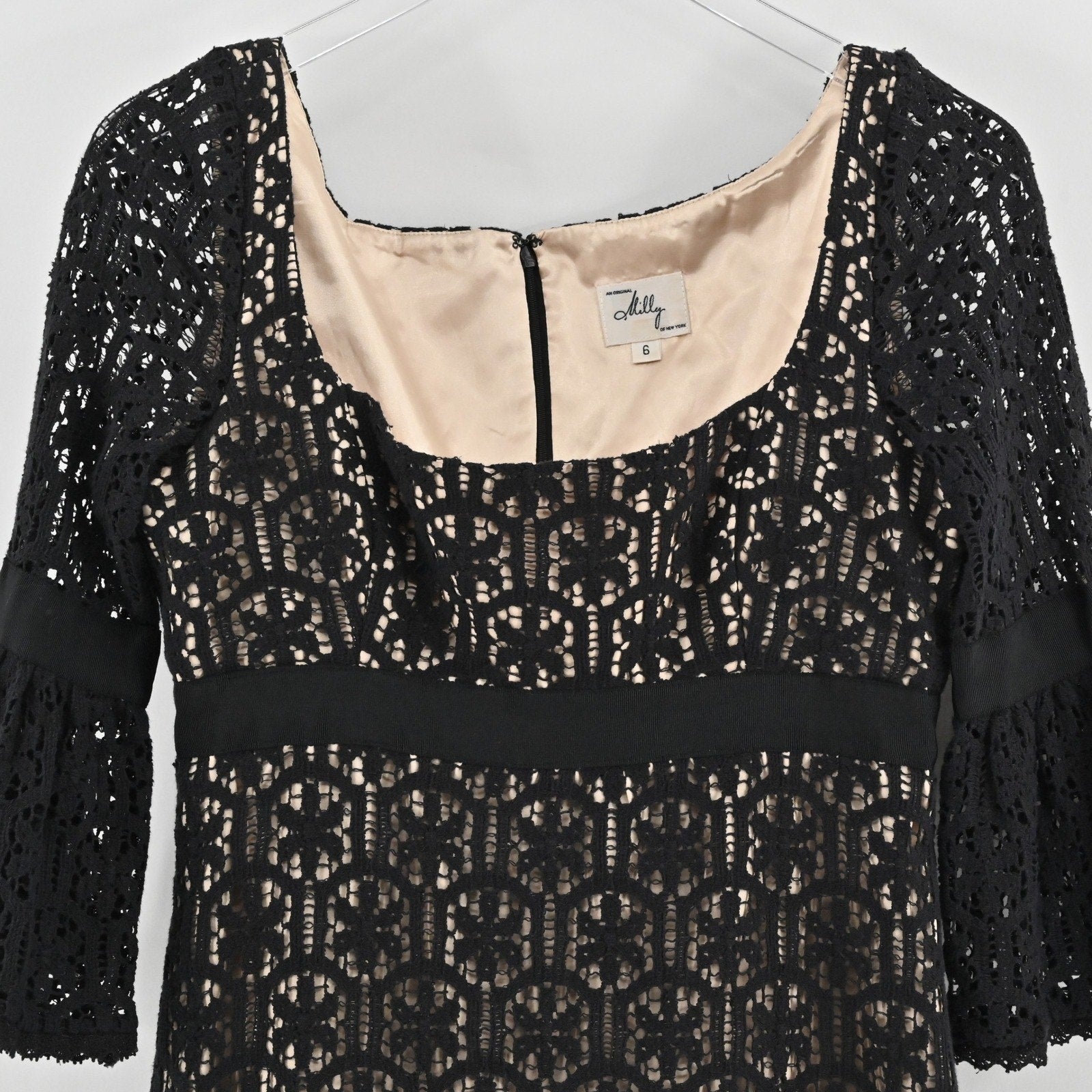 Milly Black Lace Dress Size 6 Milkmaid Bell Sleeve Whimsigoth Dark Romantic Y2k